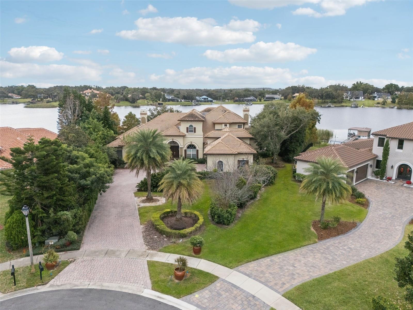 Under contract-accepting backup offers. A rare lakefront estate on one of Central Florida?s most celebrated lakes, John?s Lake. Positioned on nearly one acre in a private, gated enclave, this custom 5-bedroom, 6-bath residence offers sweeping open-water views, dramatic sunsets, and direct access to boating, jet skiing, and year-round fishing from its private dock. With approximately 250 feet of pristine shoreline, this home delivers lakefront living at its finest. Inside, the residence features soaring 11-foot ceilings, elegant architectural details, and refined formal living and dining spaces. The beautifully updated gourmet kitchen includes high-end stainless-steel appliances, granite countertops, custom cabinetry, dual center islands, and a spacious walk-in pantry. An entertainment lounge with a wet bar, dishwasher, ice maker, under-counter refrigerator, and dual beer taps creates an exceptional setting for hosting. Notably, in 2024, the homeowner replaced two first-floor air-conditioning units, ensuring modern comfort and efficiency. The luxurious first-floor owner?s suite offers direct lanai access, a cozy fireplace, two custom California Closets, and a spa-inspired bath. Additional first-floor amenities include a private guest suite, an executive office, a fitness room, and a well-appointed laundry room. Upstairs, three generously sized bedrooms each feature private baths and walk-in closets, with two enjoying beautiful lake views. Outdoor living is truly exceptional, with a fully screened custom pool featuring water elements, an expansive brick-paver lanai, lush landscaping, and a private dock equipped with an electric boat lift, dual jet ski lift, floating dock, screened sitting area, and full power and water connections. This property is not only a rare lakefront masterpiece but also an outstanding value for those seeking luxurious living. With the recent 2024 upgrade of the first-floor air-conditioning units, it offers an exceptional blend of elegance, comfort, and an unbeatable lakefront lifestyle?an ideal opportunity for discerning buyers looking for a home that delivers both luxury and remarkable value.