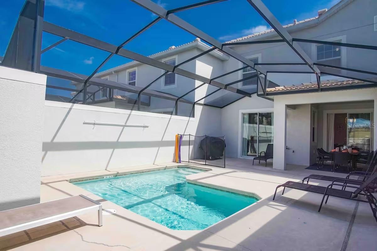 Welcome to your dream rental! This beautifully maintained 4-bedroom, 3-bath FULLY FURNISHED townhome will be available in April and is truly ready to be called home. Thoughtfully designed for comfort and flexibility, the property features two primary suites—one conveniently located downstairs and another upstairs—making it ideal for multigenerational living, guests, or added privacy. Enjoy ample parking, a bright and airy interior filled with natural light, and a spacious open layout that flows effortlessly from room to room. Step outside to your private, screened-in pool, the perfect spot to unwind after a long day or enjoy relaxing weekends in the Florida sunshine. Set within a highly desirable resort-style community, you’ll have access to exceptional amenities including a sparkling lazy river, resort pool, playground, tennis courts, fitness center, clubhouse, walking trails, and more—all designed to elevate your everyday living experience. Located just minutes from Orlando’s finest attractions—Disney World, Magic Kingdom, Universal Studios, shopping, dining, and major highways—this home offers the perfect blend of comfort, convenience, and lifestyle. Move right in and enjoy the best of Florida living.