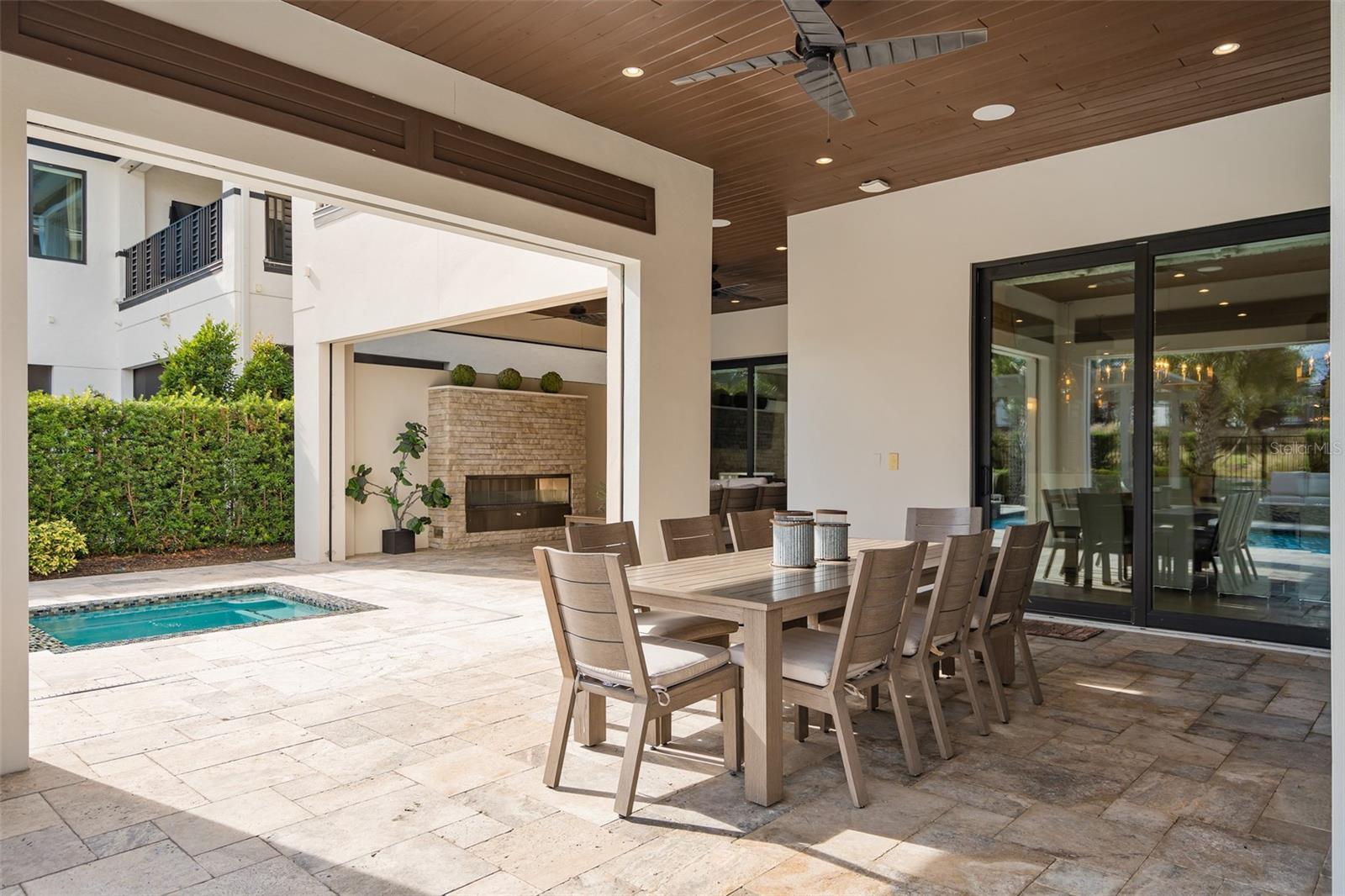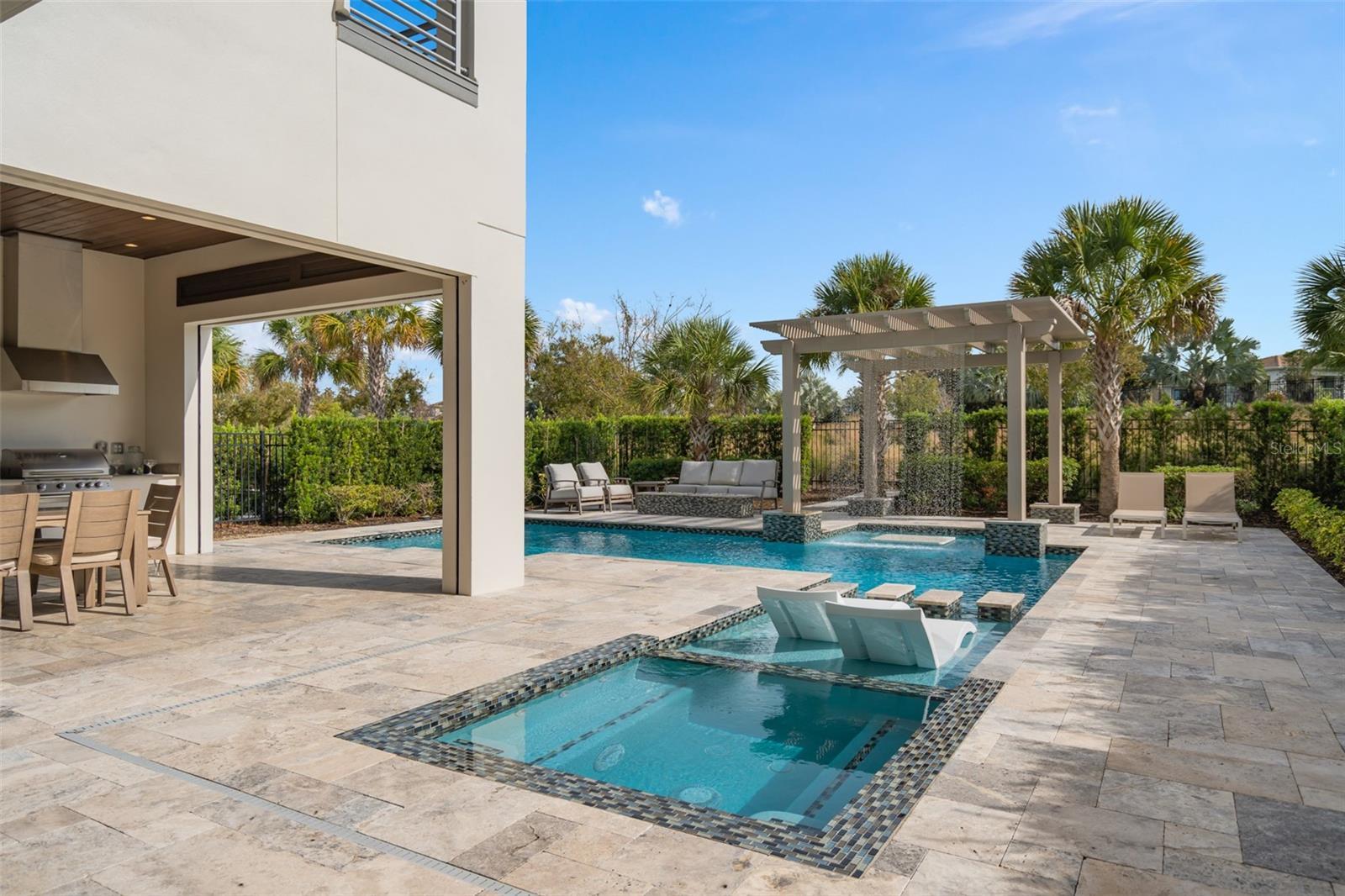 Located in the privately gated Bear’s Den neighborhood of Reunion Resort, this 8-bedroom, 8-full-bathroom, 2-half-bath home offers 5,625 heated sq ft and was built in 2018. The property has 12-foot ceilings on the first floor, a 2-car garage, and is offered fully furnished and turnkey. The home has never been rented and has only been used as a second residence. The kitchen features a double island layout, modern high-gloss cabinetry with lighted glass-front uppers, white quartz countertops, a JennAir gas cooktop with Zephyr range hood, two 36” JennAir built-in bottom-freezer refrigerators, a JennAir wall oven and microwave, and three JennAir dishwashers.The open living area connects to the outdoor space through corner sliding doors that lead to a covered patio with fireplace, a covered dining area with a built-in gas grill, vent hood, and sink, and motorized screens enclosing the entire space. The heated pool and spa include a sun shelf, an in-pool table with seating, and a pergola with a waterfall feature. An additional seating area with gas fire pit sits at the back of the pool, and a pool bath is accessible from the patio. The backyard has a private gate that leads directly into Golden Bear Park, available only to Bear’s Den residents. The park includes a putting green, great lawn, volleyball area, playground, and dog park. Every bedroom has its own bathroom, including two bedrooms on the first floor. The primary suite features dual sinks, a freestanding tub, a walk-in shower, and a walk-in closet. A second first-floor bedroom also includes an en-suite. The second-floor layout features a loft with a wet bar, dishwasher, pool table, seating area, and a covered balcony overlooking the pool and Golden Bear Park. Two additional primary suites each include dual sinks, a freestanding tub, a walk-in shower, and private balconies at the front and rear of the home. Bedrooms five and six include en-suite bathrooms with a private game room between them, and bedrooms seven and eight are also en-suites. Additional features include a Legrand built-in audio system with speakers throughout the home and outdoor areas, and a first-floor powder room. Two laundry areas—one on each floor—provide added convenience. Spanning 2,300 acres just 7 miles south of Walt Disney World, Reunion Resort is the only destination in the world featuring 3 signature golf courses designed by Jack Nicklaus, Arnold Palmer and Tom Watson. Reunion is also home to the Leadbetter Golf Academy. Onsite dining options include Eleven, 7593 Chophouse, Traditions, Grande Lobby Sushi Bar, the Clubhouse, the Cove, and Drifters at the waterpark. The water park features a lazy river, slides, outdoor games, and an aquatic playground. The gift shop in the Grande offers sundries and Starbucks coffee. Complimentary shuttles to the Disney transportation and ticket center leave from the Grande daily. Additional amenities include Camp Reunion, the tennis and pickle ball center, bocce ball, mini golf, foot golf, fitness center, playgrounds, dog park, various community pools including a roof top pool on the 11th floor of the Grande, and more. Zoning for short term rentals allows homeowners to rent their property by the night providing a great opportunity for investors. Reunion also works great as a primary residence or a private vacation retreat. The resort offers three separate 24 hour guard gated entries and one owner/resident only entry.
