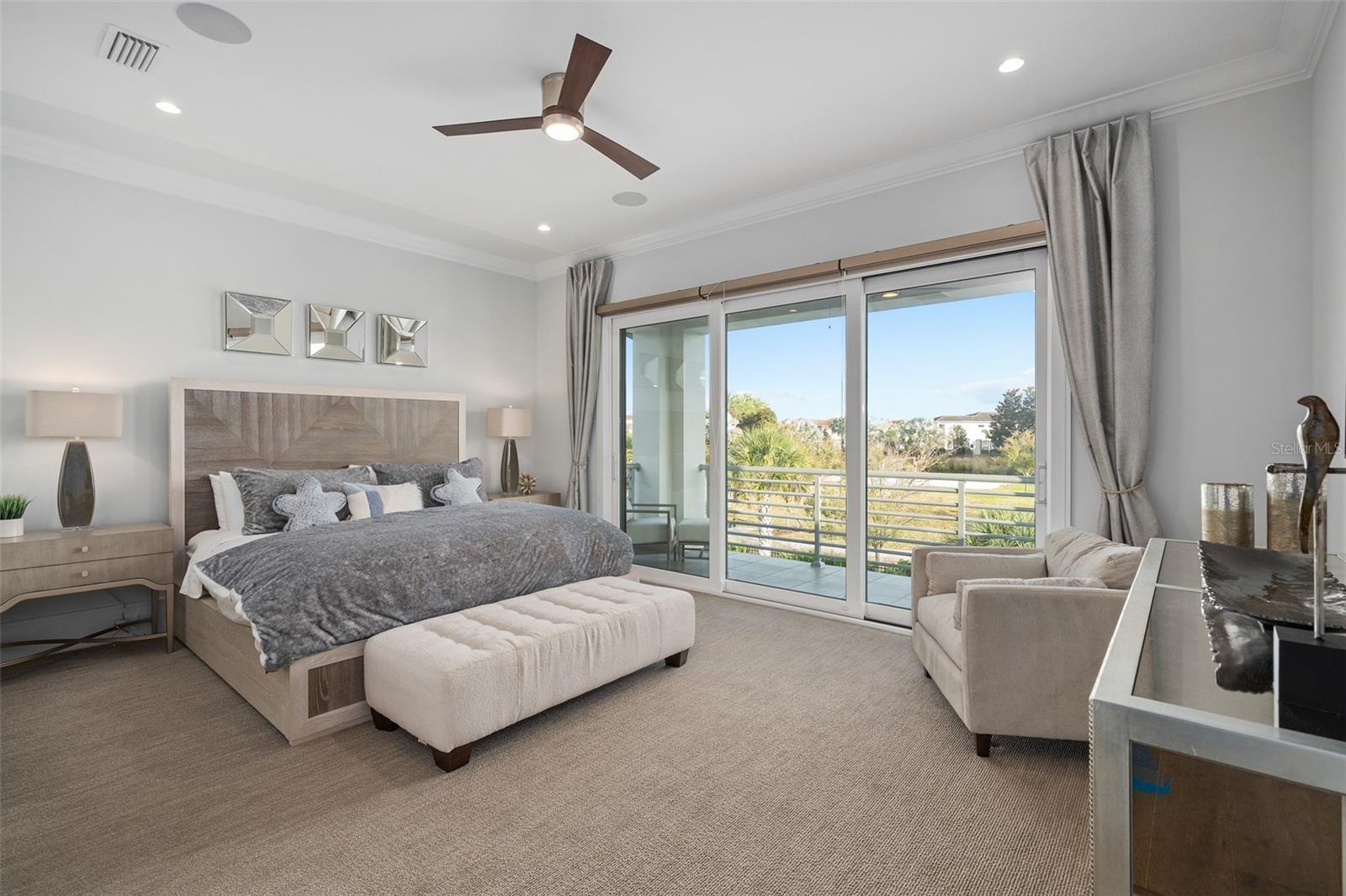 - Ceiling Fans(s), Crown Molding, Eat-in Kitchen, Primary Bedroom Main Floor, Walk-In Closet(s), Wet Bar, Window Treatments