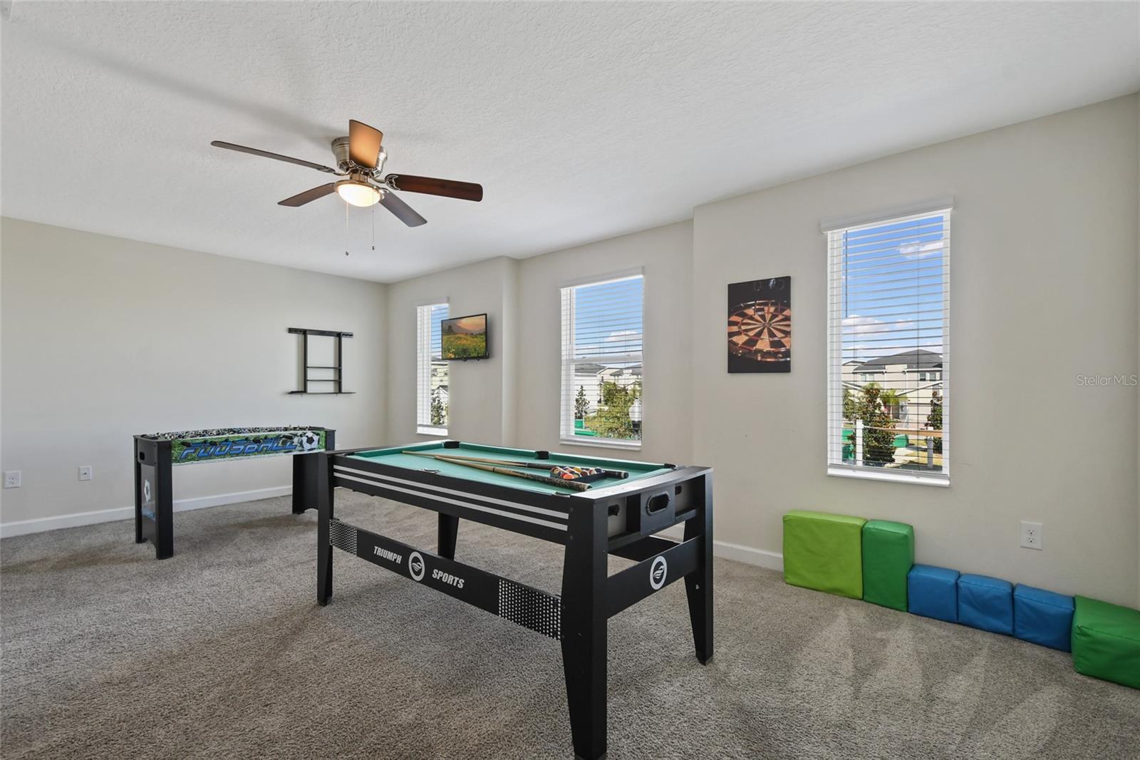 Discover the perfect blend of luxury, comfort, and privacy in this fully furnished 8-bedroom, 5-bathroom pool home, nestled in the highly sought-after ChampionsGate Resort. With no rear neighbors, this stunning property is designed for both relaxation and entertainment, featuring high-end furnishings, multiple themed bedrooms, and an open-concept living space. The gourmet kitchen seamlessly flows into the spacious dining and gathering areas, all highlighted by elegant tile flooring. Sliding glass doors lead to a covered lanai overlooking a fully screened, heated pool and spa, creating the perfect indoor/outdoor living experience. The first floor includes a primary suite and an additional guest bedroom, while the second floor boasts two Jack-and-Jill setups, two guest rooms, three bathrooms, a game room, and an oversized loft. Plus, the garage has been thoughtfully converted into a game room, adding even more entertainment options. Located within the world-class ChampionsGate Resort, residents and guests enjoy access to top-tier amenities, including an 18-hole golf course, lazy river, splash park, waterslides, multiple resort-style pools with cabanas and tiki bars, a fitness center, business center, movie theater, tennis and volleyball courts, and a playground. Just minutes from major highways (I-4, 27, 429, 417), this home offers easy access to Disney Parks, shopping, dining, and other top attractions. Rent includes lawn care, high-speed internet, cable, pool maintenance and daily valet trash service, all within a secure 24-hour guard-gated community.