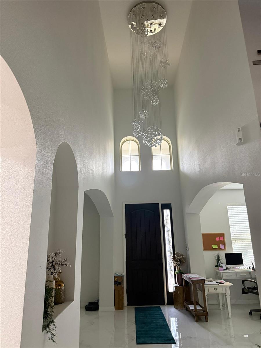 - Ceiling Fans(s), Eat-in Kitchen, High Ceilings, Kitchen/Family Room Combo, Primary Bedroom Main Floor, Solid Surface Counters, Solid Wood Cabinets, Stone Counters, Thermostat, Walk-In Closet(s), Window Treatments