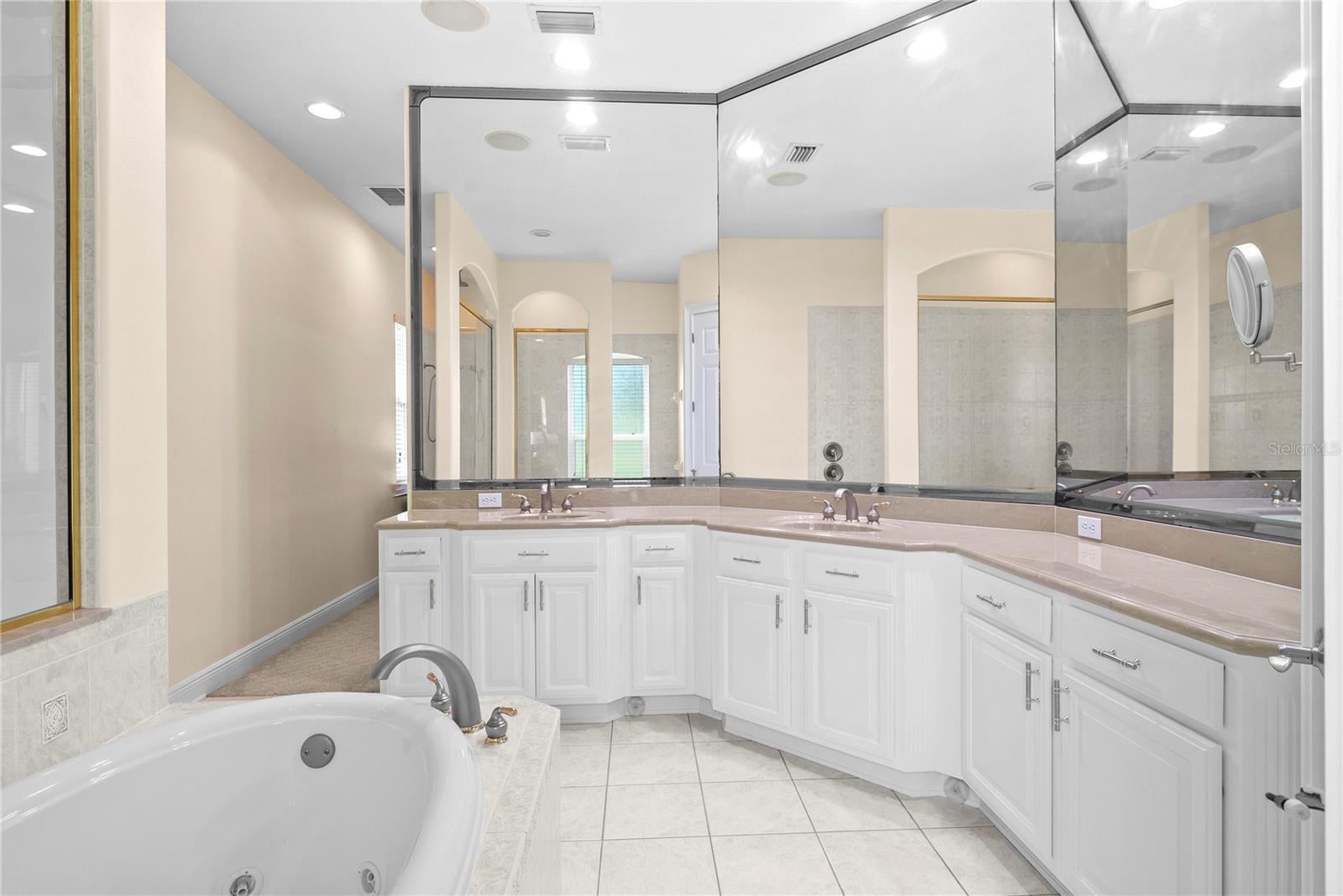 - Ceiling Fans(s), Crown Molding, Primary Bedroom Main Floor, Split Bedroom, Stone Counters