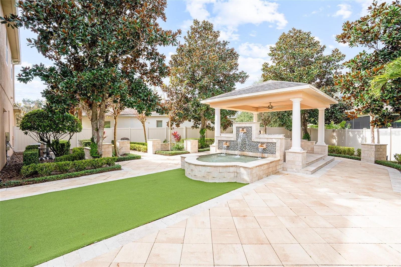 Tucked at the end of a quiet cul-de-sac in the sought after community of Windstone, this beautifully appointed Windermere residence offers a lifestyle centered on comfort, connection, and effortless everyday luxury. Designed with both relaxation and entertaining in mind, the home welcomes you with an open layout filled with natural light and refined finishes that elevate each space. The main floor flows easily from the inviting foyer into spacious living and gathering areas anchored by engineered hardwood floors and a decorative electric fireplace that adds warmth and character. The kitchen serves as the heart of the home, featuring stone counters, solid wood cabinetry, a wine refrigerator, premium appliances, and a generous island that encourages everyone to come together. A first floor guest suite provides ideal privacy for visitors or multi generational living. Upstairs, the primary suite feels like a personal retreat with a spacious layout, coffered ceiling, and a custom walk in closet. The spa inspired bath offers a peaceful start and finish to every day with stone surfaces, a soaking tub, and a walk in shower. Additional bedrooms were thoughtfully planned with walk in or dual closets and charming built in touches, creating spaces that feel both functional and special. Outdoor living is the highlight of this home. The covered lanai offers a peaceful spot for morning coffee or evening dinners just off the main living area. Beyond it, a beautifully designed outdoor kitchen sits beneath a columned pavilion beside a tranquil fountain, creating a stunning setting for hosting and entertaining. The lush turf yard connects these outdoor spaces seamlessly, forming a backyard that feels like a private retreat. The yard offers both the space and the serene atmosphere for a future pool, allowing you to envision how easily a sparkling addition could complete this outdoor oasis and elevate the amenities. Additional features include a well equipped laundry room, zoned air conditioning, a water filtration and softening system, and epoxy flooring in the two car garage. Located near top rated schools, everyday conveniences, and the world class entertainment and dining of the surrounding Windermere and Horizon West areas, this exceptional home blends elegance with warmth in a way that feels instantly welcoming.