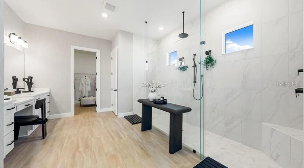 - Crown Molding, High Ceilings, Open Floorplan, Primary Bedroom Main Floor, Split Bedroom, Tray Ceiling(s), Walk-In Closet(s)