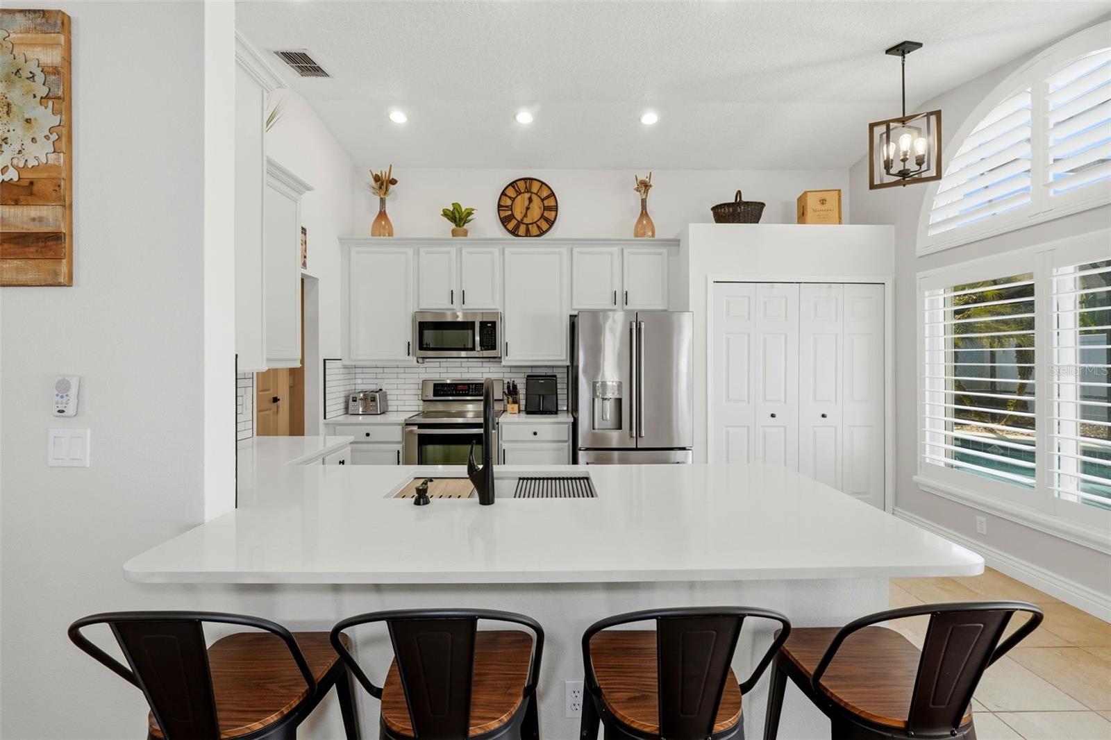 Under contract-accepting backup offers. Welcome to 10212 Facet Court—an impeccably maintained pool home on a quiet cul-de-sac in the highly desirable Diamond Cove community of Dr. Phillips, just minutes from top shopping, dining, major highways, and O-Town West. Step inside to a home thoughtfully maintained and beautifully updated throughout. Sky-high vaulted ceilings introduce the formal living and dining rooms, while the open kitchen showcases solid wood cabinetry, modern upgrades, and a quartz breakfast bar with a nook overlooking the pool. The family room, filled with natural light, is a space for easy entertaining. French doors lead to the gorgeous pool area and private back yard. The solar-heated pool, complete with automatic pool cleaner, removable safety fence, and full screen enclosure, is perfect for year-round enjoyment. The first-floor primary suite is a peaceful retreat with a walk-in closet, garden tub, and separate shower. A fully permitted, professionally constructed bedroom addition provides the rare benefit of two true bedrooms on the main level—an exceptional upgrade. A convenient half bath and an indoor laundry room complete this well-designed first floor. An elegant open gallery staircase leads to the upper level, where two well-appointed bedrooms share a beautifully updated full bath. Fresh plush carpeting adds comfort throughout, and one bedroom includes a custom built-in queen Murphy bed for versatility. Notable enhancements include new west-facing double-pane windows with custom luxury plantation shutters, a complete home re-pipe, and luxury vinyl plank flooring, along with numerous thoughtful updates throughout, giving you confidence in this move-in-ready home. Residents enjoy access to a pool, fishing dock, tennis courts, playground, community park, and green spaces, while nearby Lake Crowell offers a walking path and community dock for morning strolls or relaxed afternoon fishing. Dr. Phillips offers top schools, established neighborhoods, easy access to Orlando’s shopping, dining, and entertainment. With quick connections to I-4, the Turnpike, the airport, and Orlando’s major business and attraction hubs, this location blends convenience, comfort, and an unmatched lifestyle. Schedule your viewing today!