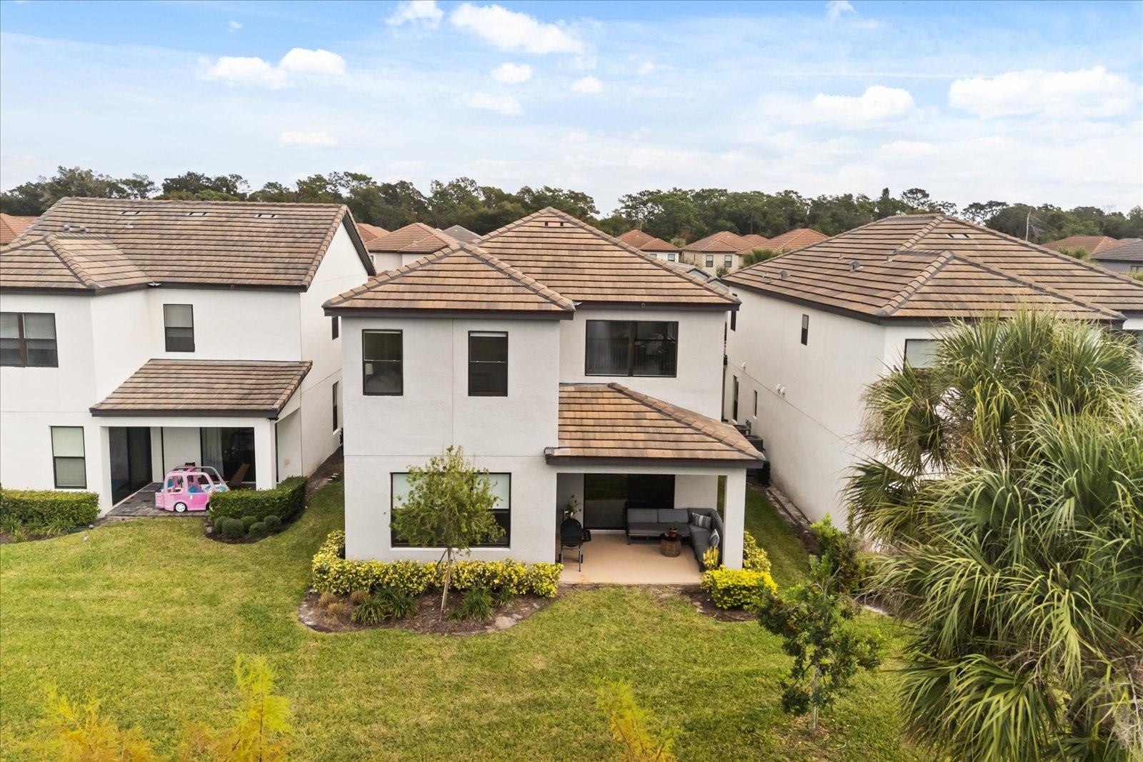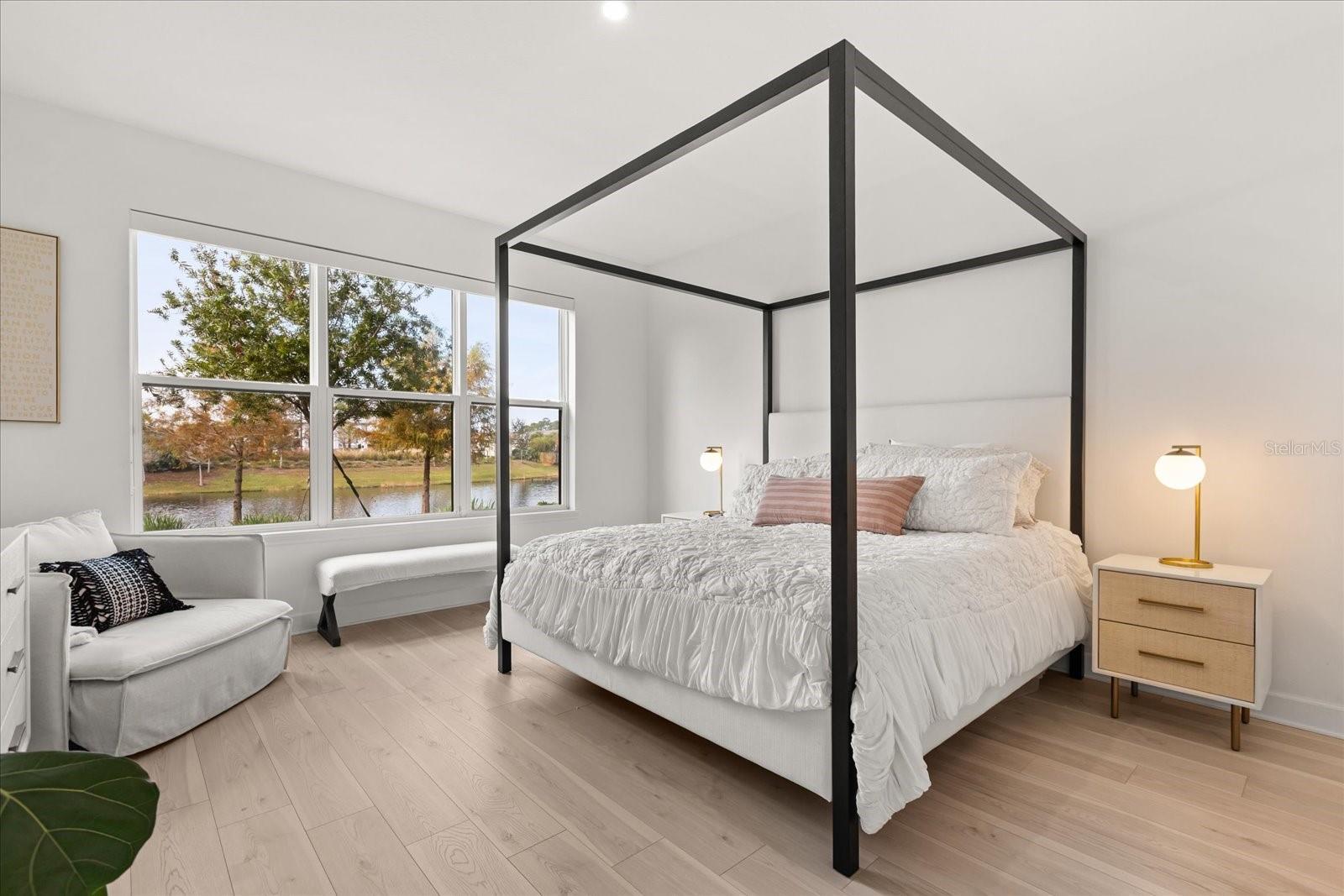 Welcome to Hawk’s Crest, one of Winter Park’s most desirable gated communities. Set on a larger lot with peaceful pond views, this beautifully maintained two-story home combines comfort, style, and gorgeous upgrades in a light-filled, open floor plan designed for everyday living. A pavered driveway and walkway create an inviting arrival and lead into a bright interior with soaring ceilings and abundant natural light. The chef’s kitchen anchors the main living space with quartz countertops, stainless steel appliances, solid wood cabinetry, and a generous breakfast-bar island that opens seamlessly to the dining and family rooms—ideal for entertaining or easy nights at home. Step out to the covered lanai and enjoy serene pond views, perfect for morning coffee or unwinding in the evening. Inside, upgraded luxury vinyl flooring and custom roller shades add warmth and polish to the open living areas, enhancing the home’s airy feel. The first-floor primary suite offers a private retreat with pond views, a spacious walk-in closet and a spa-inspired bath featuring dual vanities and a walk-in shower. A dedicated office on the main level provides flexibility and could easily function as a fifth bedroom. Upstairs, a generous loft creates additional living space, complemented by three well-sized bedrooms ideal for guests, hobbies, or working from home. With energy-efficient features and ample storage, this home is as practical as it is beautiful. Residents of Hawk’s Crest enjoy resort-style amenities including a sparkling pool, clubhouse, playgrounds, and scenic walking paths, along with the convenience of HOA-included lawn care for low-maintenance living. Ideally located near shopping, dining, outdoor recreation, and major roadways, this home places you close to everything Winter Park has to offer. Come see what life looks like at 1340 Blue Stem Lane—schedule your private showing today.