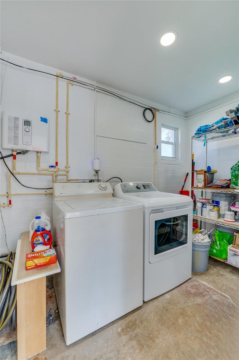- Dishwasher, Disposal, Dryer, Exhaust Fan, Microwave, Range, Refrigerator, Tankless Water Heater, Washer
