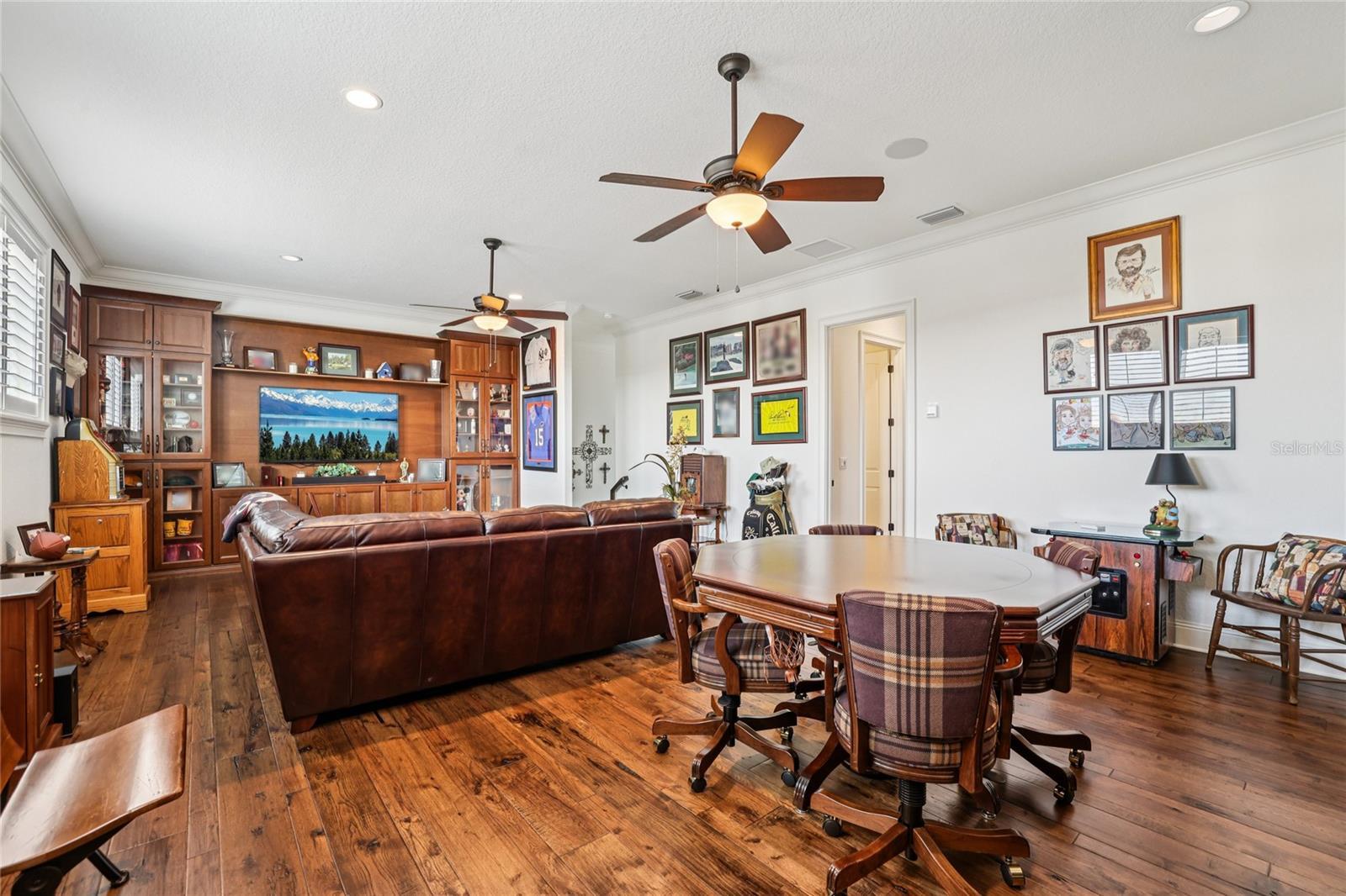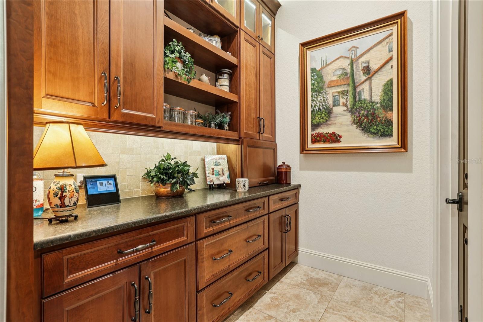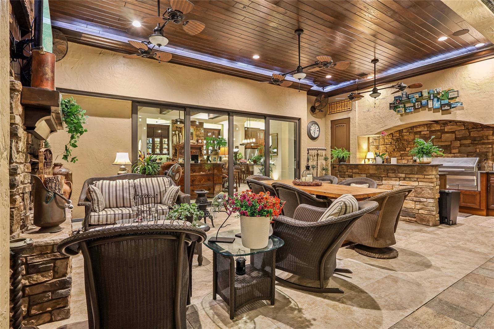 - Built-in Features, Ceiling Fans(s), Coffered Ceiling(s), Crown Molding, Dry Bar, Eat-in Kitchen, High Ceilings, Kitchen/Family Room Combo, Open Floorplan, Primary Bedroom Main Floor, Solid Wood Cabinets, Split Bedroom, Stone Counters, Tray Ceiling(s), Walk-In Closet(s), Window Treatments