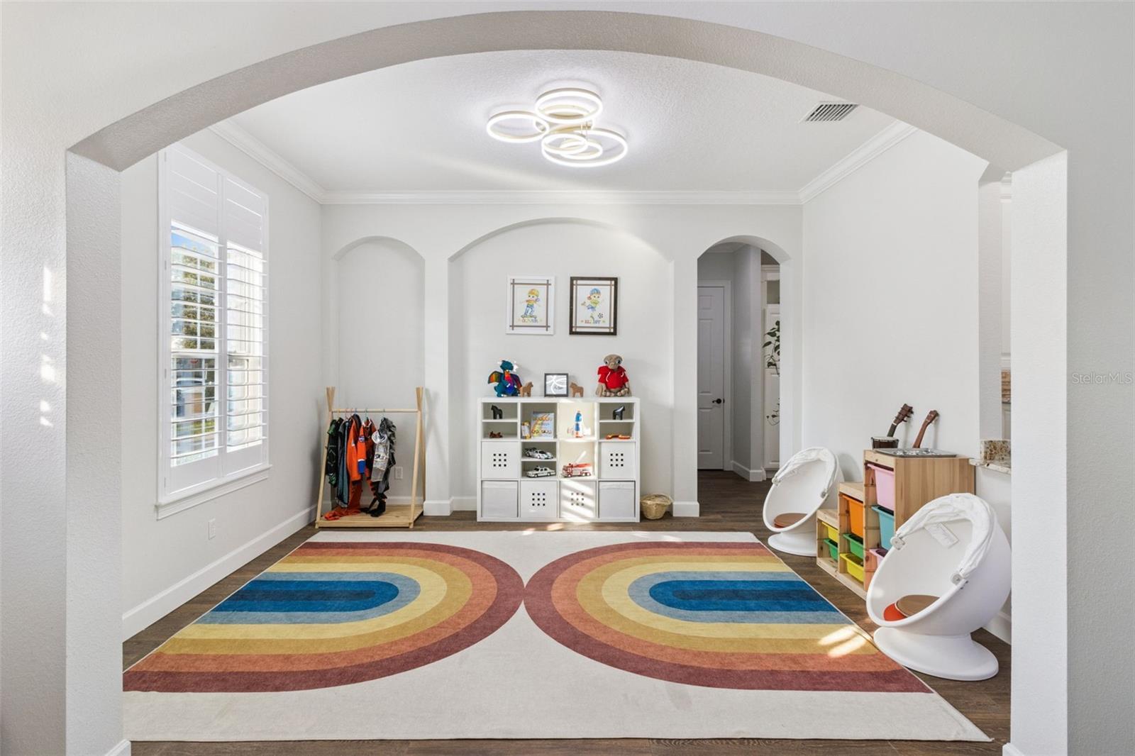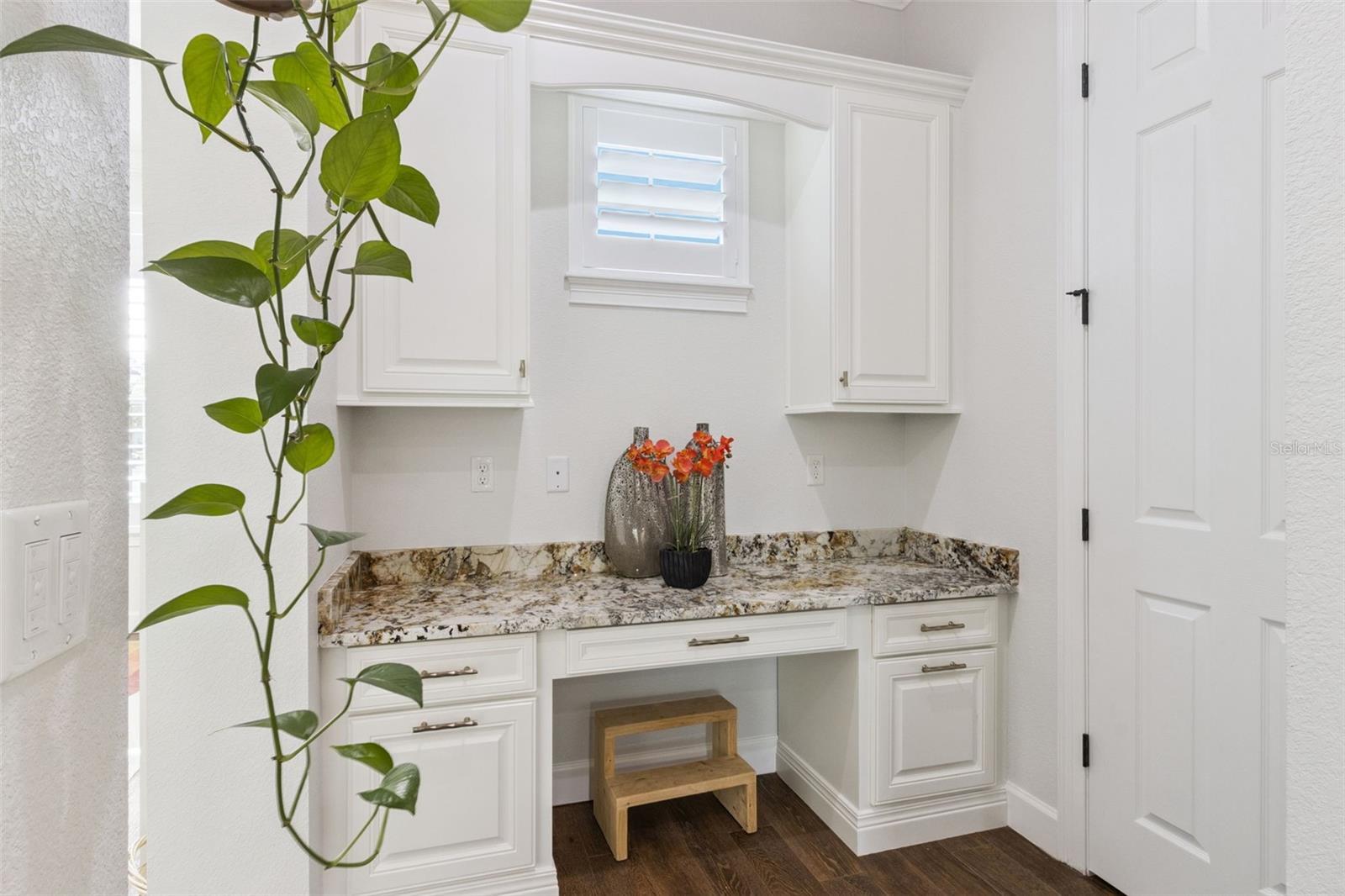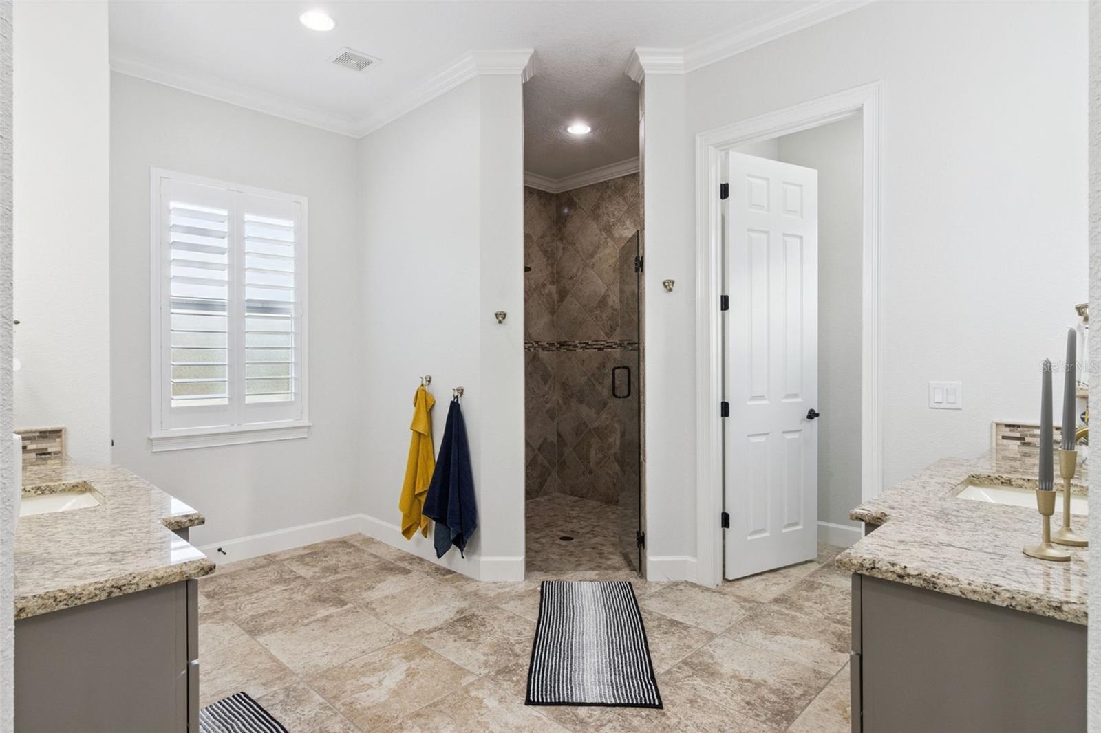- Built-in Features, Ceiling Fans(s), Coffered Ceiling(s), Crown Molding, Eat-in Kitchen, High Ceilings, Kitchen/Family Room Combo, Open Floorplan, Primary Bedroom Main Floor, Smart Home, Solid Wood Cabinets, Split Bedroom, Stone Counters, Thermostat, Tray Ceiling(s), Walk-In Closet(s), Window Treatments