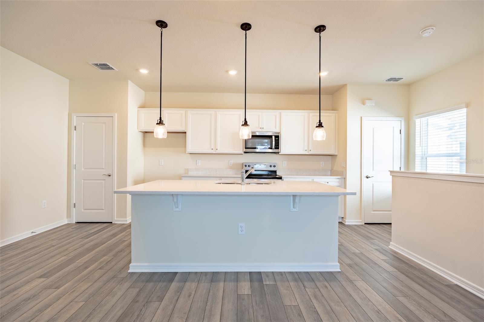 - High Ceilings, Kitchen/Family Room Combo, Living Room/Dining Room Combo, Open Floorplan, PrimaryBedroom Upstairs, Solid Wood Cabinets, Stone Counters, Walk-In Closet(s), Window Treatments