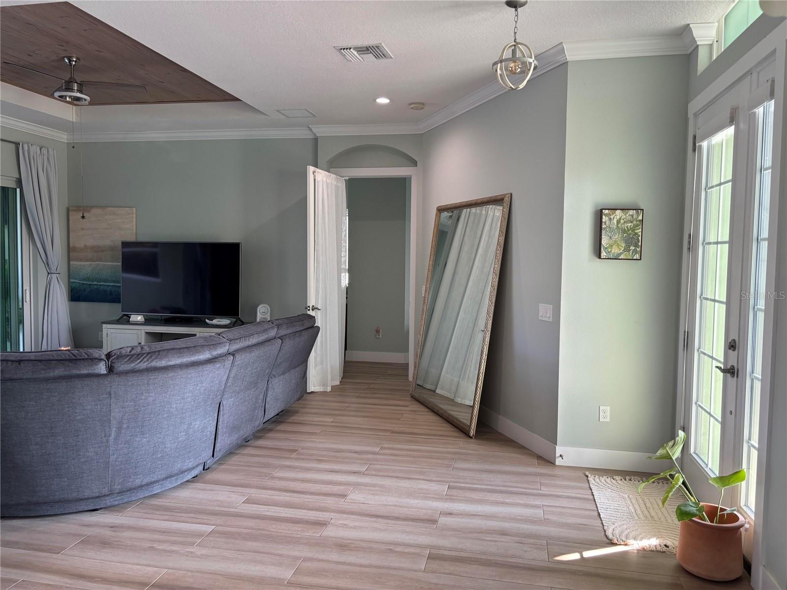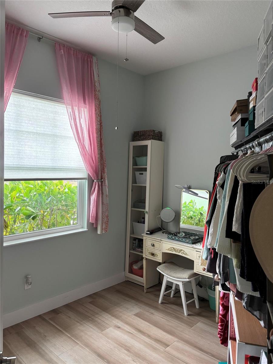 - Ceiling Fans(s), Crown Molding, High Ceilings, Open Floorplan, Primary Bedroom Main Floor, Solid Surface Counters, Solid Wood Cabinets, Thermostat, Tray Ceiling(s), Walk-In Closet(s), Window Treatments