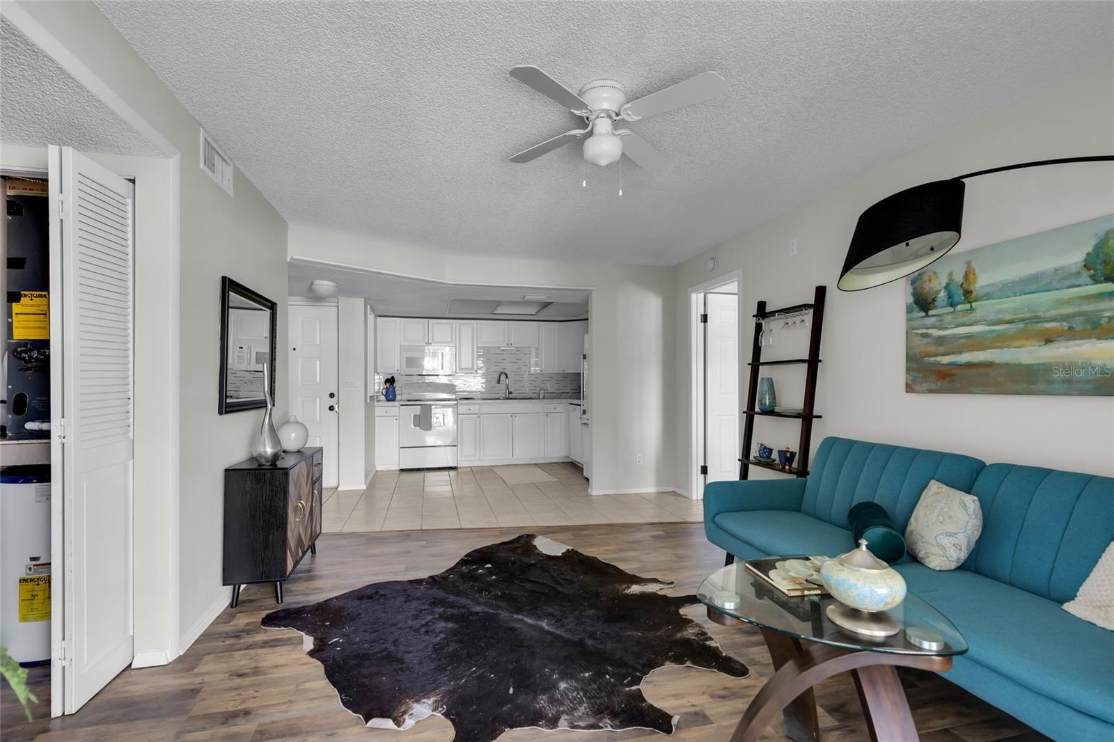 - Ceiling Fans(s), Kitchen/Family Room Combo, Open Floorplan, Split Bedroom, Thermostat