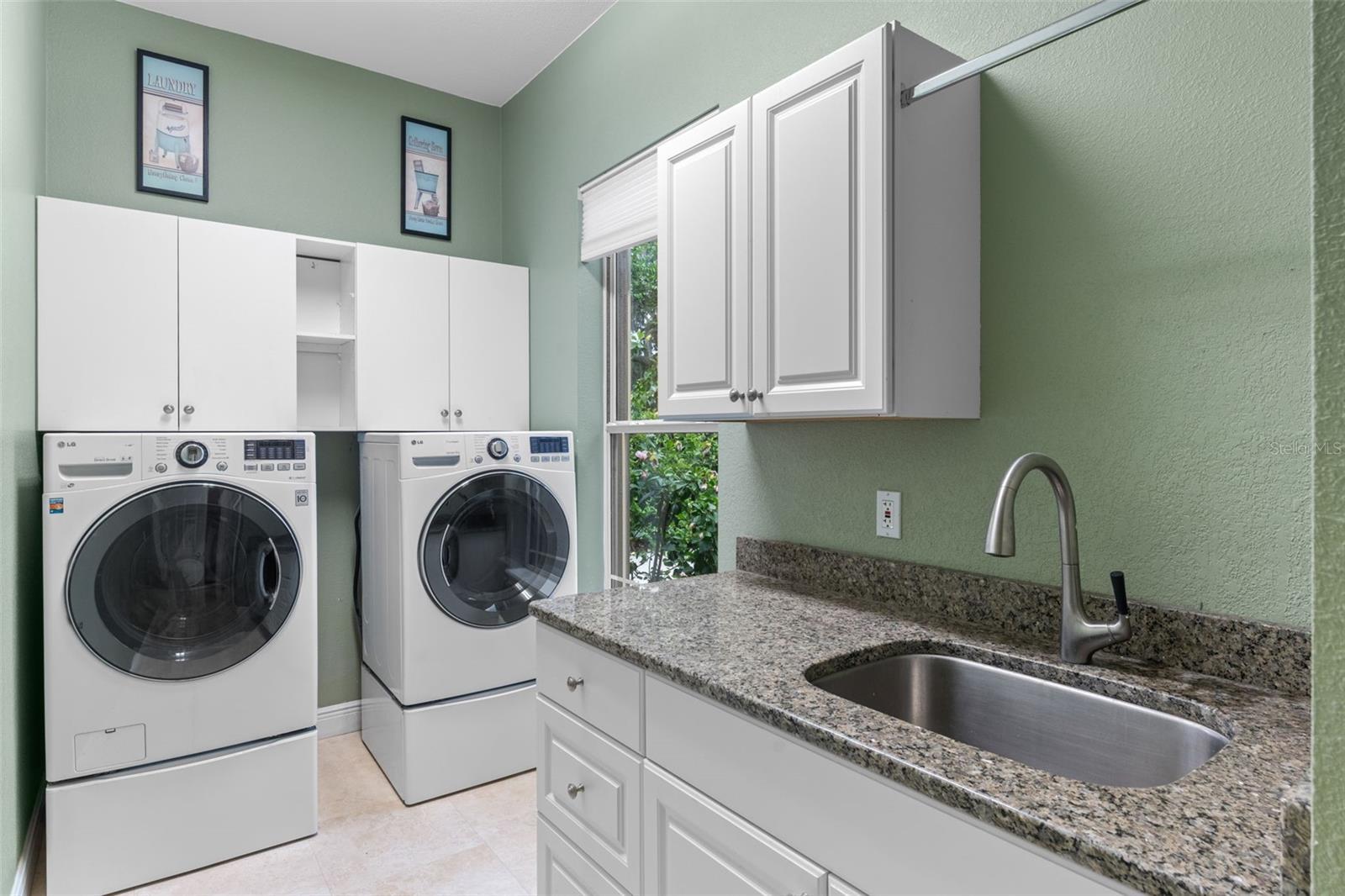 - Central Vaccum, Crown Molding, Eat-in Kitchen, High Ceilings, Kitchen/Family Room Combo, Living Room/Dining Room Combo, Primary Bedroom Main Floor, Solid Surface Counters, Split Bedroom, Stone Counters, Tray Ceiling(s), Walk-In Closet(s), Window Treatments