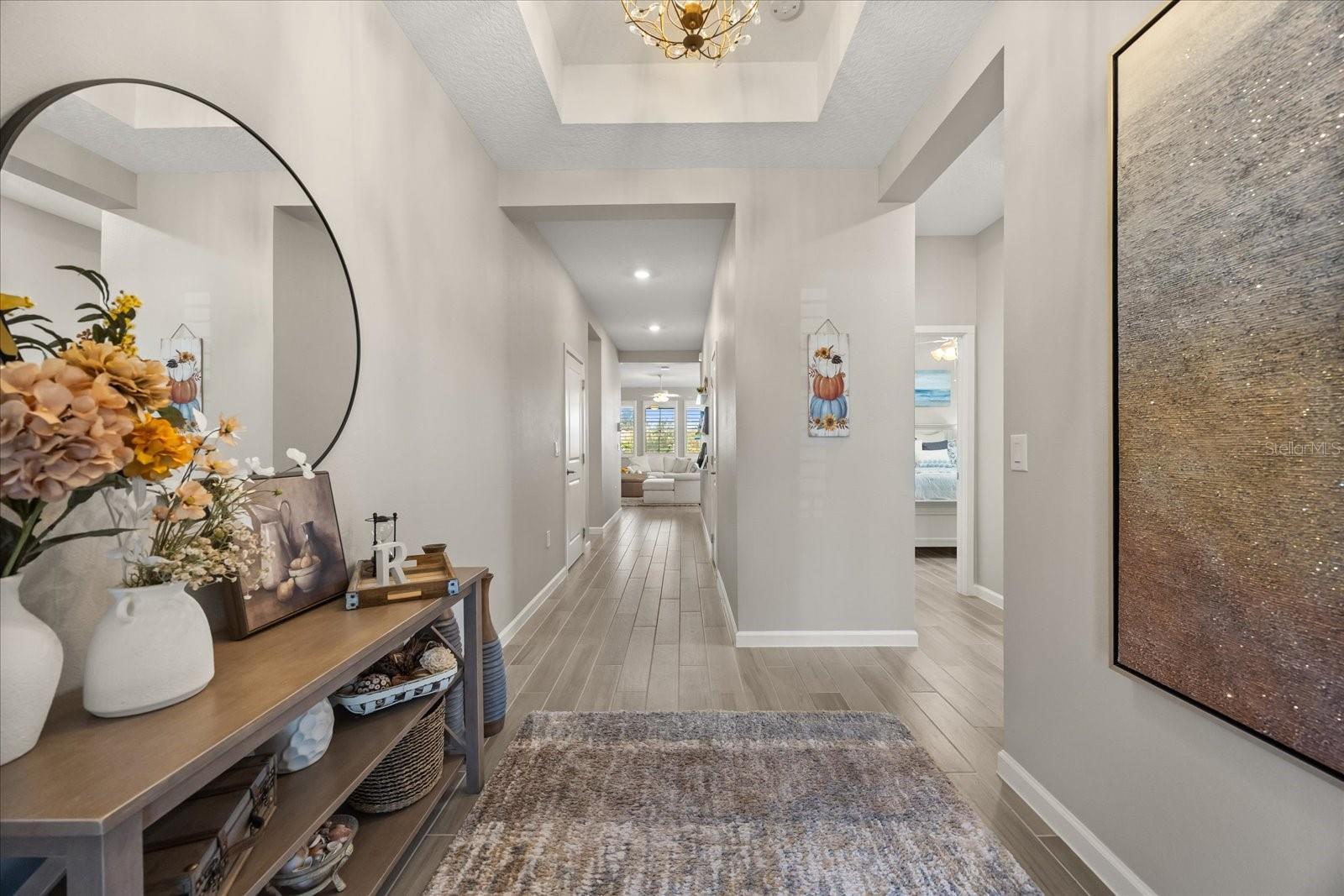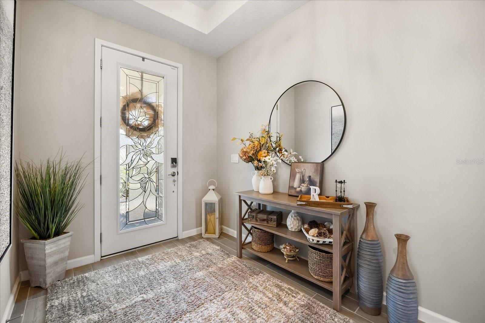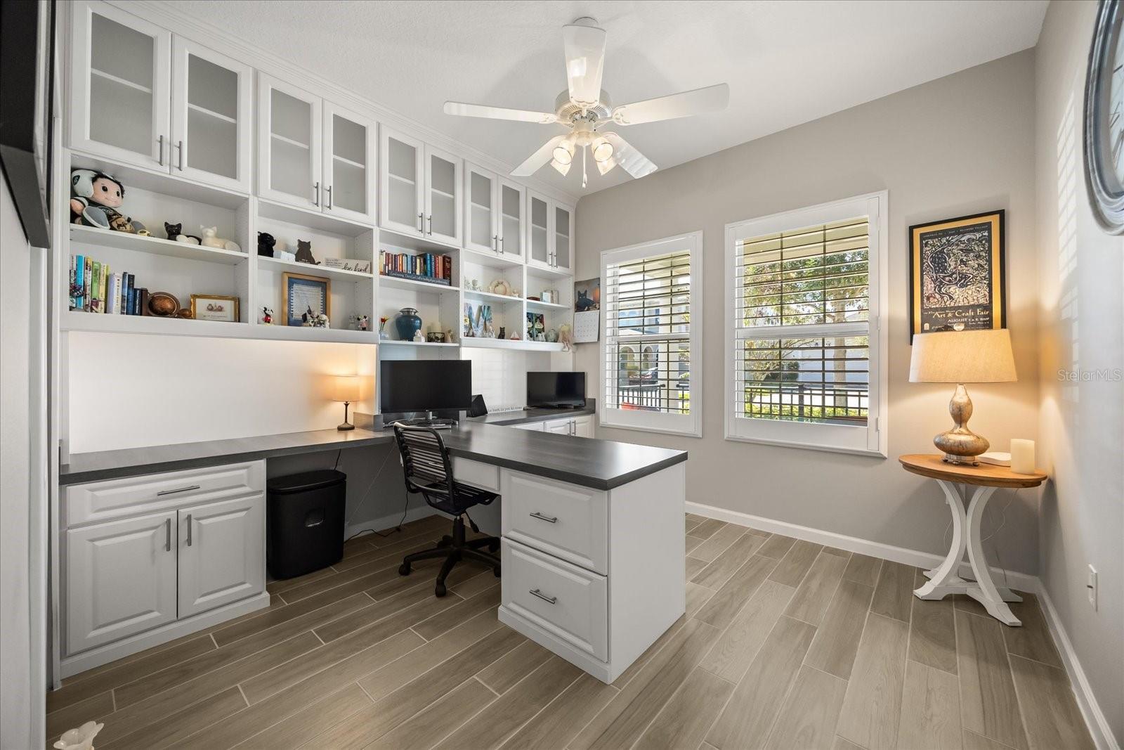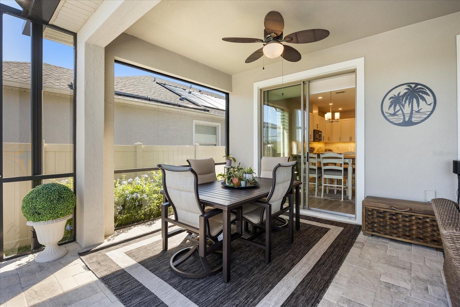 Under contract-accepting backup offers. Welcome to your dream home! This meticulously maintained residence boasts many updates that enhance both functionality and appeal, perfect for those who appreciate quality and style. The home features gorgeous curb appeal, enhanced by lush landscaping, wired landscape lighting, and serene pond views. A charming covered front porch greets you with elegant lighting and freshly cleaned and sealed paver stone flooring. The back porch has been extended and showcases a custom outdoor kitchen with beautiful granite counters, two refrigerators, and a premium Blaze stainless gas grill equipped with additional burners, a rotisserie, and ample lighting. The outdoor space is ideal for entertaining, overlooking a screened, saltwater sports pool complete with a volleyball and basketball hoop, a sandbar area, and a heated spa. This property includes a fully paid-off solar panel system, resulting in an incredibly low electric bill of $48/month, contributing to both savings and environmental sustainability. Additionally, the home is equipped with an active termite bond from Massey and Rampart security system for your peace of mind. Step inside to discover a beautifully appointed interior featuring wood tile flooring throughout, eliminating the need for carpet. The neutral paint creates a calm ambiance complemented by recessed lighting and plantation shutters throughout. The primary bedroom is spacious with a tray ceiling, leading to a luxurious En Suite featuring double vanities with white quartz counters, solid wood cabinets, a private water closet, a tiled shower with a frameless glass enclosure, a soaking tub, and an expansive walk-in closet. The kitchen is a chef’s delight with black GE stainless appliances, a hooded microwave, 42" solid wood cabinets, white quarts countertops, a subway backsplash, under-counter lighting, and a stylish frosted glass pantry door. The living room features elegant crown molding, custom cabinetry with barn doors, and an electric fireplace complete with a wood mantel — perfect for cozy evenings. There's updated lighting and Dan fans throughout home too. This split floor plan includes four thoughtfully designed bedrooms, with custom closet systems in every room. Bedroom two is currently set up with custom wood office furniture that can be removed if desired. The laundry room offers convenience with a tabletop for folding, cabinets for storage, and a hanging area for garments. The garage enhances functionality with epoxy flooring, built-in cabinets, a Craftsman tool box, hanging shelving, a Westinghouse 7500 dual fuel generator with a plug, and a smart garage door opener. A small fenced area on the side of the home houses a shed for lawn equipment and hidden pool equipment, making this home a perfect blend of beauty, practicality, and comfort. This home is a rare find that combines luxury, modern amenities, and a stunning outdoor living experience. Don’t miss out on this opportunity to make this exquisite property your own! All you need to do is hire the movers!!