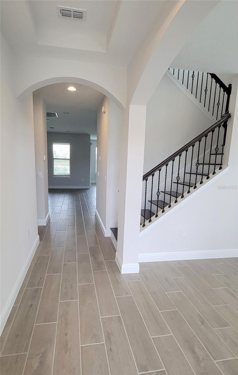 Incredible Lake views from this four year old home, 4 bedroom 3.5 bath water front home in highly desirable Waterleigh west of Disney. With great curb appeal, this home has a brick paved driveway and covered front porch. As you walk into this home, you are greeted by tall coffered ceiling, an elegant arch hallway, a side wide-opened Office/den with lots of natural light and wrought iron designer stair rail. Tile throughout the first floor except for the first floor bedroom next to the full bath with glass enclosed walk in shower. The half bath powder room is next to the garage and drop room and has an exterior door also to come straight in from outside. The drop room has several cabinets, counterspace and storage closet so you can keep your home clean after coming in from the garage. The garage has a double space door opener with one side extra deep for additional parking. The Great room main living area is a open concept with Family, Dining, and Kitchen all in one, great for entertaining. The Gourmet kitchen is gorgeous with tall Moca-covered cabinets with crown molding and under cabinet lights accented with a beautiful quartz counters. Stainless steel appliances, glass cooktop with separate built in microwave and oven and French door with water fridge with bottom freezer next to the huge walk-in pantry. The kitchen island features the sink, breakfast bar and overlooks the entire great room and views to the lake. The dining room Slider door opens to the large covered Lanai with the incredible views of the lake and 58 ft of water frontage perfect to start the morning with peaceful sunrises over the lake or enjoy the colorful, tranquil evenings. Enter the stairs next to the den to the upstairs spacious loft/game room. The large master bed has a coffered ceiling that adds a nice look and dimension to the room with three windows looking out over the water. A beautiful master bath with dual sinks, separate shower stall, and garden tub that also overlooks the pond. A great view to wake up to every morning. The Master bath also features a separate toilet room and the walk in closet is amazingly large. Bedroom 2-3 are split by the hall bath featuring dual sinks and separated toilet and bathtub room for greater use. Laundry room is also upstairs near the bedrooms. The home has modern decor styled raised panel doors throughout and plenty of extra closet space. This home has Smart technology for easy use and remote functionality. This amazing home is in the highly desirable community “Waterleigh.” Located just off the 429 west of Disney, This community amenities include a huge resort style pool, fitness gym, club house, dog park, huge sports fields, playground, beach volleyball, Tennis, lake view BBQ/picnic area, with sidewalks that wind around the scenic lakes, nature, and community for a relaxing and enjoyable lifestyle with periodic fitness stops if you choose. Fast and easy access anywhere. Hospitals, restaurants and shopping are all close and many more are being built nearby. Great schools; Water Spring Elementary, Water Spring Middle, and Horizon Highschool. All information here is deemed reliable but not guaranteed. Includes lawn care and all amenities access!