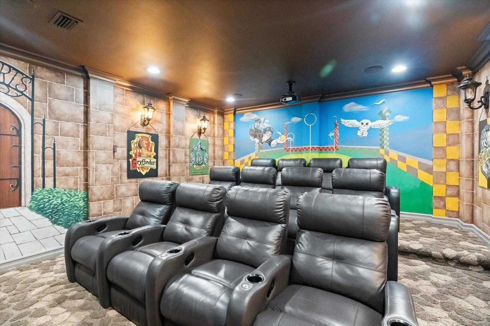 Welcome to Dream Vacation Home—a luxurious rental property designed exclusively for unforgettable vacations. This stunning 5,591 sq. ft. residence offers 9 bedrooms, 9.5 bathrooms, a gourmet kitchen, games room, custom theater room, themed kids’ bedrooms, private pool, and spillover spa. Proudly ranked #1 on HGTV’s “Best Vacation Homes Featured on House Hunters,” this home is the perfect home-away-from-home for your next family getaway. Step inside and be captivated by the elegant foyer and open-concept layout leading into the spacious living area. The gourmet kitchen is fully equipped for preparing family meals, featuring stainless steel appliances, granite countertops, and bar seating for 5. Gather for dinner at the formal dining table, which comfortably seats up to 16 guests—ideal for effortless entertaining. Slide open the doors to the pool deck and bask in the Florida sunshine. The covered lanai includes a summer kitchen with a natural gas grill, mini fridge, sink, granite countertops, 32-inch TV, and premium patio furniture. The private pool boasts a sun shelf for little ones, a relaxing spillover spa, and serene views of the conservation area. A convenient pool half-bath is also located on the lanai. On the ground floor, discover three master suites, each with a king-size bed and private en-suite bathroom. The first and second suites include a 50-inch TV and Blu-ray player, while the third offers a 42-inch TV and Blu-ray player. Upstairs, you’ll find three more king-size master suites with en-suite bathrooms: Suites 4 and 5 feature 50-inch TVs and Blu-ray players; Suite 6 has a 32-inch TV and Blu-ray player. Master Suite 7 offers a queen-size bed, en-suite bathroom, 32-inch TV, and Blu-ray player. The two themed kids’ bedrooms ensure comfortable and magical stays for the little ones. The princess bedroom includes two twin four-poster beds, a 42-inch TV, Blu-ray player, and en-suite bathroom—complete with glow-in-the-dark floating lanterns that appear on the walls and ceiling when the lights are turned off. The fun characters bedroom features two full-over-full bunk beds, a 42-inch TV, Blu-ray player with PS4, and en-suite bathroom. Entertainment abounds for the whole family. Enjoy movie nights in the custom theater room, equipped with a 120-inch projection screen, surround sound, Blu-ray player, and plush leather recliners seating 12. For even more fun, the adjacent games room offers an Arcade Legends 3 system, a 60-in-1 multi-arcade, air hockey table, and a 50-inch TV with PS5. A convenient wet bar includes a sink, Keurig coffee maker, microwave, and wine cooler/fridge. Step out from the games room onto the patio balcony, where you’ll find a pool table and seating for 4. This extraordinary vacation home will delight and amaze your entire family—creating lasting memories on your next getaway.