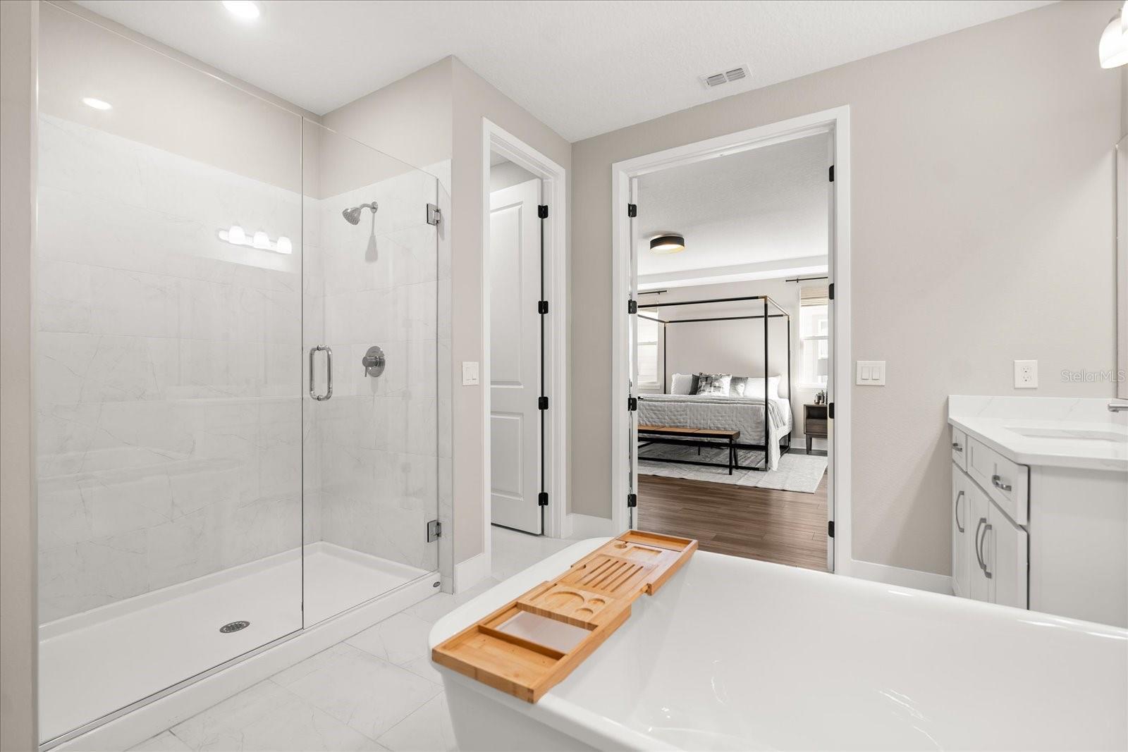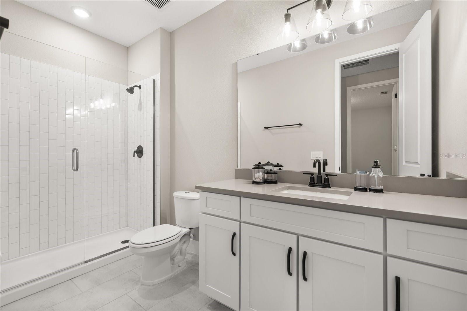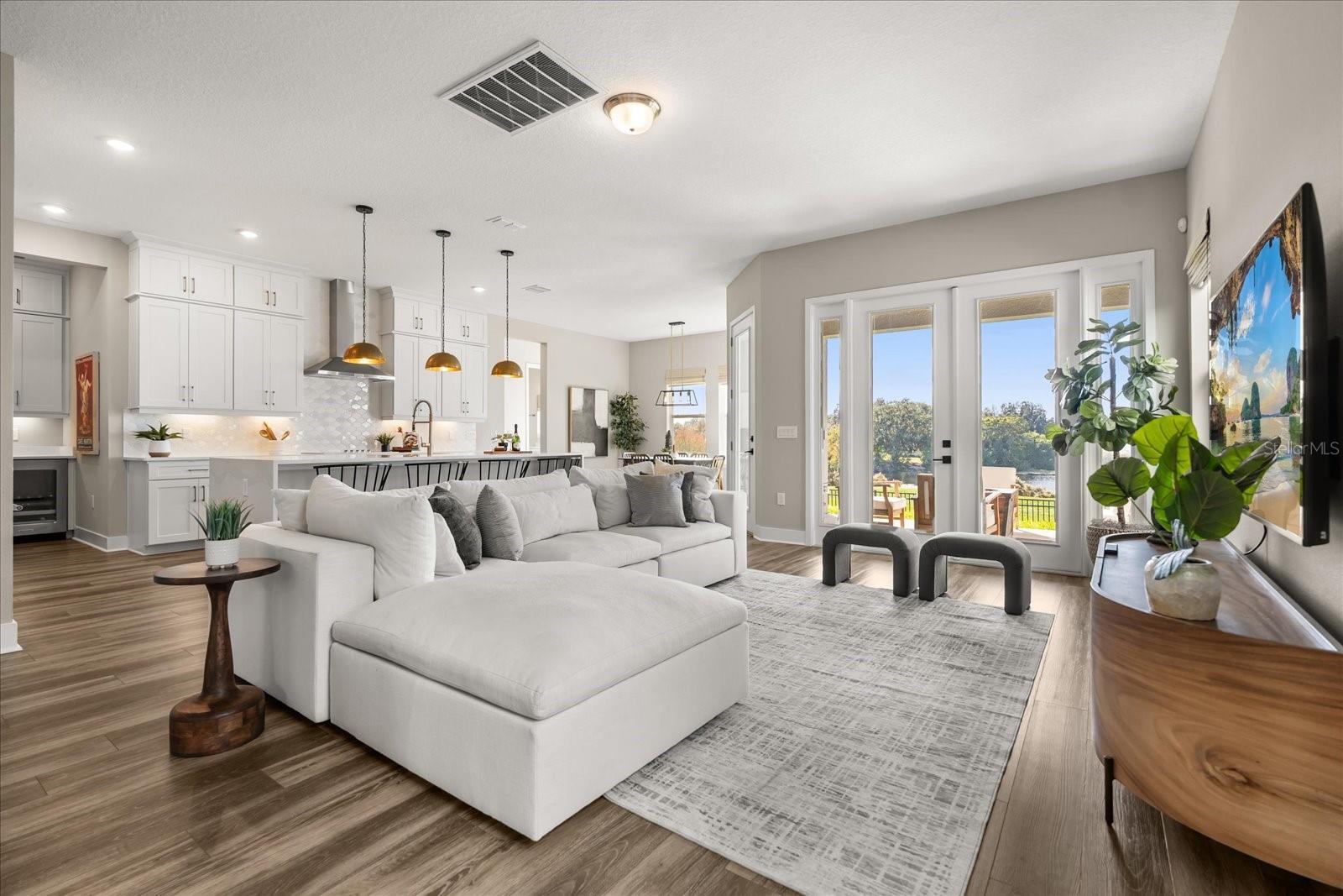 Welcome to beautiful lakefront living in one of Orlando’s most desirable gated communities. Built in 2022 by Meritage Homes, this lakefront home is located in the sought-after Sand Lake Sound community. The fully fenced property includes a paved driveway and a welcoming front porch, offering both privacy and great curb appeal. The first floor features a private office, a half bath, open living and dining area, and a modern kitchen with a quartz waterfall edge island, KitchenAid appliances, a large pantry, all with views of Big Sand Lake. A first-floor bedroom with a full bath is ideal for guests. Durable hard-surface flooring runs throughout the home, with no carpet for easy maintenance. Upstairs, you’ll find a spacious loft, a laundry room, and four additional bedrooms. The large primary suite includes a bright sitting area, a private balcony with lake views, a spa-style bathroom, and an oversized walk-in closet. Two bedrooms share a Jack-and-Jill bathroom, an additional full bathroom and all bedrooms have walk-in closets. The home includes paid-off Tesla solar panels for energy savings. The fenced backyard offers a cover patio, beautiful lake views and nightly Disney fireworks. Community amenities include a resort-style pool, splash pad, playground, boat dock, and dog park. The home is conveniently located near major theme parks and Orlando’s popular Restaurant Row. Schedule your private tour today, this exceptional lakefront home won’t last long.