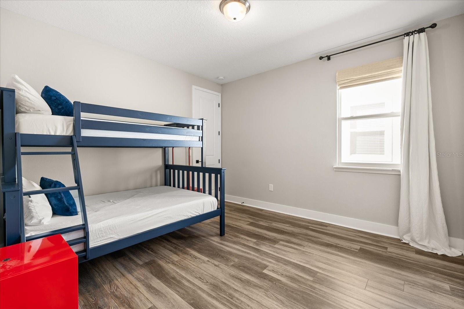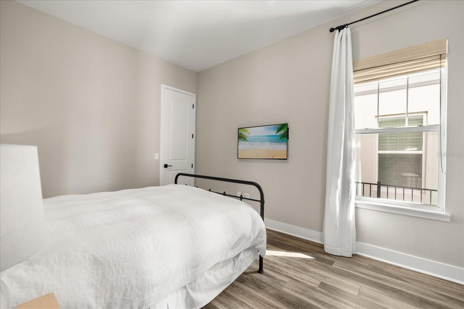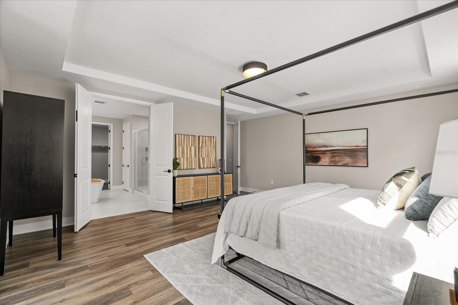 Welcome to beautiful lakefront living in one of Orlando’s most desirable gated communities. Built in 2022 by Meritage Homes, this lakefront home is located in the sought-after Sand Lake Sound community. The fully fenced property includes a paved driveway and a welcoming front porch, offering both privacy and great curb appeal. The first floor features a private office, a half bath, open living and dining area, and a modern kitchen with a quartz waterfall edge island, KitchenAid appliances, a large pantry, all with views of Big Sand Lake. A first-floor bedroom with a full bath is ideal for guests. Durable hard-surface flooring runs throughout the home, with no carpet for easy maintenance. Upstairs, you’ll find a spacious loft, a laundry room, and four additional bedrooms. The large primary suite includes a bright sitting area, a private balcony with lake views, a spa-style bathroom, and an oversized walk-in closet. Two bedrooms share a Jack-and-Jill bathroom, an additional full bathroom and all bedrooms have walk-in closets. The home includes paid-off Tesla solar panels for energy savings. The fenced backyard offers a cover patio, beautiful lake views and nightly Disney fireworks. Community amenities include a resort-style pool, splash pad, playground, boat dock, and dog park. The home is conveniently located near major theme parks and Orlando’s popular Restaurant Row. Schedule your private tour today, this exceptional lakefront home won’t last long.
