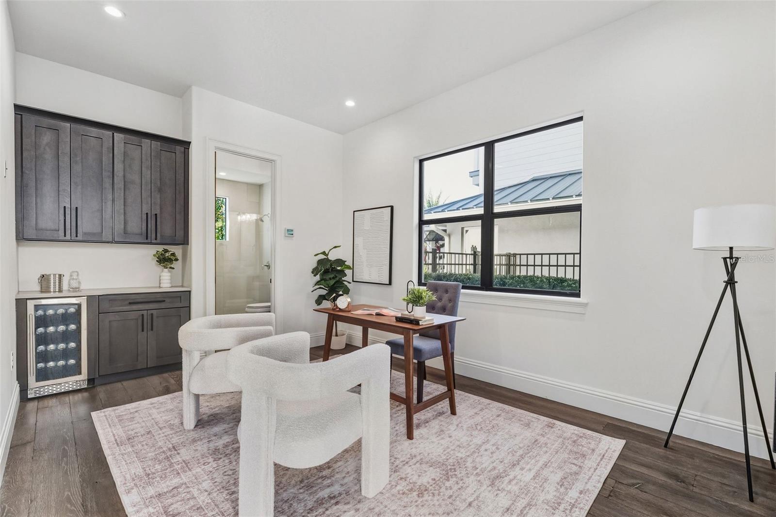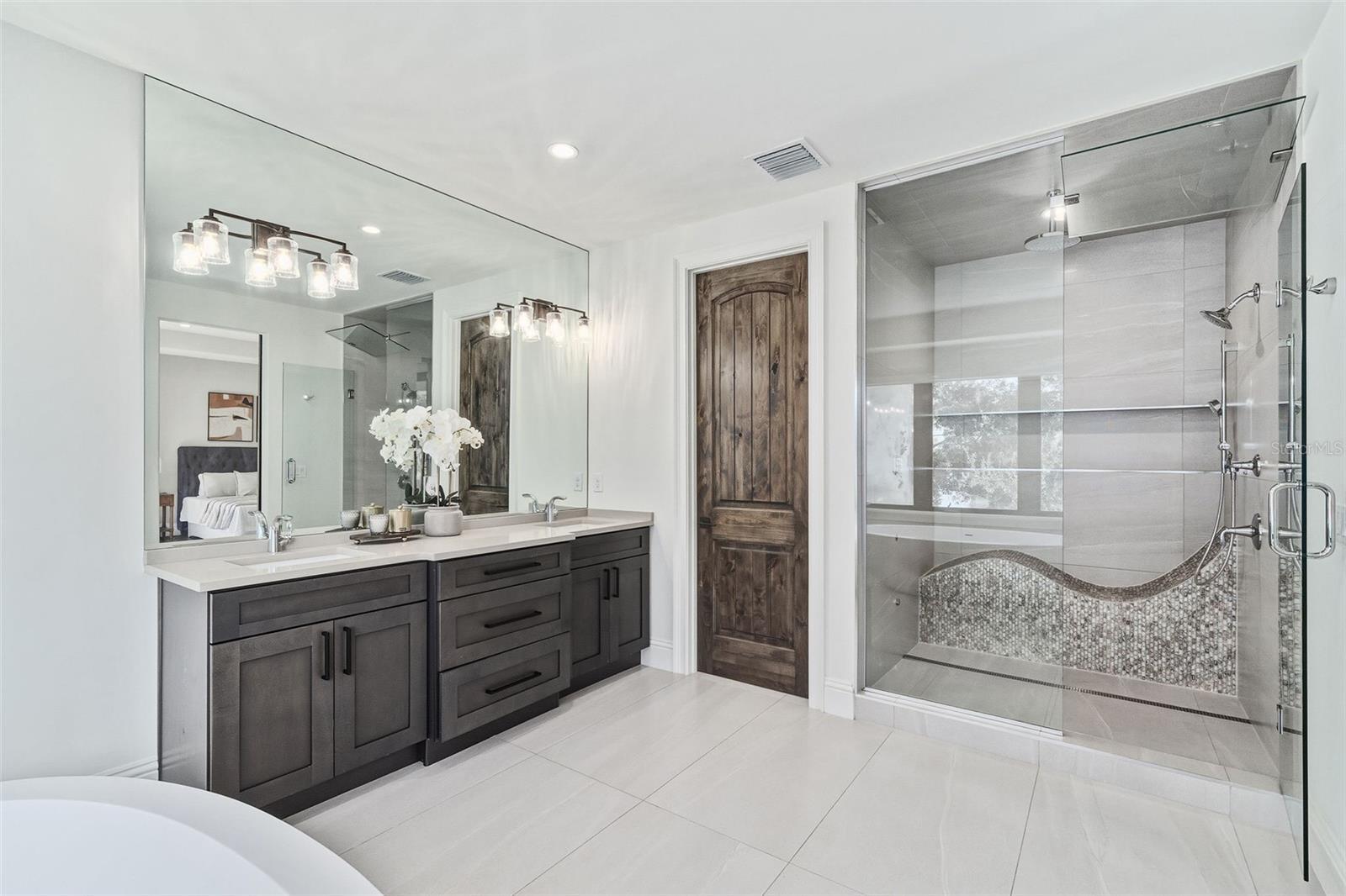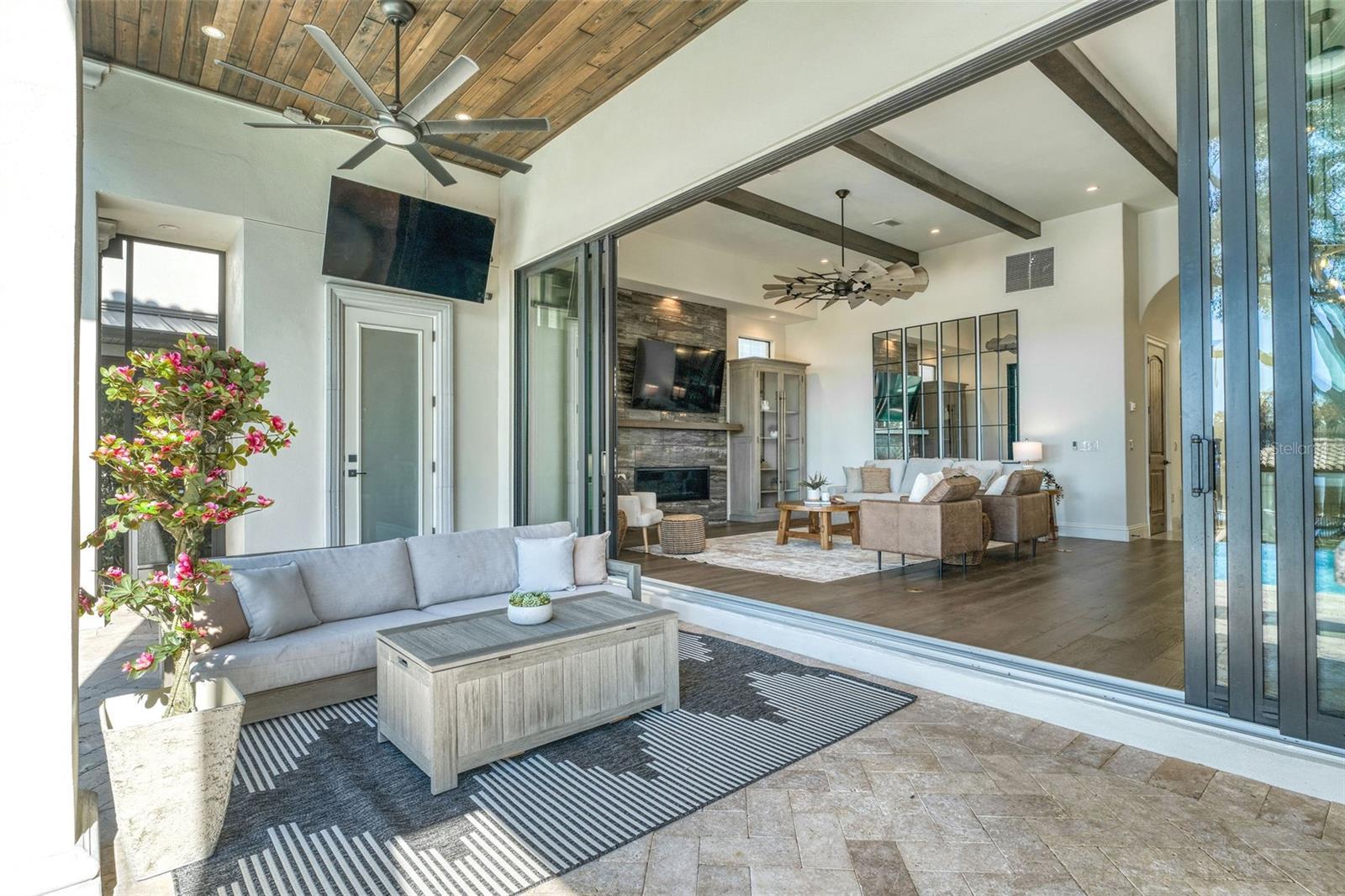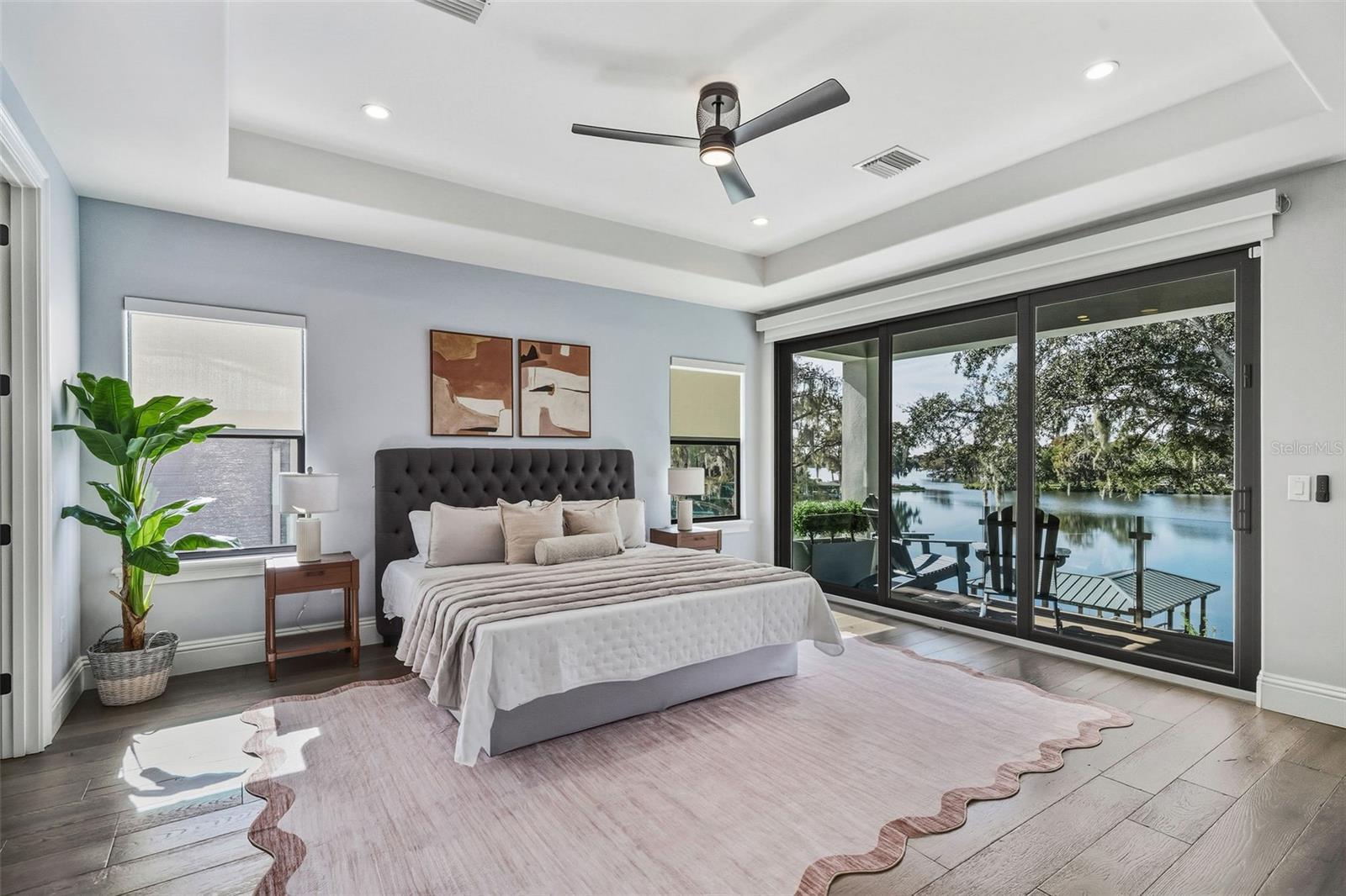 Under contract-accepting backup offers. Completed in 2020, this exceptional Winter Park lakefront estate blends refined architecture, thoughtful design, and effortless indoor-outdoor living on Lake Killarney. Beyond the gated courtyard-style entrance, the main residence offers 5 bedrooms, 4 full baths, and 2 half baths, complemented by a detached in-law studio ideal for guests, extended family, or a private home office, with a full bath, walk-in closet, and a dry bar with a mini refrigerator. Behind the home, the rear lawn stretches down to the lake where an oversized boat dock provides direct access to Lake Killarney for watersports or breathtaking sunset cruises. Enjoy a large deck, and an upgraded boat lift with 2 motors and a high-capacity cradle to accommodate a variety of boats. Throughout the home, a timeless neutral palette creates a warm and inviting space with modern elegance. An impressive open dining area greets you with soaring 2-story ceilings accented by exposed beams, and is adjoined to the kitchen by a well-appointed butler’s pantry for seamless hosting, complete with a dry bar and wine refrigerator, and a walk-in pantry. The kitchen is a true showpiece, with exceptional floor-to-ceiling cabinetry, 48” natural gas range with dual convection ovens, 2 dishwashers, and a built-in coffee/espresso machine. Anchoring the space, a large quartz-covered island offers 2 faucets plus a filtered water dispenser, and a butcher block prep space. The light-filled living room impresses with dramatic ceilings, a striking gas fireplace, and 10’ sliding glass doors that stack open to the covered lanai. A true extension of the home, the outdoor living experience is exceptional, featuring a summer kitchen, pool bath with an outdoor shower, and remote-controlled screens for year-round enjoyment. The resort-style pool and spa includes a sun shelf, all wrapped in travertine decking, overlooking the lake to provide a tranquil setting for relaxing with friends & family. Completing the main level is a private downstairs guest suite or home office, with a full bath and walk-in closet. Upstairs, the split-bedroom plan is separated by a versatile loft/bonus area with a dry bar and beverage fridge, ideal for a secondary living room, playroom, or study. Designed to embrace the home’s exceptional lakefront setting, the spacious primary retreat captures lake views through expansive glass doors, from the private balcony, and from the en-suite bath. The primary bath is luxurious, and thoughtfully designed to be a true sanctuary, with a freestanding soaking tub positioned to enjoy lake views, and a large glass-enclosed steam shower. Enjoy a very generous walk-in closet, with extensive built-ins and a center island that create a boutique-style dressing experience. The upper level also includes three additional bedrooms with wood floors, high ceilings, and easy access to 2 full bathrooms, plus a functional laundry room conveniently located off the bonus area. Perfectly positioned in Winter Park, with shopping, dining, and everyday conveniences just blocks away at the new and improved Winter Park Village, and the vibrant energy of the famed Park Avenue only minutes from your door, this lakefront home delivers the rare combination of newer construction and exceptional waterfront living—without compromise.