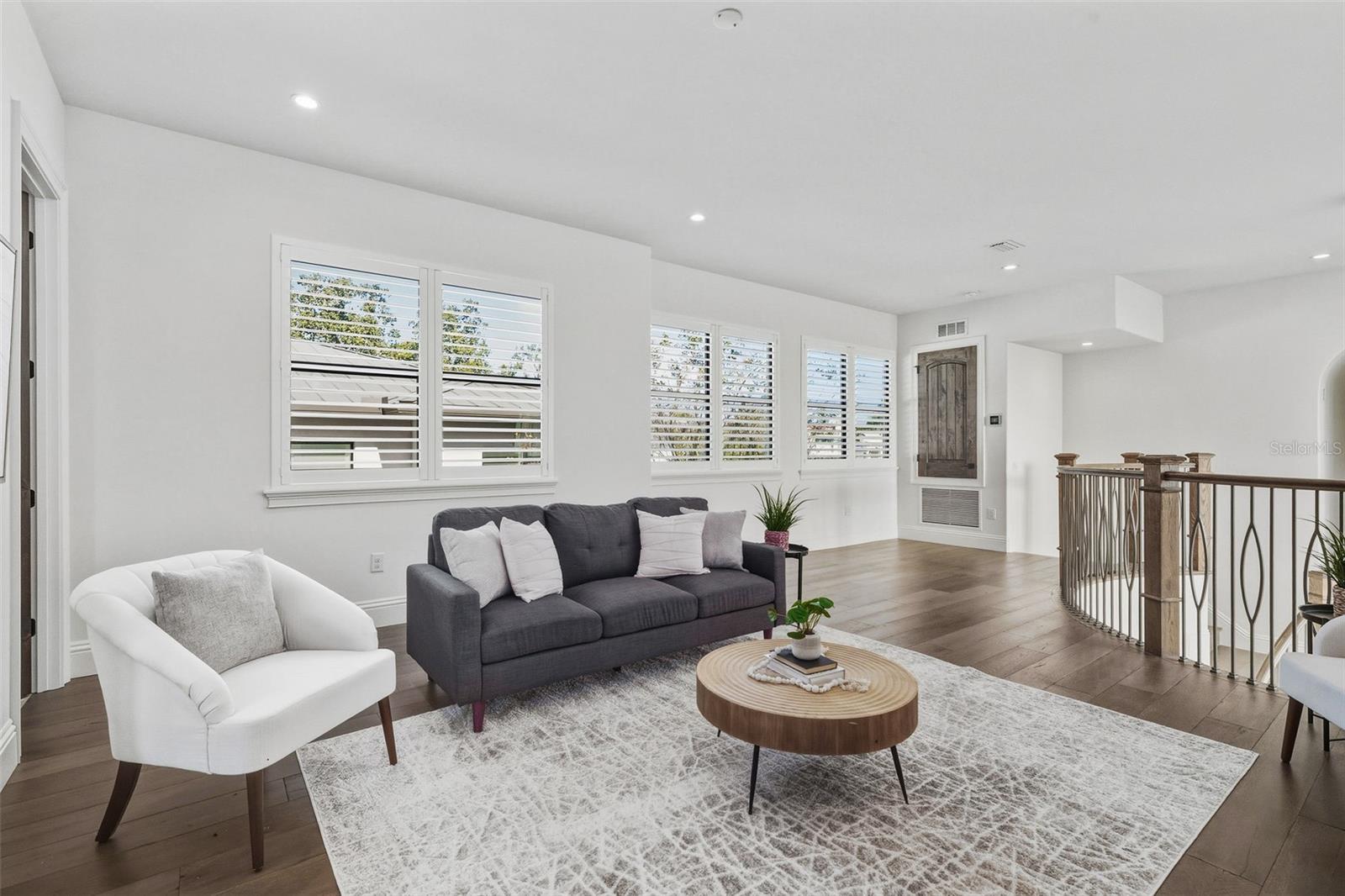 - Built-in Features, Ceiling Fans(s), Dry Bar, High Ceilings, Kitchen/Family Room Combo, Open Floorplan, PrimaryBedroom Upstairs, Solid Wood Cabinets, Split Bedroom, Stone Counters, Walk-In Closet(s), Window Treatments