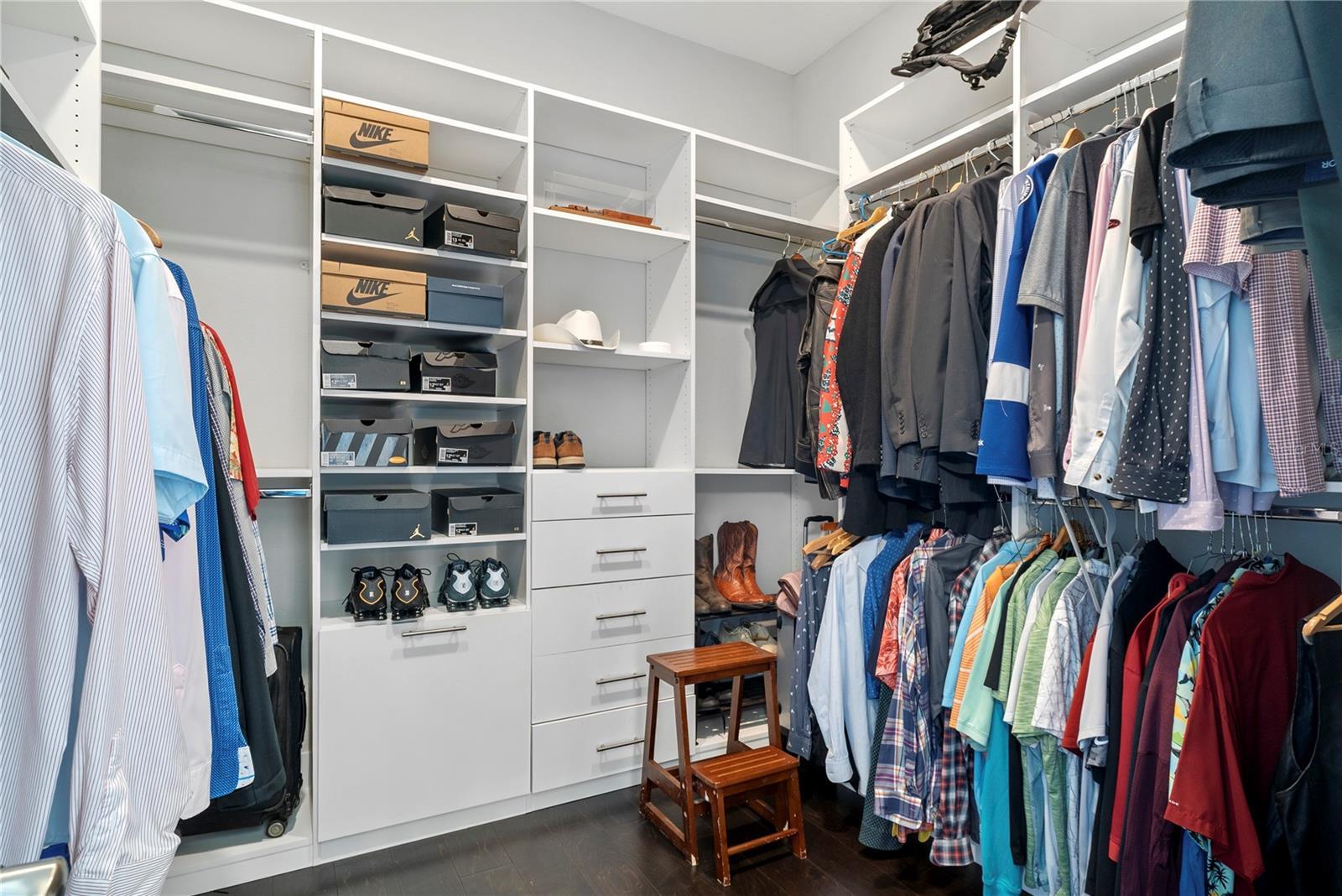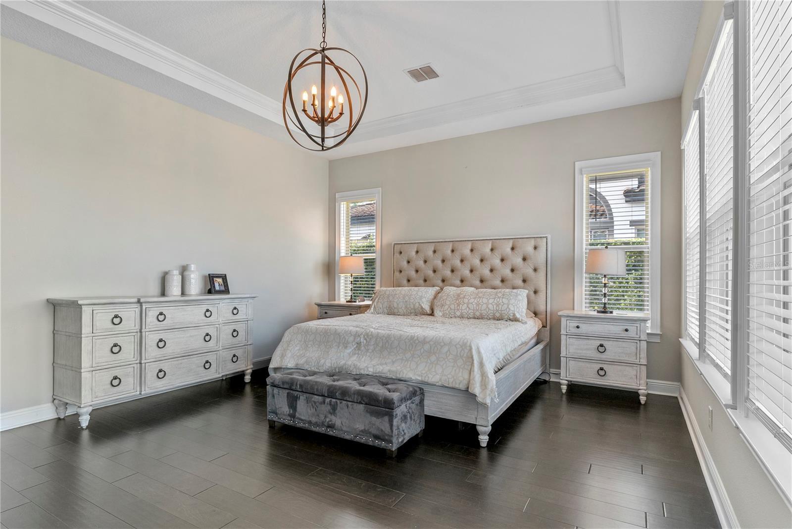 - Central Vaccum, Crown Molding, Eat-in Kitchen, High Ceilings, Kitchen/Family Room Combo, Open Floorplan, Primary Bedroom Main Floor, Split Bedroom, Thermostat, Tray Ceiling(s), Walk-In Closet(s)