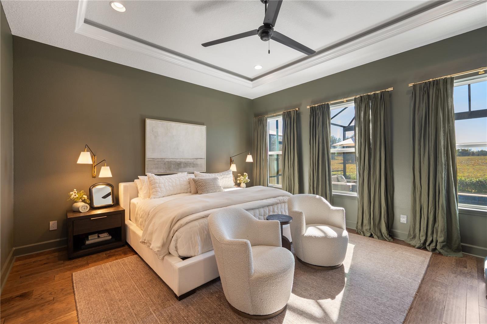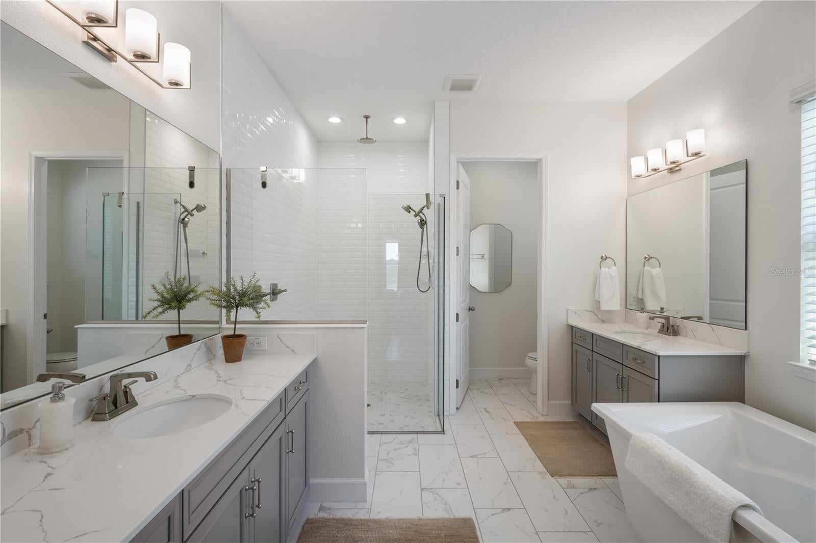 Under contract-accepting backup offers. Thoughtfully designed with no rear neighbors, this exceptional new construction residence offers timeless elegance, refined craftsmanship, and modern luxury in a setting that feels both private and connected. A welcoming front porch sets the tone for what unfolds inside, where interiors show the attention to detail, featuring curated finishes, wallpaper, and engineered hardwood throughout. The living room and kitchen are seamlessly connected in an open floor plan, creating a sophisticated yet inviting space ideal for both daily living and entertaining. The kitchen is a true centerpiece, featuring a farmer's sink, quartz countertops, a 6-burner KitchenAid gas range and KitchenAid 5-door refrigerator. A versatile BONUS ROOM on the first floor offers exceptional flexibility and is ideal for a private office, man cave, or playroom. Upstairs, a spacious loft provides additional living space, perfect for a media room, lounge, or secondary family area. The first-floor primary suite is a true retreat. The bedroom is generously scaled and filled with natural light, creating a calm and inviting atmosphere. The spa inspired primary bath features dual vanities, a soaking tub, and thoughtful design, while his and her walk in closets offer exceptional storage and organization. Custom built in closets are featured throughout the home, including the laundry room and pantry. Secondary bedrooms and baths are equally well appointed, continuing the home’s refined aesthetic and sense of cohesion. Walk through the living room to covered patio through 3 sliding pocket doors, where the outdoor living is truly exceptional. Featuring a saltwater pool with new pump (2025) overlooking open views and a fully equipped outdoor kitchen, creating a resort inspired environment for relaxing or entertaining. With NO REAR NEIGHBORS, the backyard offers a rare sense of openness, and in the evenings, enjoy the magic of Disney fireworks visible from your own backyard. The pool is heated with limestone pavers, water features, and has a panoramic screen so no views are obstructed. Enhancing both luxury and efficiency, the home includes PAID OFF SOLAR PANELS with four Tesla batteries, and a Tesla EV charging station! Ideally located approximately ten minutes from Disney and just minutes from Hamlin Town Center, residents enjoy shopping, restaurants, Cinépolis movie theater, Publix, PopStroke, and the Horizon West Orlando Health Hospital just minutes away. A rare opportunity to own a newly built residence that seamlessly blends elevated design, modern technology, and an exceptional lifestyle in one of the area’s most desirable locations.