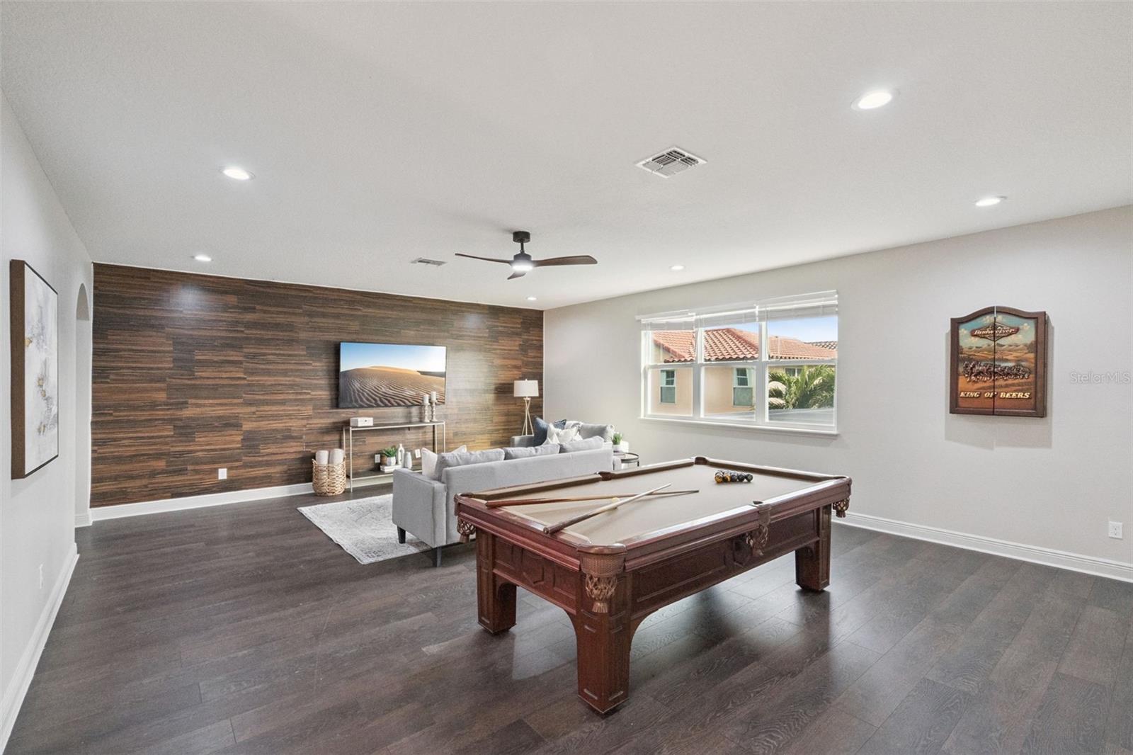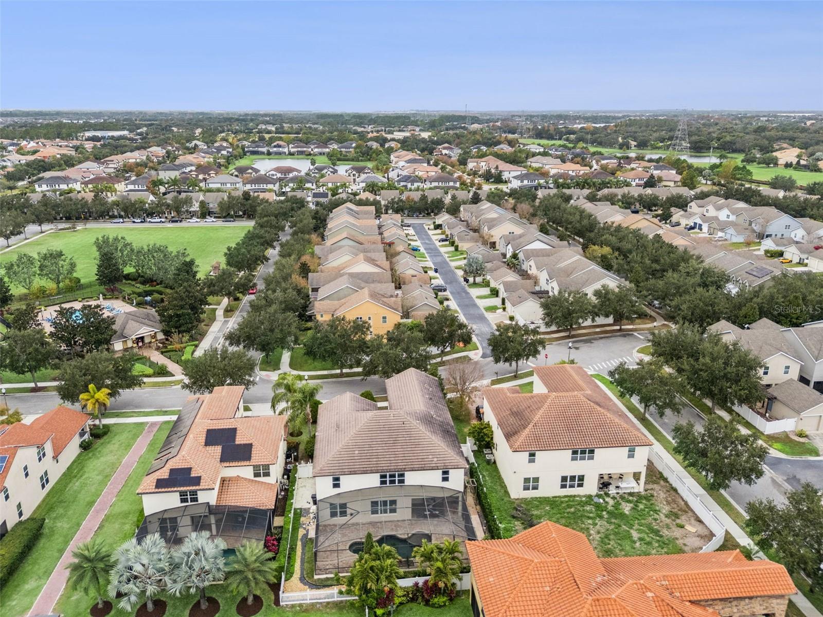 MOVE-IN READY and thoughtfully upgraded, this spacious residence is located in the established Windermere Landing community and offers serene pond views, energy-efficient construction, and a flexible layout designed for modern living. From the moment you arrive, recent improvements are immediately apparent, including a FULL INTERIOR REPAINT, NEW LUXURY VINYL PLANK FLOORING throughout the main living areas, and FRESHLY PAINTED CABINETRY, creating a clean and cohesive presentation throughout the home. The exterior showcases a TILE ROOF and stone accents, reflecting durable construction and classic curb appeal. Upon entry, the home opens to a bright and open interior filled with natural light. LED LIGHTING and CRYSTAL CHANDELIERS add understated elegance while maintaining a comfortable, neutral aesthetic. The living and dining spaces flow naturally, providing flexibility for both everyday use and gatherings. The kitchen is centrally located and opens seamlessly to the main living areas. It features UPDATED CABINETRY, BRAND-NEW APPLIANCES including a NEW STOVE, NEW DISHWASHER, and NEW MICROWAVE, along with ample counter and storage space to support daily functionality. Nearby living areas remain open and connected, enhancing the overall sense of space. Bathrooms throughout the home are finished with QUARTZ-STYLE MARBLE COUNTERTOPS and UPDATED FIXTURES, continuing the contemporary design. A NEW HOT WATER HEATER adds practical value, while thoughtful storage solutions and layout details contribute to overall comfort and usability. The home offers seven bedrooms and five bathrooms, including TWO PRIMARY SUITES, providing flexibility for MULTIGENERATIONAL LIVING or private guest accommodations. TWO MEDIA ROOMS showcase versatile spaces suitable for entertainment, home office use, or additional living areas. TWO LAUNDRY ROOMS further enhance daily convenience. Outdoor living includes a PRIVATE POOL overlooking a peaceful pond, offering a tranquil setting with scenic water views. Sunrise and sunset views enhance the outdoor experience, with distant DISNEY FIREWORKS visible in the evening, adding a distinct Central Florida backdrop. Built by Meritage Homes, the property includes ENERGY-EFFICIENT FEATURES such as a 15 SEER A/C SYSTEM, ENERGY STAR APPLIANCES, a SPRAY-FOAM INSULATED ATTIC, and LOW-E2 WINDOWS, contributing to efficiency and comfort. Windermere Landing offers residents access to COMMUNITY AMENITIES including a COMMUNITY POOL, CLUBHOUSE, PLAYGROUND, and SOCCER AND RECREATION FIELDS. The neighborhood is known for its A-RATED SCHOOLS, established setting, and convenient proximity to shopping, dining, major roadways, and Central Florida attractions. This property combines functional upgrades, flexible living spaces, and a desirable Windermere location.