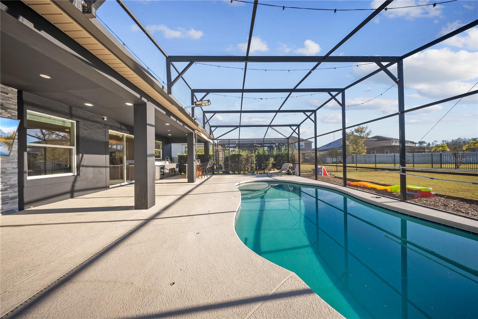Welcome to your new pool home on an oversized lot with conservation views, located in the desirable community of Randal Park in the Lake Nona area, offering privacy, style, and true Florida living. This spacious home features 4 bedrooms, 2.5 bathrooms, a flex room, and a large loft, all enhanced by over $130,000 in high-end upgrades. Upon entry, you are welcomed by a versatile flex room with elegant glass French doors, ideal for a home office, study, sitting area, or gym. The first floor showcases new laminate flooring with upgraded baseboards throughout, recessed lighting, and an open, inviting layout perfect for both everyday living and entertaining. The heart of the home is the fully remodeled gourmet kitchen, thoughtfully designed with quartz countertops, upgraded cabinetry, stainless steel appliances, a vented hood, and a spacious island with seating. The kitchen flows seamlessly into the family room and dining areas, creating a warm and functional gathering space. A beautifully remodeled half bathroom completes the main level. Upstairs, you’ll find a large open loft, perfect for a media room, playroom, or additional workspace. All bedrooms are located on the second floor, including the primary retreat featuring vaulted ceilings and a spa-inspired en-suite bathroom with dual vanities, a soaking tub, a glass-enclosed shower, and a custom remodeled walk-in closet. Secondary bedrooms are generously sized, complemented by an updated full bathroom and a remodeled laundry room for added convenience. Step outside to your private backyard oasis on an oversized lot backing to conservation, offering tranquility and privacy. Enjoy year-round outdoor living with a screen-enclosed saltwater pool, covered lanai, expansive deck, and a fully equipped outdoor kitchen, ideal for entertaining and relaxing. Additional upgrades include fresh exterior paint, a custom built-in entertainment center, and updated lighting throughout the home. Randal Park offers resort-style amenities including a clubhouse, community pool, splash pad, fitness center, walking and biking trails, dog park, and more. Conveniently located near Lake Nona Medical City, Orlando International Airport, Boxi Park, and Lake Nona Town Center, with easy access to 417 and 528. This move-in-ready home seamlessly combines modern upgrades, functional living spaces, and an unbeatable location. Schedule your private showing today.