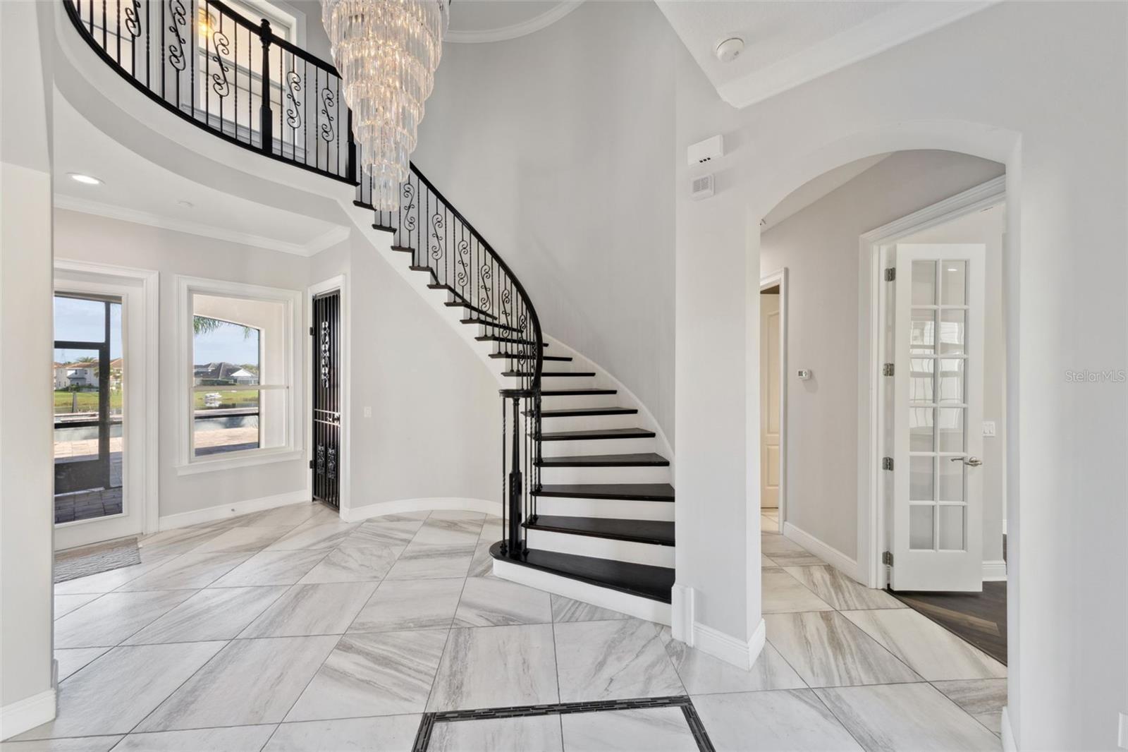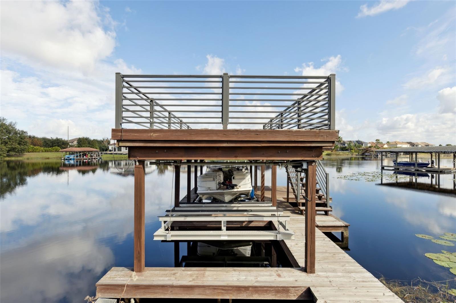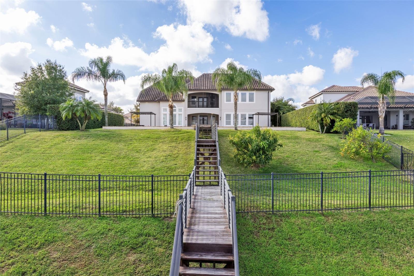 Discover luxury lakeside living with this stunning home in the Overlook at Hamlin community on Lake Hancock. This 5 bedroom, 4.5 bath residence is perfect for entertaining or relaxing in style. A private courtyard leads into the home or guest wing, which has its own entrance—ideal for visitors. The guest wing features a private bedroom and bathroom with a separate entry, providing privacy and convenience. Inside the main home, you'll find a dramatic spiral staircase and a two story open living space that looks out over Lake Hancock, the pool, and a private double-decked dock—offering all the water activities you could desire, from fishing to watersports. The open concept kitchen is a chef's dream, with granite countertops, stainless steel appliances, a gas stove, and a double sink island with a breakfast bar. Enjoy breathtaking lake views while cooking or relaxing with family and friends. The primary bedroom boasts a walk-in closet and a spacious bathroom with dual vanities, a large soaking tub, and a separate shower. Large windows throughout the home frame the stunning lake scenery, creating a peaceful and serene atmosphere. The Overlook at Hamlin community offers resort-style amenities, including a clubhouse with event space, fitness center, pool with splash pad, tennis and pickleball courts, basketball court, and a playground. Residents also enjoy a private boat ramp into Lake Hancock, making it easy to launch your watercraft and enjoy the lake whenever you desire. Located in the lively Hamlin community within Horizon West, you'll have access to a walkable lakefront town center with dining, shopping, entertainment, and events year-round. Just minutes from Walt Disney World, downtown Winter Garden, and major highways, this location makes it easy to enjoy all that Central Florida showcases. If you're seeking a luxurious lakeside lifestyle combined with community convenience and vibrant amenities, this is your perfect opportunity. Contact us today to schedule a showing!