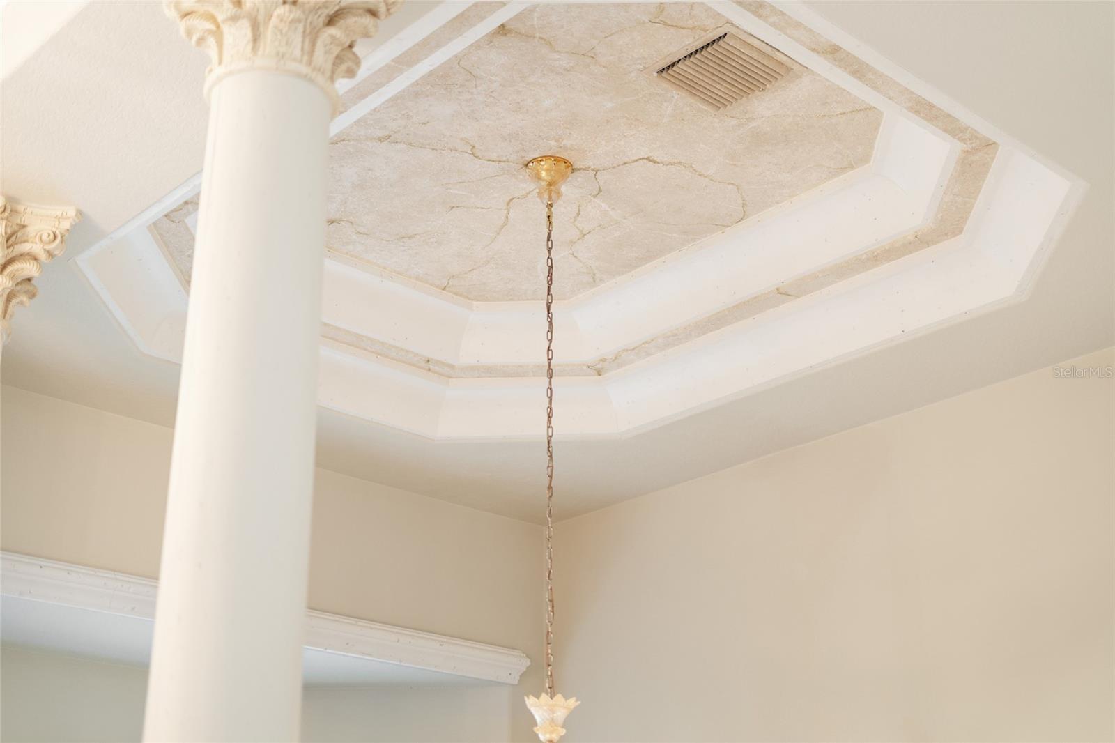 - Cathedral Ceiling(s), Ceiling Fans(s), Crown Molding, High Ceilings, Kitchen/Family Room Combo, Primary Bedroom Main Floor, Solid Wood Cabinets, Split Bedroom, Stone Counters, Tray Ceiling(s), Vaulted Ceiling(s), Walk-In Closet(s), Window Treatments
