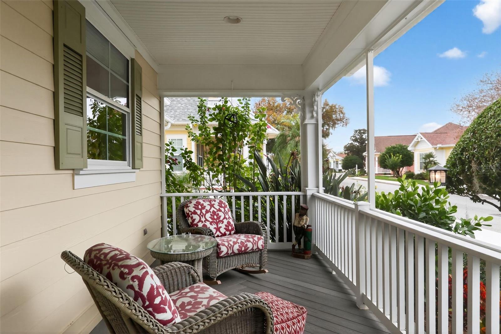 Welcome to an exceptional opportunity to own a fully furnished, turn-key luxury home in one of the most exclusive and sought-after neighborhoods in The Villages—The Lakeshore Cottages at Lake Sumter Landing. Perfectly positioned on an oversized homesite, this beautifully enhanced residence delivers elegance, comfort, and convenience in a setting designed for an elevated lifestyle. From the moment you arrive, the artfully color-coated driveway, mature landscaping, and manicured grounds create striking curb appeal. An irrigation system keeps the grounds lush year-round, while a fully paid bond (NO CDD fee!) adds long-term value and peace of mind. And yes—the golf car conveys, because life here is meant to be enjoyed with ease. This thoughtfully designed 2-bedroom, 2-bath home offers versatile living spaces that adapt effortlessly to your lifestyle. A screened front porch welcomes you home, perfect for morning coffee or evening conversation, while the wrap-around screened lanai provides a relaxing outdoor retreat for year-round enjoyment. Inside, vaulted ceilings create an open, airy feel that complements the refined finishes throughout. The gourmet kitchen is both beautiful and functional, featuring granite countertops, maple and silk/bisque cabinetry, and a gas range—ideal for anyone who loves to cook or entertain. Every detail has been carefully selected to balance style with everyday livability. Beyond the main living areas, you’ll find a den/study ideal for reading, working, or quiet reflection, along with a dedicated hobby room that opens the door to creativity, organization, or additional flex space. Whether hosting guests or enjoying a peaceful evening in, this home adapts effortlessly to every season of life. What truly sets this residence apart is its location. Lakeshore Cottages is known for its charming homes wrapped in spacious porches found nowhere else in the community, surrounded by lush landscaping and timeless architecture. The private neighborhood pool, located at the heart of the community, is the perfect place to cool off, relax, or connect with neighbors. Just around the corner, Lake Sumter Landing Market Square offers an unmatched lifestyle experience with shopping, dining, waterfront views, and nightly entertainment. From live music to waterfront strolls, everything you love about The Villages is moments from your front door. This is more than a home—it’s a refined retreat where luxury meets ease, where thoughtful enhancements elevate everyday living, and where one of the most desirable addresses in The Villages invites you to enjoy life exactly the way it was meant to be lived.