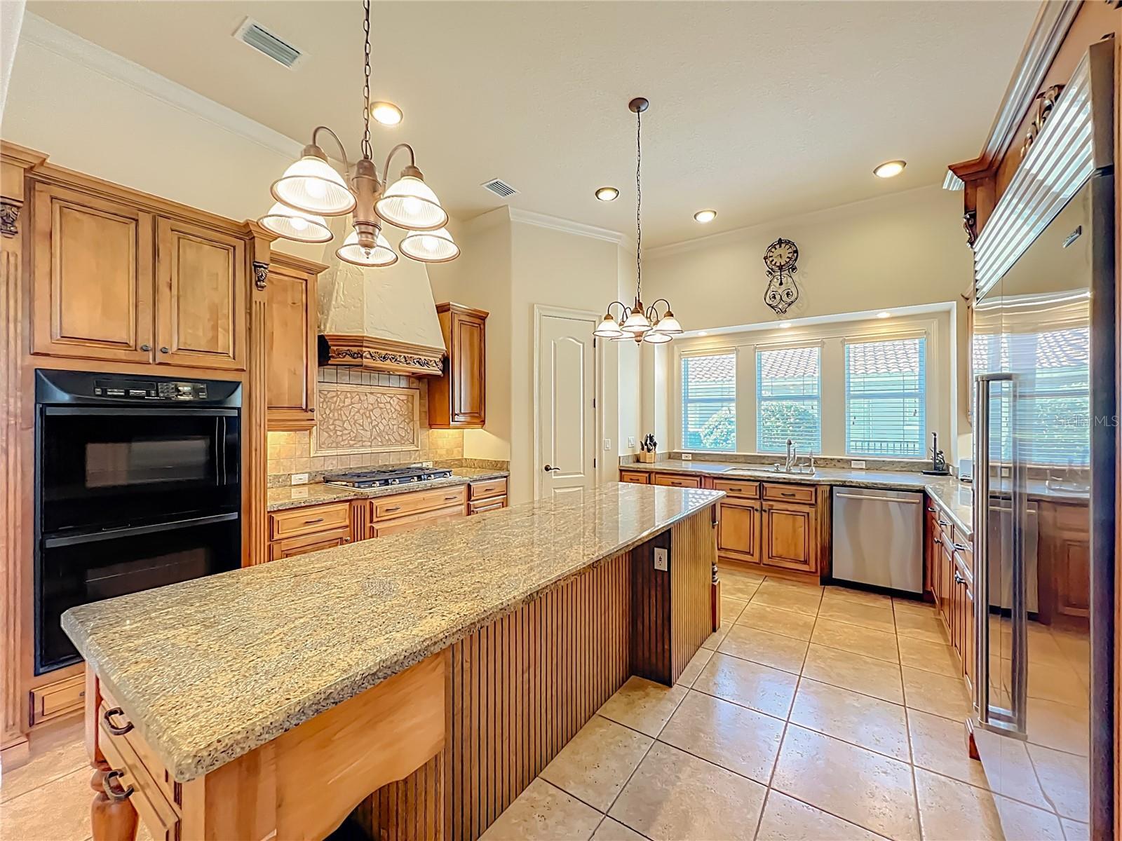- Built-in Features, Ceiling Fans(s), Coffered Ceiling(s), Crown Molding, Eat-in Kitchen, High Ceilings, Kitchen/Family Room Combo, Open Floorplan, Primary Bedroom Main Floor, Solid Surface Counters, Solid Wood Cabinets, Split Bedroom, Stone Counters, Thermostat, Tray Ceiling(s), Walk-In Closet(s), Window Treatments