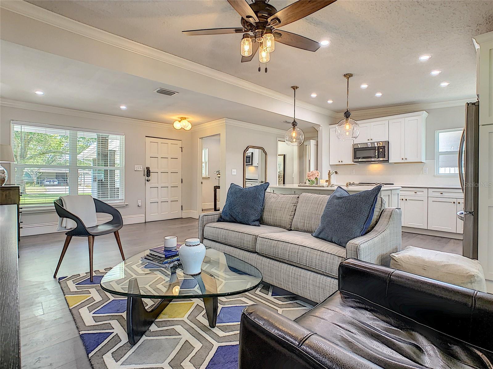 - Eat-in Kitchen, Living Room/Dining Room Combo, Open Floorplan, Stone Counters