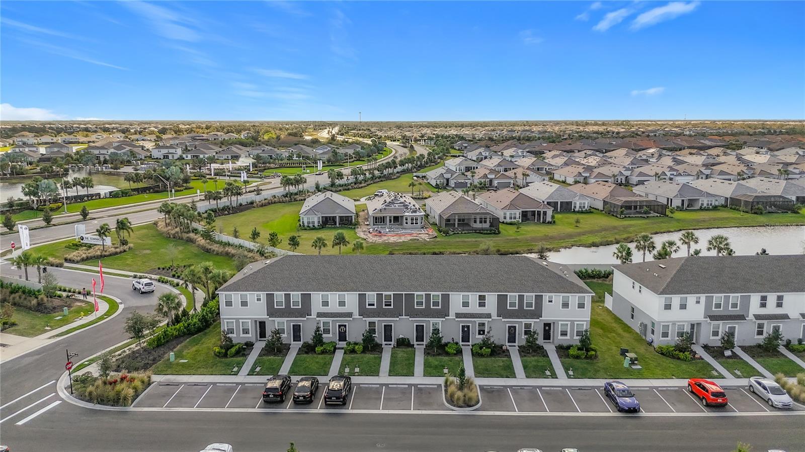 This modern and low-maintenance 2 bedroom and 2.5 bath luxury townhome rental offers everything you need – including a fully equipped kitchen with stainless steel appliances, granite countertops, and an open living area that leads to a covered lanai with peaceful water views and a private storage closet and 2 assigned parking spots right at your front door. Upstairs, you'll find two spacious bedrooms, each with its own private ensuite bathroom. The primary suite features dual vanities and a walk-in shower, while the secondary bedroom offers dual closets and a private bath – perfect for roommates, guests, or a home office setup. Laundry is conveniently located upstairs and comes with washer and dryer included. Enjoy the perks of a resort-style community with access to a pool, dog park, and maintenance-free landscaping – all included! Plus, the prime location with easy access to shopping, dining, and everything Lakewood Ranch has to offer.
