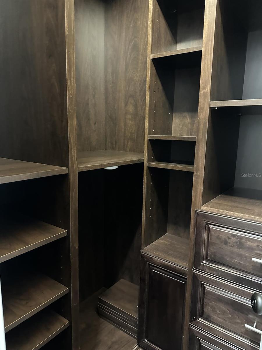 - Eat-in Kitchen, High Ceilings, Kitchen/Family Room Combo, Open Floorplan, Primary Bedroom Main Floor, Solid Surface Counters, Solid Wood Cabinets, Split Bedroom, Thermostat, Walk-In Closet(s), Window Treatments