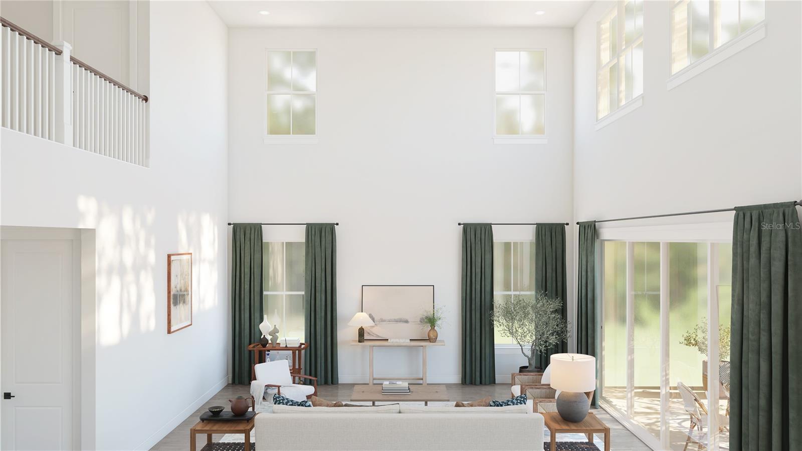 - High Ceilings, In Wall Pest System, Kitchen/Family Room Combo, Open Floorplan, PrimaryBedroom Upstairs, Solid Surface Counters, Thermostat, Tray Ceiling(s), Window Treatments