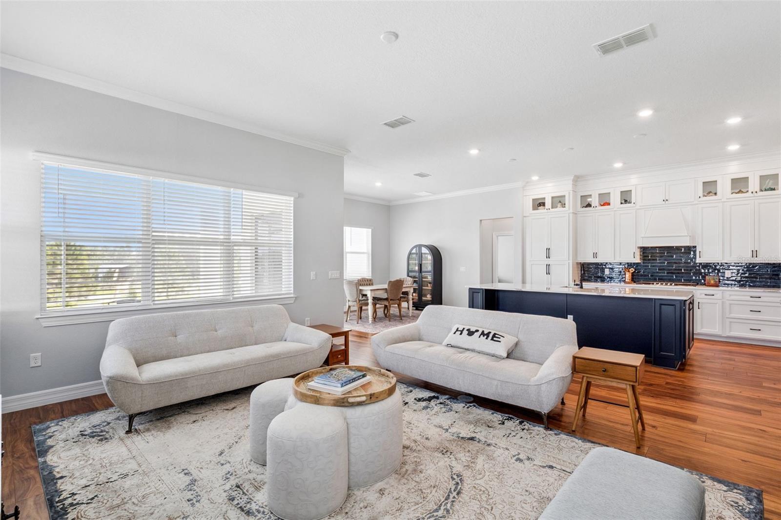 - Coffered Ceiling(s), Crown Molding, Eat-in Kitchen, High Ceilings, Open Floorplan, Stone Counters