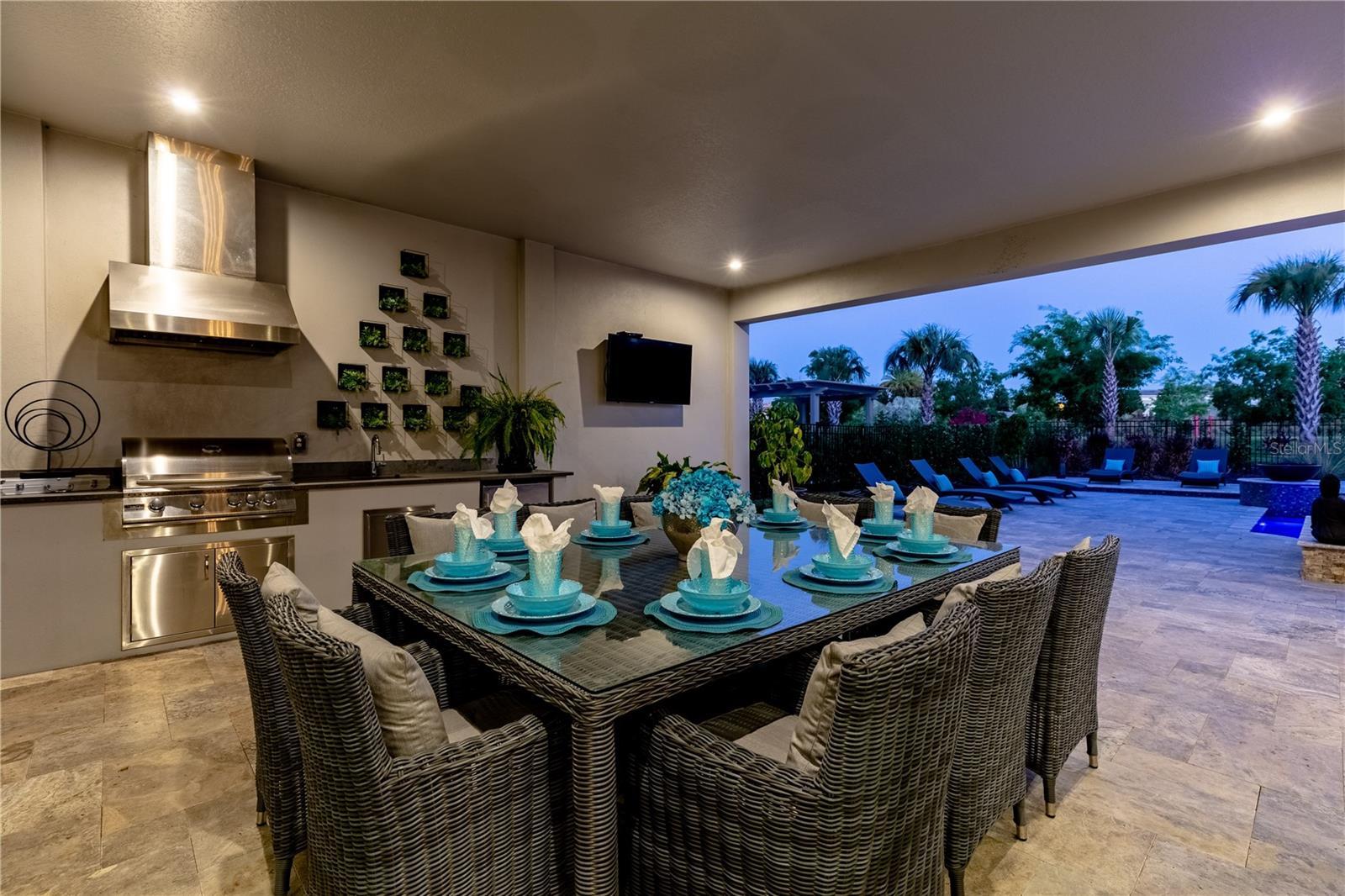 - Outdoor Kitchen, Rain Gutters, Sidewalk, Sliding Doors