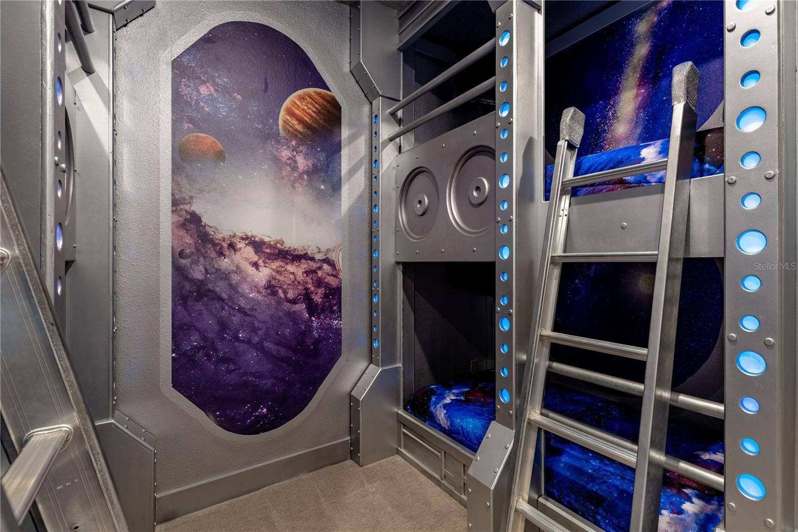 REUNION RESORT MEMBERHIP PROPERTY. Luxury, Lifestyle and Legacy are just a few of the reasons why so many choose to own and enjoy the area’s most sought after community, Reunion Resort. Now imagine combining the Lure of Reunion and the Exclusivity of the “Community within the Community” the Bears Den. The Bears Den community has its own set of amenities and consistently wow's! Welcome to 1039 Jack Nicklaus Court and the chance to be part of the magic. This is a 6 bedroom 6 and 1 ½ bath home that is the perfect for full time, part time or an investment home opportunity. The huge modern floor plan is open, airy and sprinkled with the most popular color pallet for Florida living. The kitchen is large, well equipped and features a custom double island. The windows and sliding glass doors that outline the rear of the home are designed to allow for great Natural Florida Sunshine, along with creating the perfect indoor-outdoor living space that Florida is famous for. The large outdoor space includes an extra-large, covered seating area, an outdoor kitchen space, tons of deck space for sun-lovers along with a spa and added pool features. Inside the home you will find 2 of the 6 bedrooms on the First Floor. The Primary En-Suite is large and well designed. The other bedroom is adorned with CUSTOM bunk beds and lighting, allowing its occupants that chance to imagine what it is like to sleep amongst the stars. Continued theming spills over into The GARAGE because it has been converted into your very own HOME THEATER which features a 135-inch projector screen with a 4K projector, 9.1 THX surround sound, 4K Apple TV, leather theater recliners and gaming systems. Once you make your way upstairs you will find a custom loft with entertainment and lounging space that includes a pool table. There is also a fully functioning wet bar area in the loft that is positioned perfectly. Along with the 4 additional bedrooms, 3 of which are of course en-suites, one has been transformed into an enchanted get-away to a private custom mountain village home suitable for all those looking for a little escape. This home has everything and will be sold FURNISHED and with HUGE RENTAL POTENTIAL. Reunion Resort has everything you want in a community including 3 signature golf courses, world class dining, waterparks, lazy river, water slides, firework viewing areas, tree lined streets, dog park, playground, driving range, golf simulator, member events, in-resort shuttle service, and event space. Live the resort lifestyle like a VIP. NO OTHER RESORT IN THE AREA HAS THIS!!!! Minutes to Disney and close to Beaches, Universal, Legoland and Sea World. Schedule a tour today and prepare for a lifetime of memories. 80 million visitors are estimated to visit Orlando in 2026. Current reservations for 2026 are available to convey to new owner when choosing to maintain relationship with current property manager.