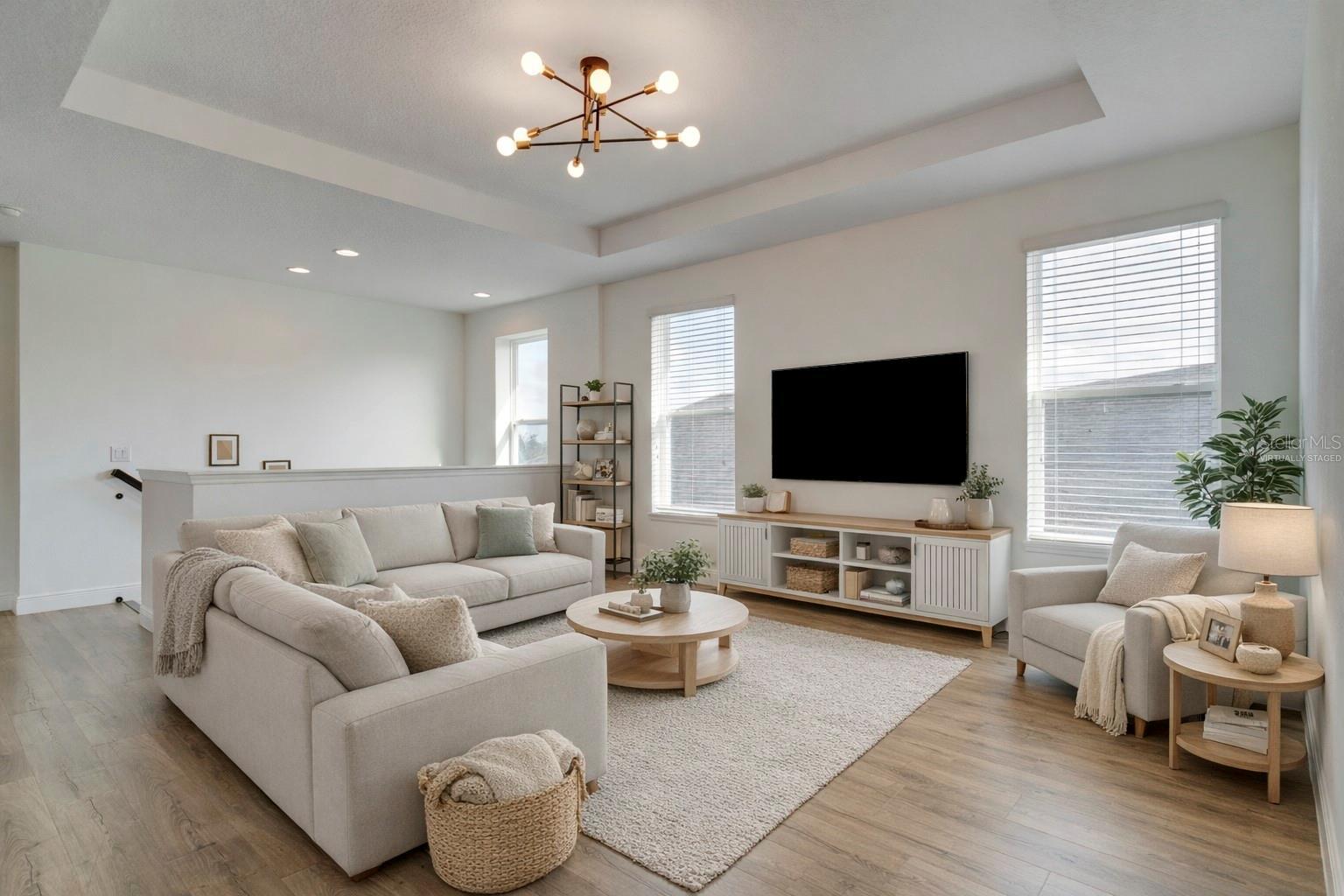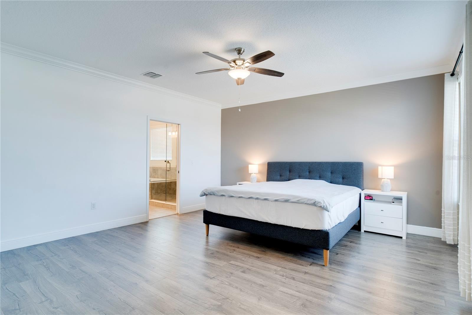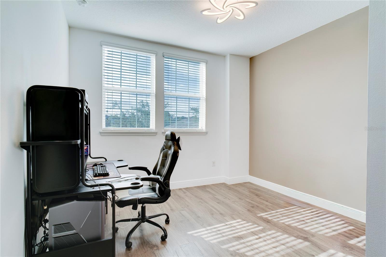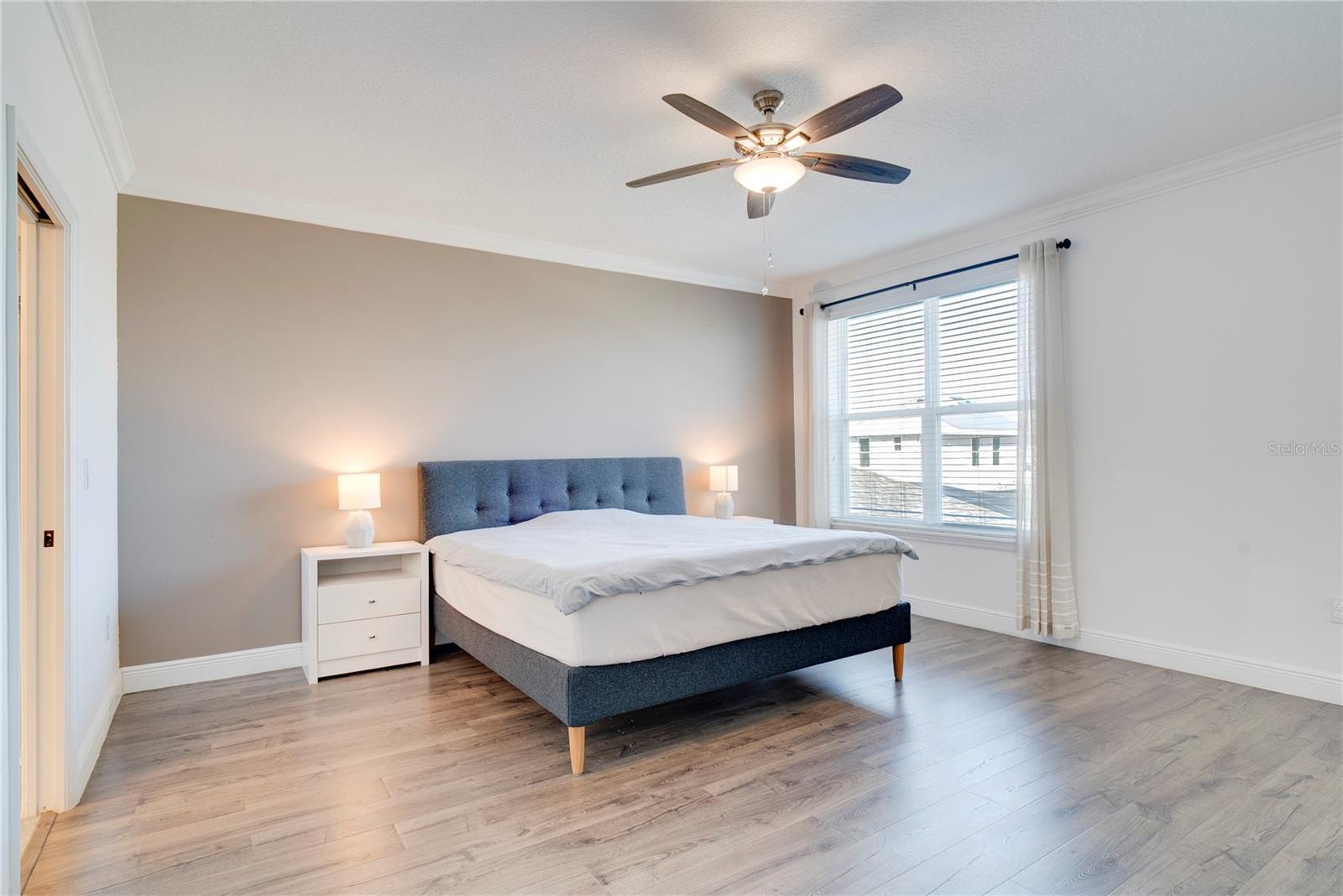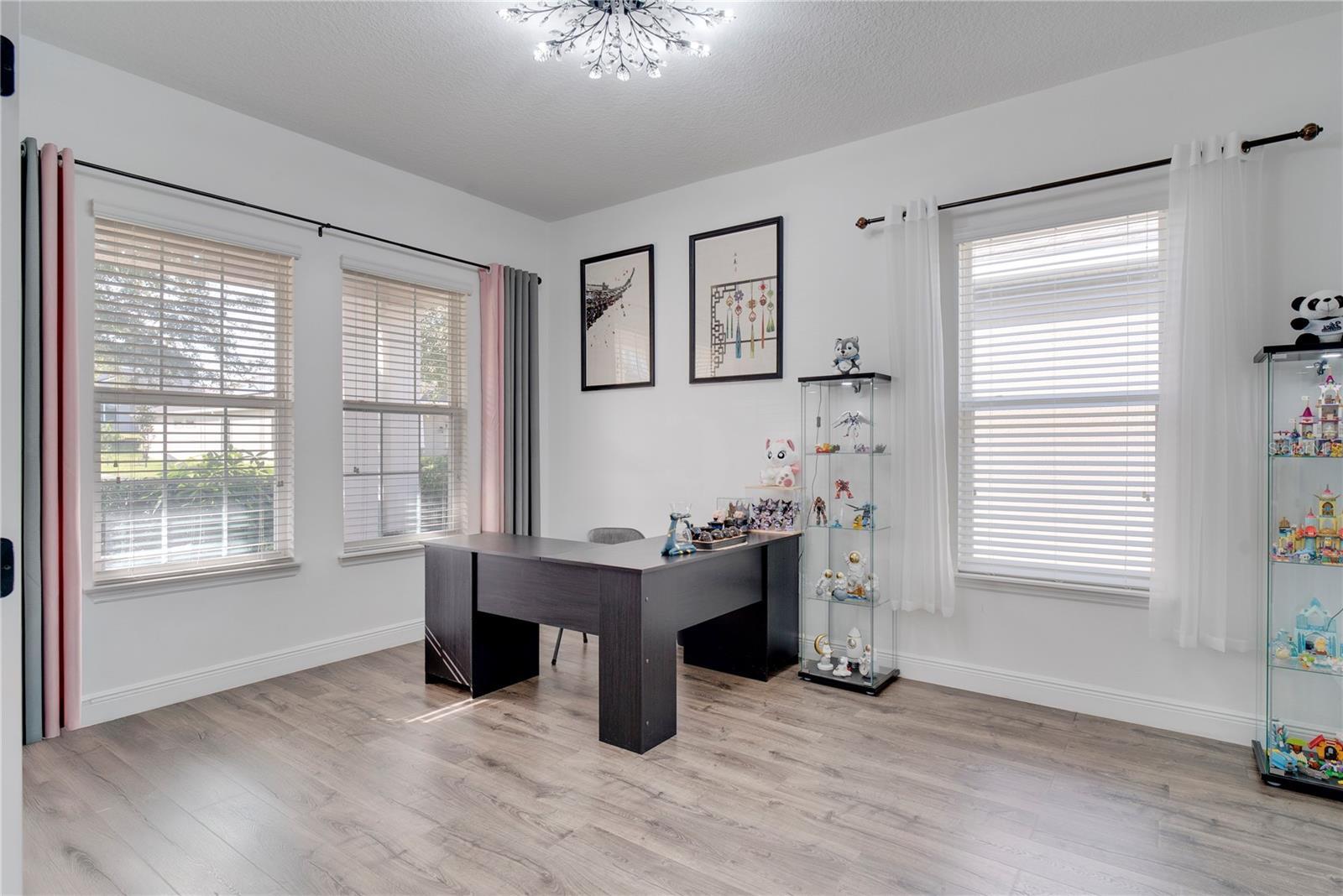 One or more photo(s) has been virtually staged. This modern, move-in ready home offers the space, flexibility, and lifestyle features that are highly sought after in today's homes. Thoughtfully designed with an open concept, abundant natural light, and a well-planned layout throughout, it features five bedrooms, 4 and a half bathrooms, and a two-car garage, providing an ideal setup for growing households, multigenerational living, remote work, and entertaining. From the moment you arrive, an upgraded front door welcomes you into a bright interior with elevated finishes. Just off the entry is a versatile flex space with French doors, currently used as a home office but easily convertible into an additional bedroom if desired. The formal dining room follows, perfect for hosting holidays and special gatherings. The heart of the home opens to a spacious living room and kitchen, highlighted by higher ceilings and an open layout that allows upstairs areas to overlook the living spaces, creating an airy, connected feel. The kitchen features a large island, gas range, ample counter space, and a spacious pantry ideal for entertaining and everyday living. The sellers love this space for hosting family gatherings, parties, and celebrations. A full bedroom and upgraded bathroom with a walk-in closet are conveniently located on the main level. Upstairs, you’ll find four generously sized bedrooms, including a private primary suite with a large bedroom and an exceptionally spacious walk-in closet. One additional upstairs bedroom features its own private bathroom and walk-in closet, while the remaining bedrooms are thoughtfully positioned for comfort and privacy. A large loft provides a perfect second living area or main room. The upstairs laundry room adds convenience, and a huge attached storage area offers plenty of space for seasonal items and bulk shopping. The sellers have invested significantly in upgrades, including new flooring throughout, high-end stair railing for a modern look, updated tile and showers, custom lighting, upgraded appliances (purchased separately), and an expanded lanai for comfortable outdoor living. Step outside to enjoy the oversized backyard, offering ample space to build a swimming pool. From both the backyard and inside the home, you’ll enjoy a truly special feature: nightly views of Disney’s Magic Kingdom fireworks. The distance is just right close enough to enjoy the magic without the noise. This home also includes a solar panel system that will be fully paid off at closing, offering long-term energy savings and added value. Located in a tight-knit community known for festive events and a neighborly atmosphere, this home is just minutes from Disney, shopping, dining, and everyday conveniences. With comfort upgrades, energy efficiency, and an unbeatable lifestyle, this home truly stands out. This home is a thoughtfully upgraded opportunity in a location that truly feels magical—inside and out.