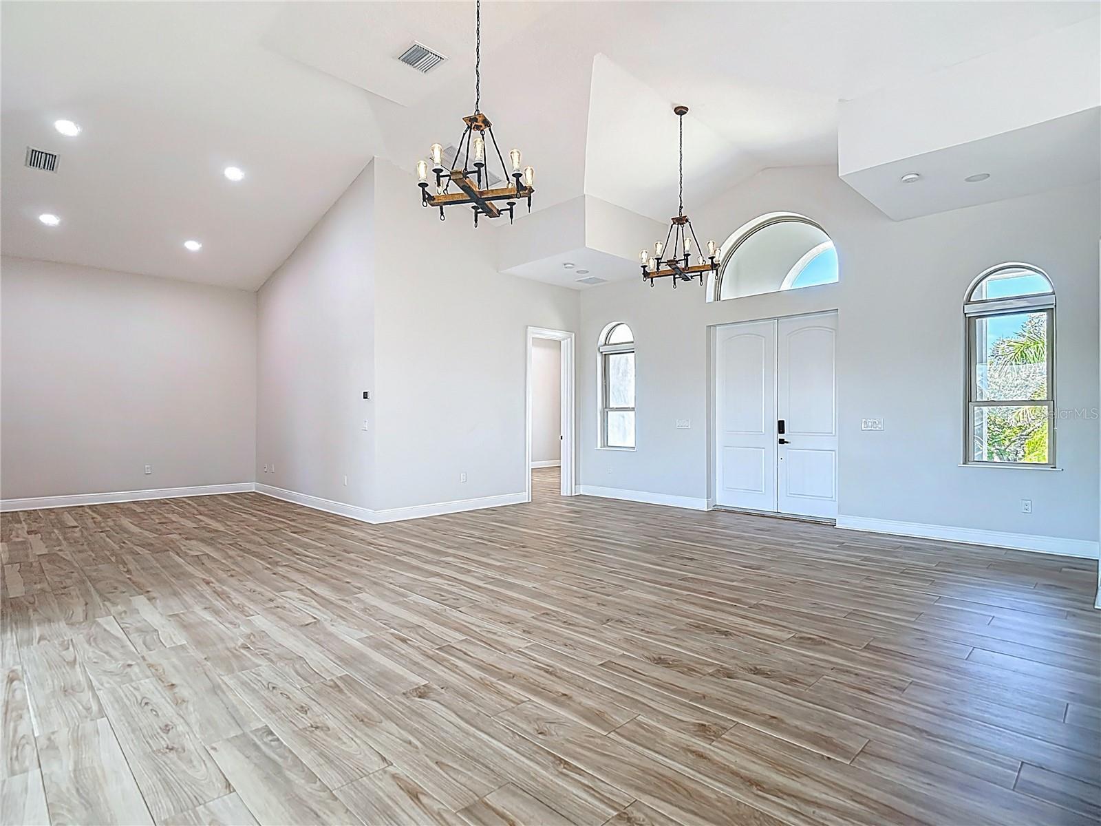 - Cathedral Ceiling(s), Ceiling Fans(s), Eat-in Kitchen, High Ceilings, Kitchen/Family Room Combo, Open Floorplan