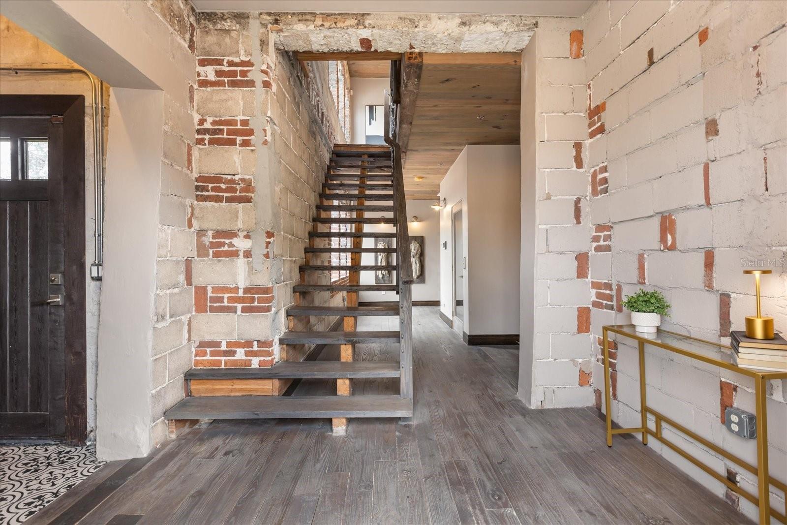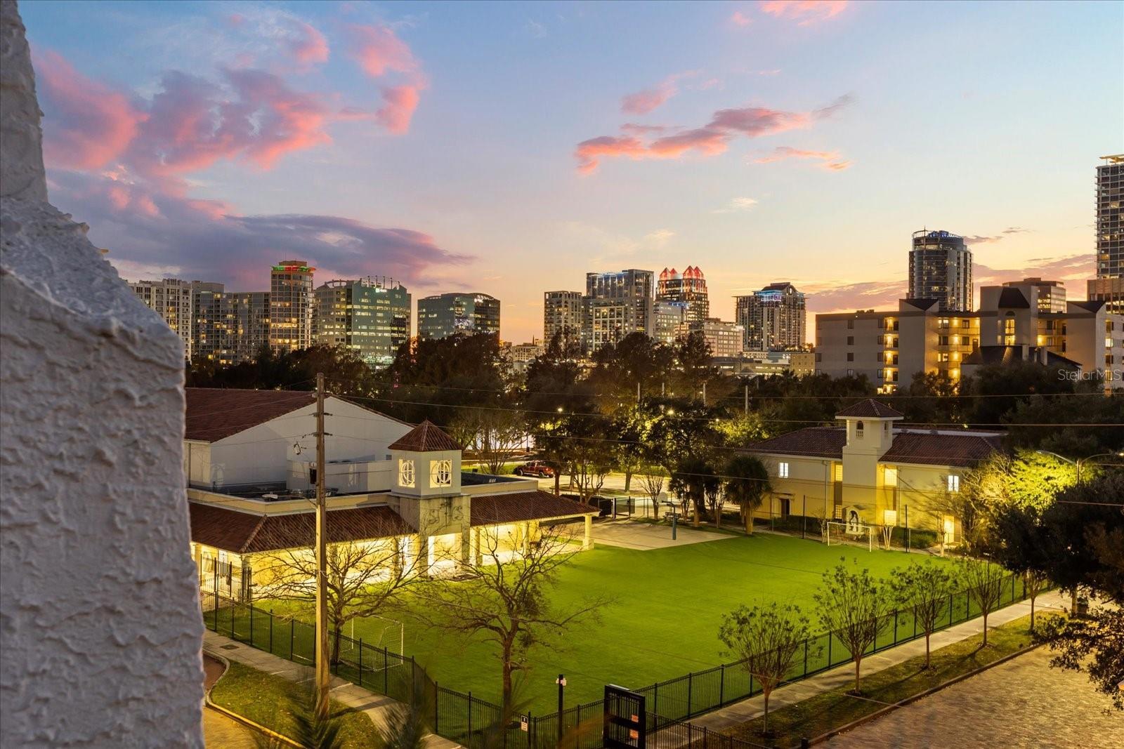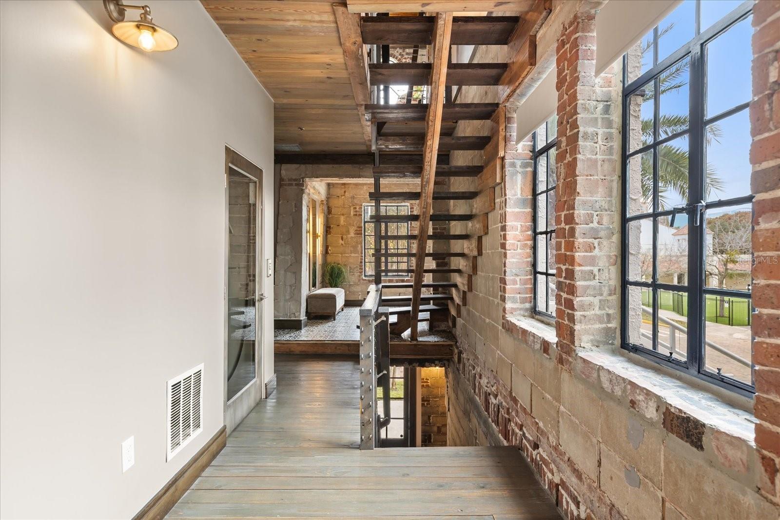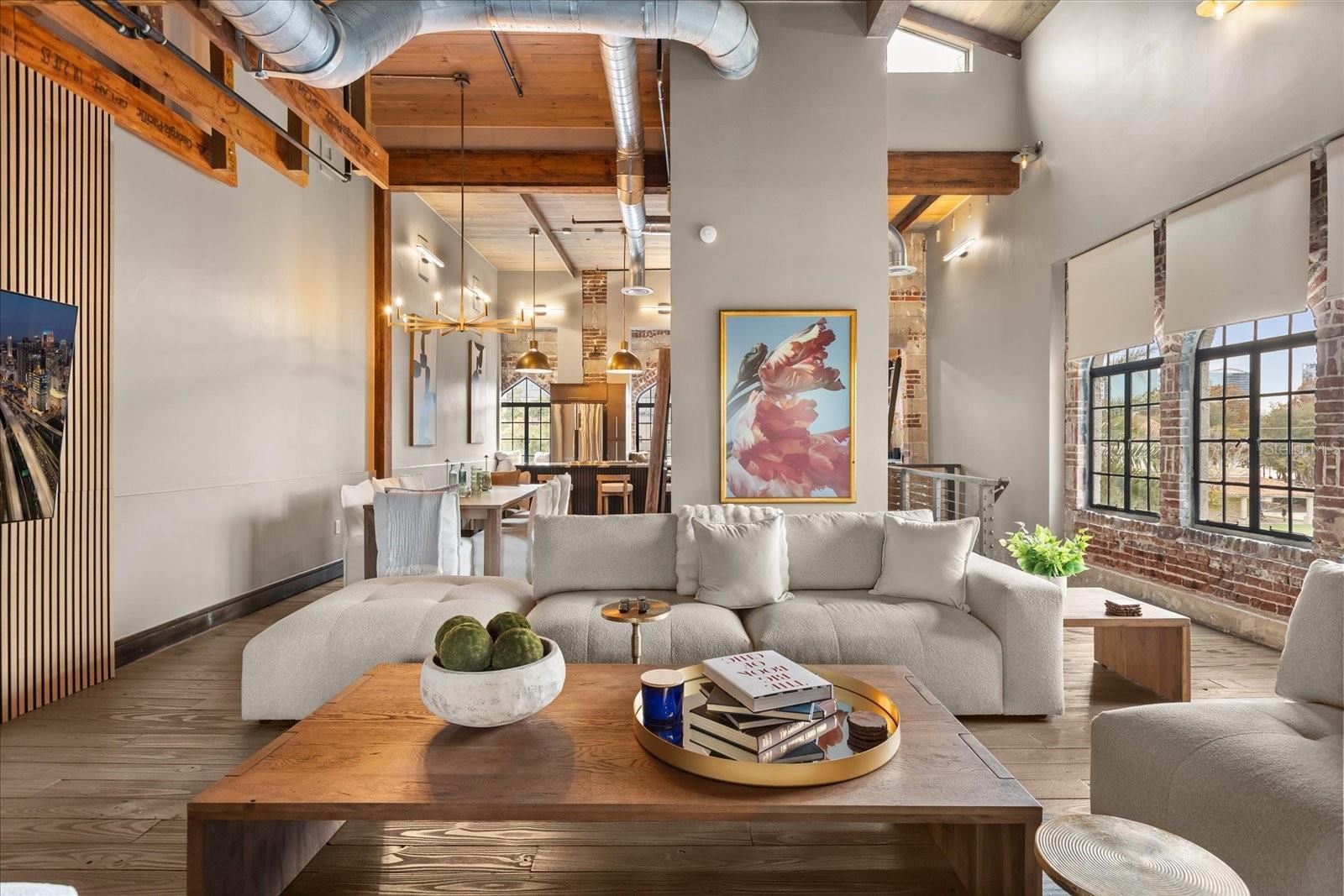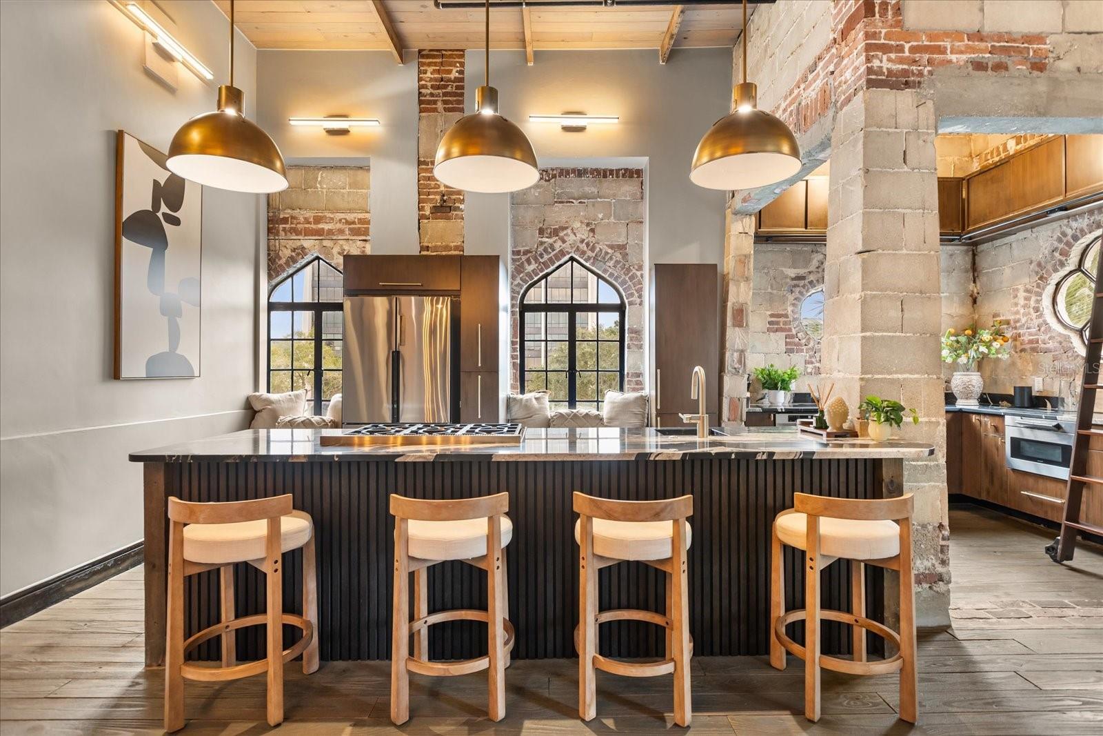 Just one block from Lake Eola Park in the heart of Downtown Orlando, this one-of-a-kind residence offers the rare opportunity to own a true piece of the city’s history. Originally built as a mission-style church in 1928, the building has been thoughtfully reimagined into a limited collection of five architecturally distinct townhomes known as The Revival. This end-unit home stands apart, with a dramatic exterior staircase leading to the original church doors, serving as a striking architectural reminder of the building’s past. Blending historic character with contemporary design in a way that feels both intentional and timeless. A private elevator connects all 4 levels of the residence, setting the tone for how seamlessly and thoughtfully the home lives from the moment you arrive. Original architectural elements—exposed brick, soaring cathedral ceilings, warm wood beams, and antique pointed steel-cased windows—tell the story of the building’s past, while designer finishes, curated lighting, and modern upgrades elevate the space for today’s lifestyle. The result is layered, refined, and unlike anything else in Downtown Orlando. The first level welcomes you with a charming entry and mudroom, along with direct access to a private backyard patio. This level also includes a flexible bedroom suite, ideal for guests or a private office, complete with its own en-suite bath and separate entrance. On the second floor, two additional en-suite bedrooms provide comfort and privacy, including a spacious primary suite featuring a beautifully appointed bath, generous counter space, and a walk-in closet with custom built-ins. The third floor anchors the home with an open-concept kitchen, featuring a substantial island with breakfast bar, seamlessly blending into the dining and living areas for effortless entertaining. A dramatic spiral staircase leads to a lofted overlook, perfect for a home office or second living area, with stairs up to a wet bar with access to the rooftop terrace, where panoramic Downtown Orlando skyline views create a truly unforgettable backdrop. From morning light streaming through historic windows to evenings spent watching Lake Eola’s fireworks from above the city, this is a home meant to be experienced—not just seen. Unforgettable sunsets, glowing city lights, and seasonal celebrations become part of everyday life here. Additional features include a large laundry room with ample storage, and a tandem two-car garage. This residence offers walkable access to dining, shopping, entertainment and cultural destinations—while delivering a living experience that is truly rare. This is not simply a home, but a thoughtfully reimagined piece of Orlando history. Come experience it for yourself. You won’t be disappointed!
