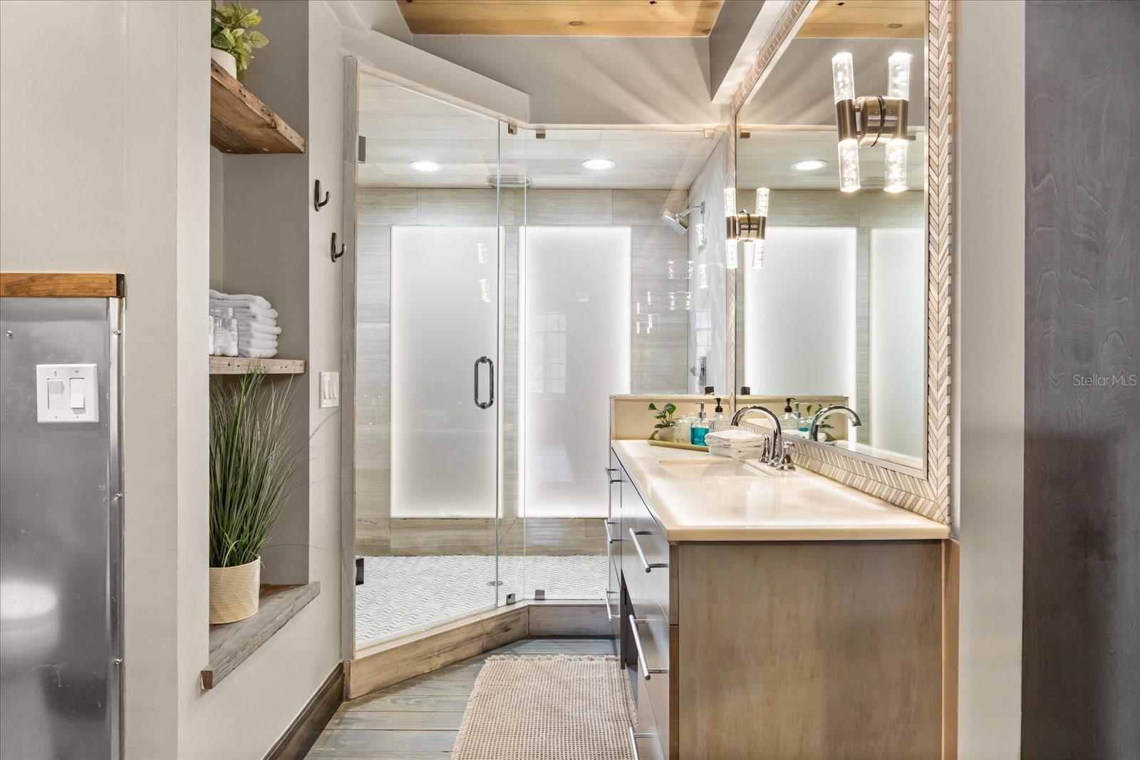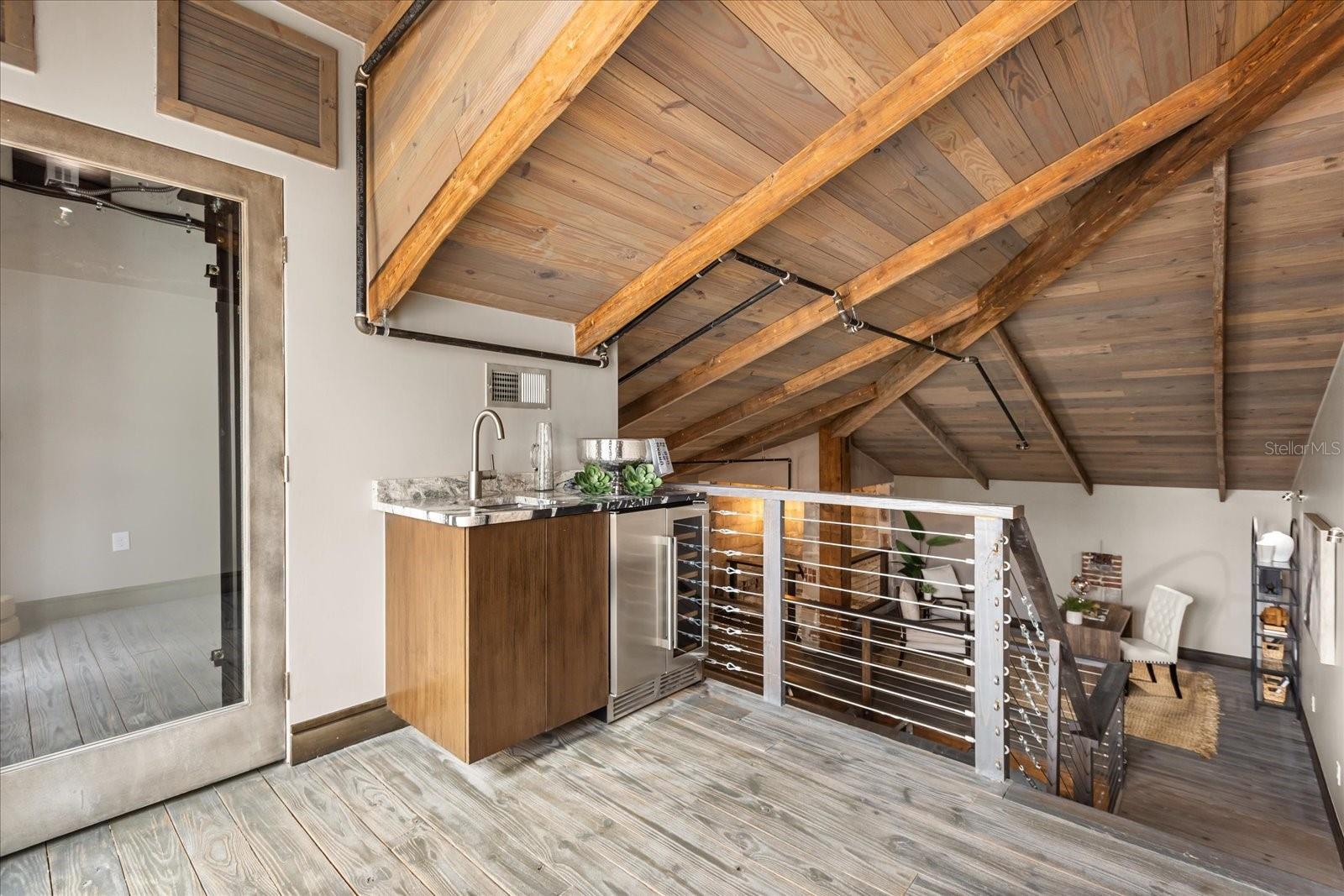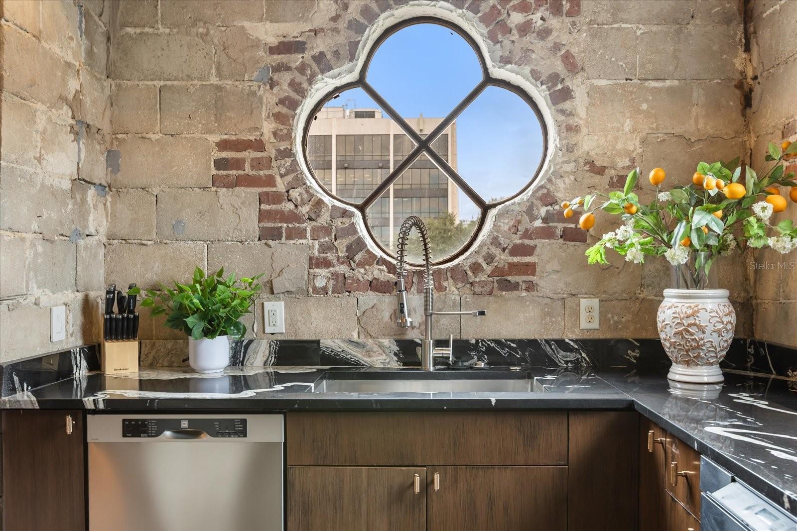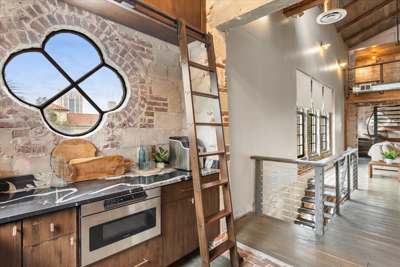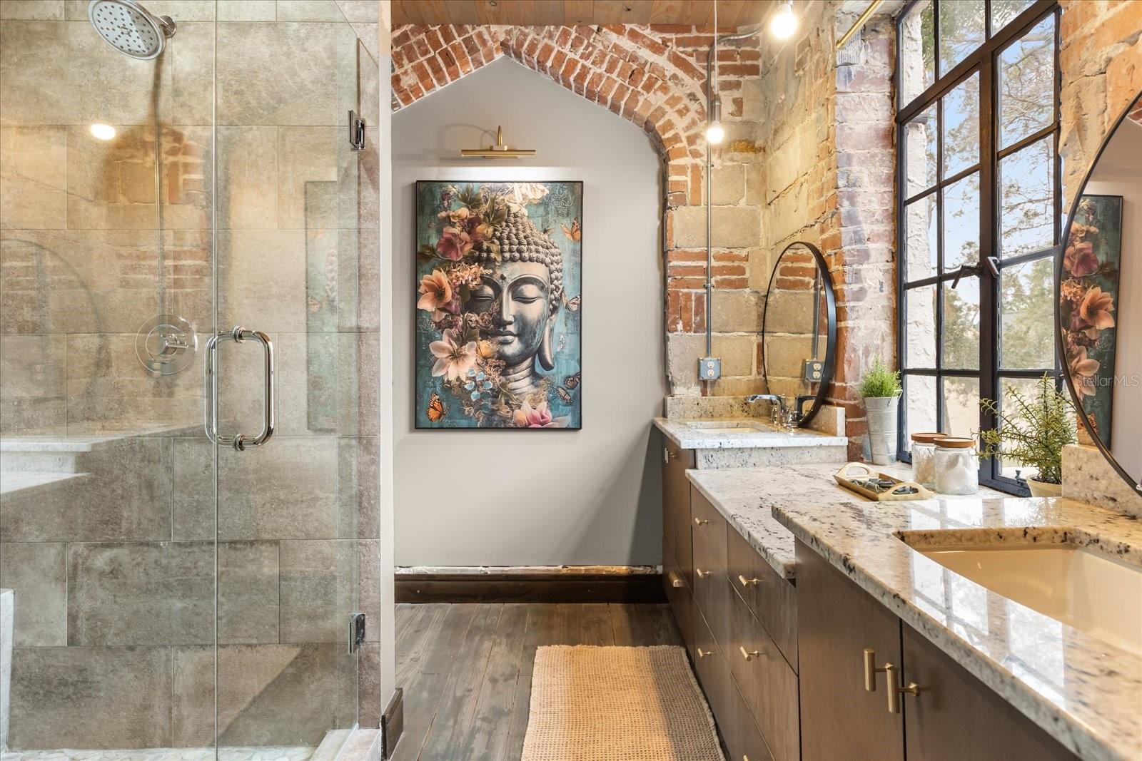 Just one block from Lake Eola Park in the heart of Downtown Orlando, this one-of-a-kind residence offers the rare opportunity to own a true piece of the city’s history. Originally built as a mission-style church in 1928, the building has been thoughtfully reimagined into a limited collection of five architecturally distinct townhomes known as The Revival. This end-unit home stands apart, with a dramatic exterior staircase leading to the original church doors, serving as a striking architectural reminder of the building’s past. Blending historic character with contemporary design in a way that feels both intentional and timeless. A private elevator connects all 4 levels of the residence, setting the tone for how seamlessly and thoughtfully the home lives from the moment you arrive. Original architectural elements—exposed brick, soaring cathedral ceilings, warm wood beams, and antique pointed steel-cased windows—tell the story of the building’s past, while designer finishes, curated lighting, and modern upgrades elevate the space for today’s lifestyle. The result is layered, refined, and unlike anything else in Downtown Orlando. The first level welcomes you with a charming entry and mudroom, along with direct access to a private backyard patio. This level also includes a flexible bedroom suite, ideal for guests or a private office, complete with its own en-suite bath and separate entrance. On the second floor, two additional en-suite bedrooms provide comfort and privacy, including a spacious primary suite featuring a beautifully appointed bath, generous counter space, and a walk-in closet with custom built-ins. The third floor anchors the home with an open-concept kitchen, featuring a substantial island with breakfast bar, seamlessly blending into the dining and living areas for effortless entertaining. A dramatic spiral staircase leads to a lofted overlook, perfect for a home office or second living area, with stairs up to a wet bar with access to the rooftop terrace, where panoramic Downtown Orlando skyline views create a truly unforgettable backdrop. From morning light streaming through historic windows to evenings spent watching Lake Eola’s fireworks from above the city, this is a home meant to be experienced—not just seen. Unforgettable sunsets, glowing city lights, and seasonal celebrations become part of everyday life here. Additional features include a large laundry room with ample storage, and a tandem two-car garage. This residence offers walkable access to dining, shopping, entertainment and cultural destinations—while delivering a living experience that is truly rare. This is not simply a home, but a thoughtfully reimagined piece of Orlando history. Come experience it for yourself. You won’t be disappointed!