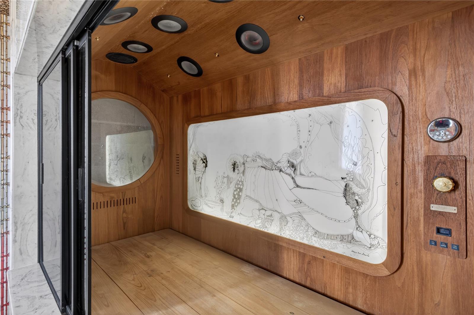 - Built-in Features, Dry Bar, Eat-in Kitchen, Elevator, High Ceilings, Open Floorplan, Other, Primary Bedroom Main Floor, Sauna, Solid Surface Counters, Split Bedroom, Thermostat, Tray Ceiling(s), Walk-In Closet(s)