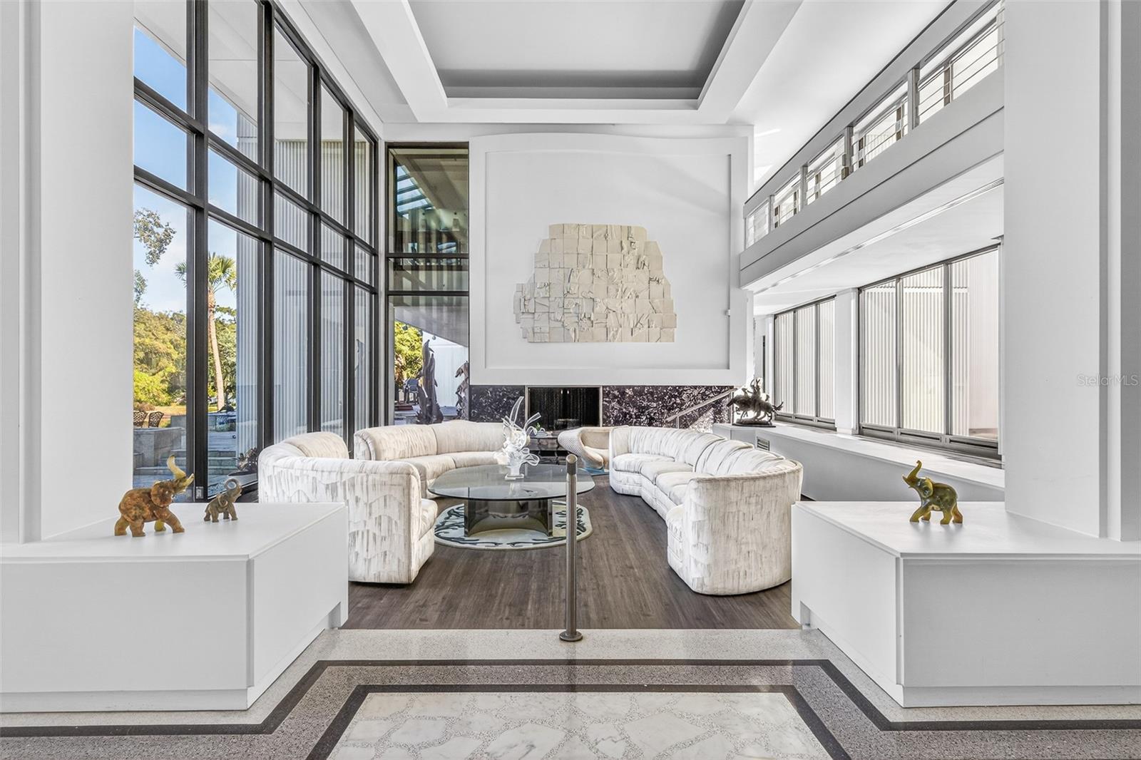 One or more photo(s) has been virtually staged. Presenting The Fortress, a one of a kind architectural masterpiece created for those who understand that true luxury is not styled but built to endure and remain irreplaceable. Designed and constructed over 7 years by the world renowned architectural firm HHCP for Harold Mertz, billionaire founder of Publishers Clearing House, this nearly 20000 square foot private compound has hosted presidents, global dignitaries, private concerts, and philanthropic gatherings of the highest caliber. Set on nearly 12 acres of absolute privacy and approached by a quarter mile tree lined driveway, the fully walled estate centers around a 5 acre private lake spring fed by the Wekiva Springs State Park, surrounded by museum quality grounds featuring imported European fountains, life size bronze sculptures, curated statuary all across the gardens, and ornamental ponds suitable for koi fish. The main residence spans 14623 square feet and offers 7 bedrooms each with its own full bathroom, along with an elegant powder room by the main entrance, formal living and dining rooms, a breakfast room, a main kitchen, and a separate staff kitchen. Constructed of solid poured concrete, the home reflects permanence and security with bulletproof glass, hand plastered walls, soaring 25 foot ceilings, graceful arches, and signature fluted architectural textures expressed through curved nonlinear walls. A massive custom bronze door opens to interiors finished in polished marble and terrazzo flooring, including brand new floors in the main living room and kitchen, which features panoramic lake views, an oversized island, oversized pantry, private service entrance, and a fully equipped staff kitchen with its own dining area. Four bedrooms are located upstairs with the most impressive lake views and three bedrooms downstairs, while a monumental round atrium crowns the sculptural marble staircase that took 2 full years to complete. Additional highlights include a dramatic 2 story library that converts into a home theater, a glass conservatory with a Murano chandelier designed for a grand piano, an elevator near the foyer, 2 authentic wood burning fireplaces, custom Sherle Wagner bathrooms, hidden closets throughout, and a bar near the piano room. The West wing principal suite features a private Italian inspired alfresco patio and an adjacent private gym with a full bathroom, sauna, and walk in closet, creating a self contained wellness retreat, while the East wing suite enjoys its own Italian inspired patio. The estate is completed by an approximately 2500 square foot guest and pool house with 2 bedrooms and 2 full bathrooms, staff quarters of approximately 1000 square feet, a 2300 square feet 8 car garage with full bath, laundry, and storage, along with resort style amenities including a pool and spa, a professional court lined for tennis and pickleball, a Hot Tub, sandy beach access, and multiple alfresco entertaining areas, this home has countless custom invaluable features, making The Fortress a true legacy estate built to stand for the next century and beyond. Conveniently located near top rated schools, 2 miles away from Wekiva Springs Park, leading hospitals, Golf Courses and an array of elevated dining experiences, offering effortless access to education, healthcare, and refined lifestyle amenities while preserving privacy and exclusivity. Private showings are offered by appointment only.