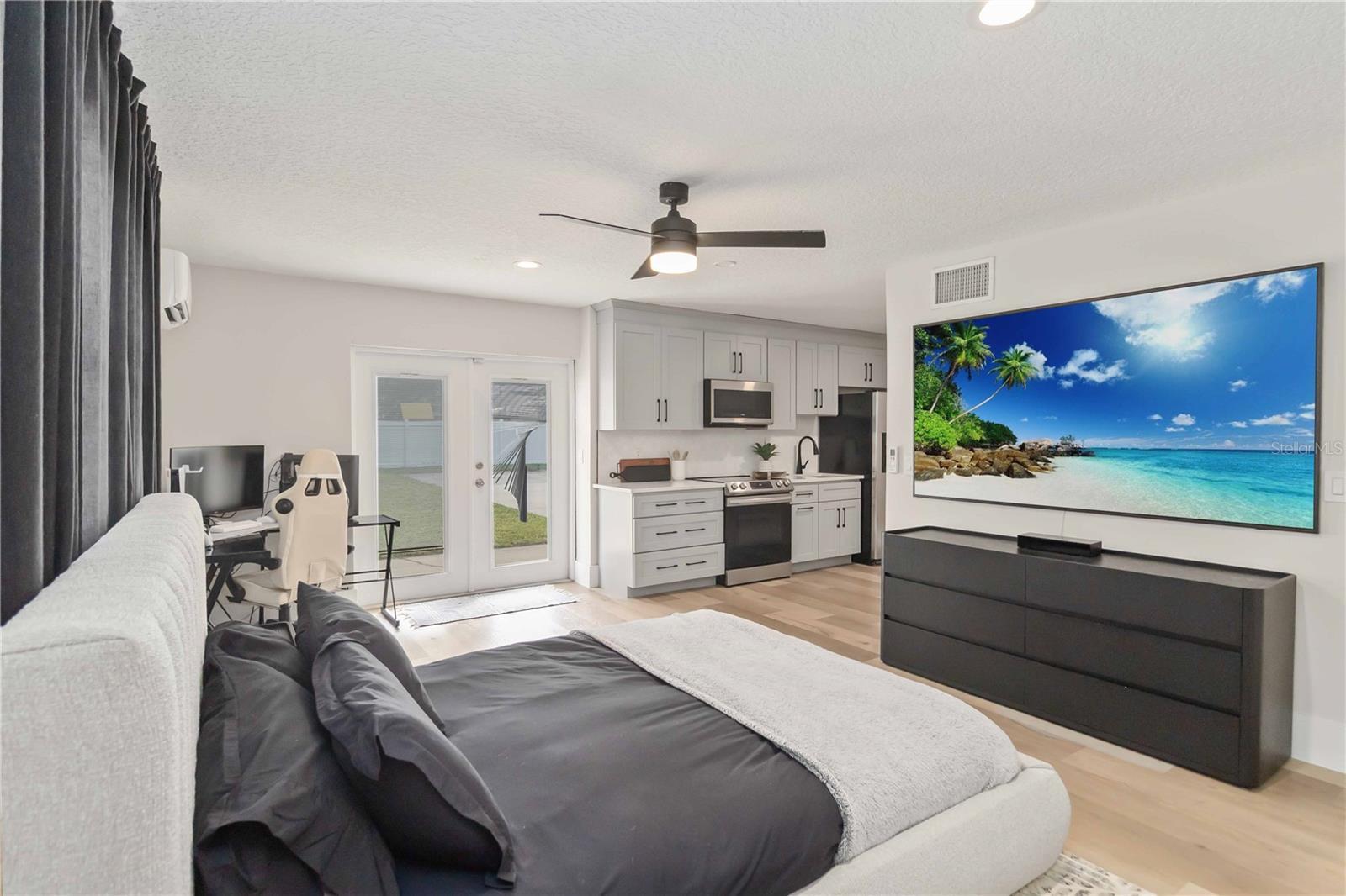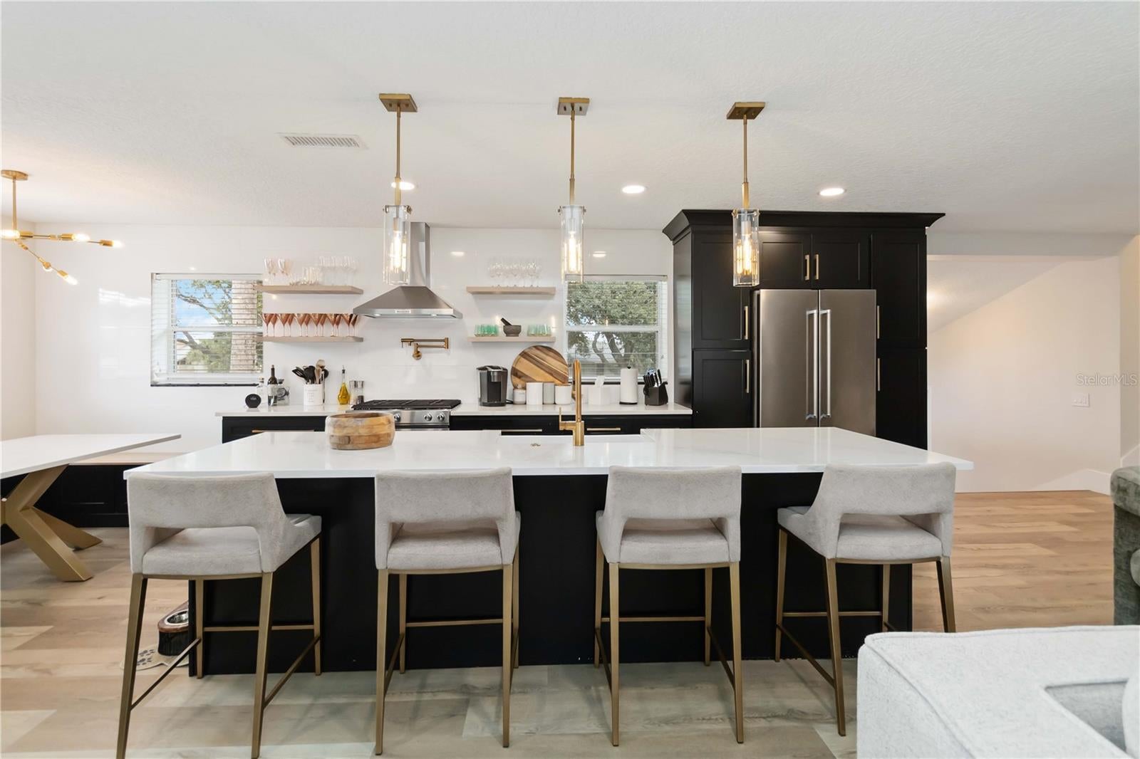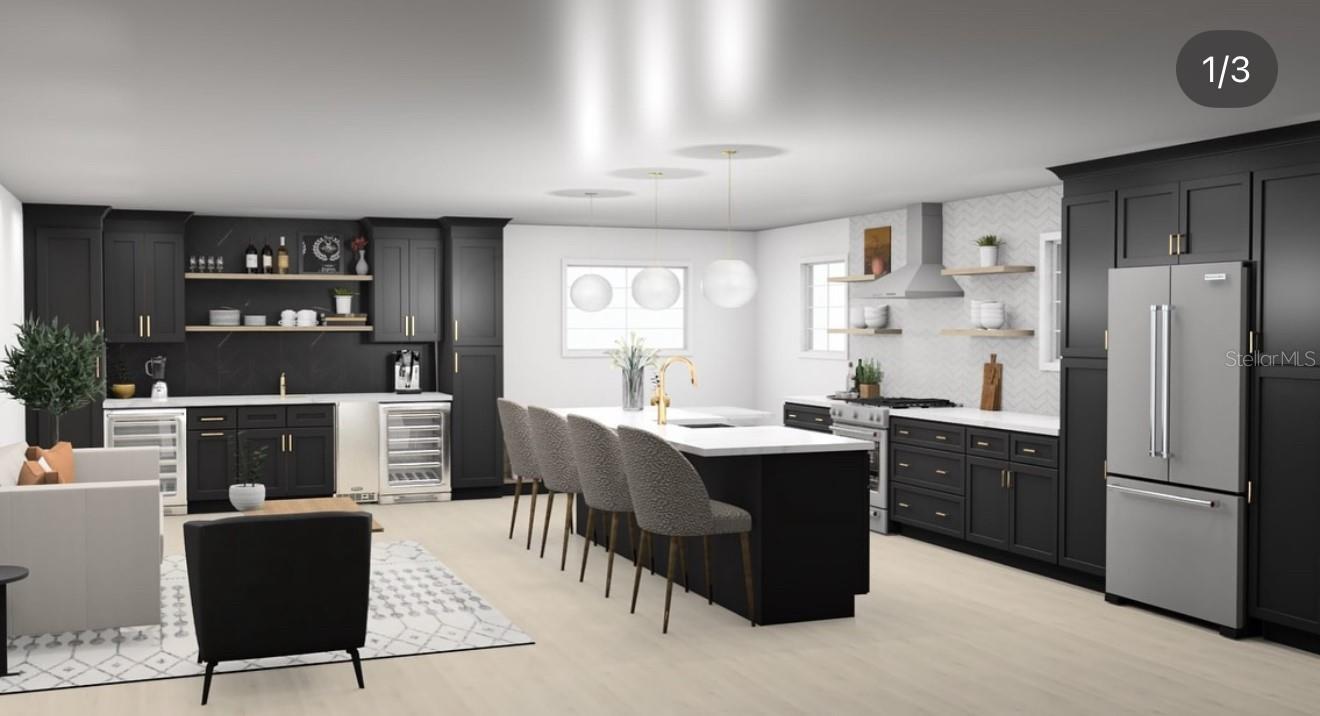 Location, Location, Location!!! This beautifully updated 5-bedroom, 3-bath tri-level residence is ideally situated in the heart of Dr. Phillips, within a welcoming, family-friendly neighborhood. Thoughtfully renovated throughout, the home offers a perfect blend of modern comfort and functional living. Designed with intention- the light-filled interior showcases an open floor plan, fully updated kitchen, stylish new light fixtures, luxury vinyl flooring and fresh interior paint. No details were missed! The kitchen features sleek black cabinetry with soft close doors & drawers, open shelving, brass hardware, a white porcelain farm house sink and a beautiful quartz countertop with island seating for four. Additional upgrades include: Kitchenaid appliances, Moen touchless brass faucet and Moen brass pot filler and a 30" gas range. Just off the kitchen is a built in breakfast nook with cabinetry that offers additional storage. A private mother-in-law suite provides flexible living options, ideal for guests, extended family, or a home office retreat. Located on the main level, guests may enter the MIL Suite through the private entrance. The fully functioning kitchenette features a full size fridge, stove, oven, microwave and sink. A built in closet and en suite bathroom complete this perfect setup with additional living space for an exterior lounge just outside of the sliding door. The master suite and guest bedrooms are located on the third floor. Master bedroom features a built in closet, walk in shower, floating vanity and stand alone tub. Each bedroom has upgraded built in closets. Guest bathroom upstairs includes a walk in shower, modern floating vanity, quartz countertops and black fixtures. Recent improvements include a newly replaced roof, A/C system and mini split, fresh interior & exterior paint, luxury vinyl flooring, kitchen and bathrooms, 7" modern baseboards, lighting & plumbing fixtures, additional paved driveway space, extended fence, sliding doors, deck and much more! The spacious two-car garage features a sleek epoxy floor finish and washer & dryer with entrances from both the main house & mother in law suite. The backyard is truly exceptional— the oversized lot is highlighted by a half-size basketball court and enclosed with white vinyl fencing, creating a private and impressive outdoor setting. The pavers extend to the backyard for additional storage for a boat, RV or an alternative outdoor living space. With plenty of room to add a playground, pool or a shed for additional storage. An additional entertaining space has been added in the front with a paved seating area and firepit. No HOA. Located less than one mile from the YMCA, Dr. Phillips Elementary, Southwest Middle School and Dr. Phillips High School and under two miles from Orlando’s renowned Restaurant Row, this home offers unmatched convenience, space, and lifestyle appeal. Meticulously maintained and move-in ready—schedule your private showing today.