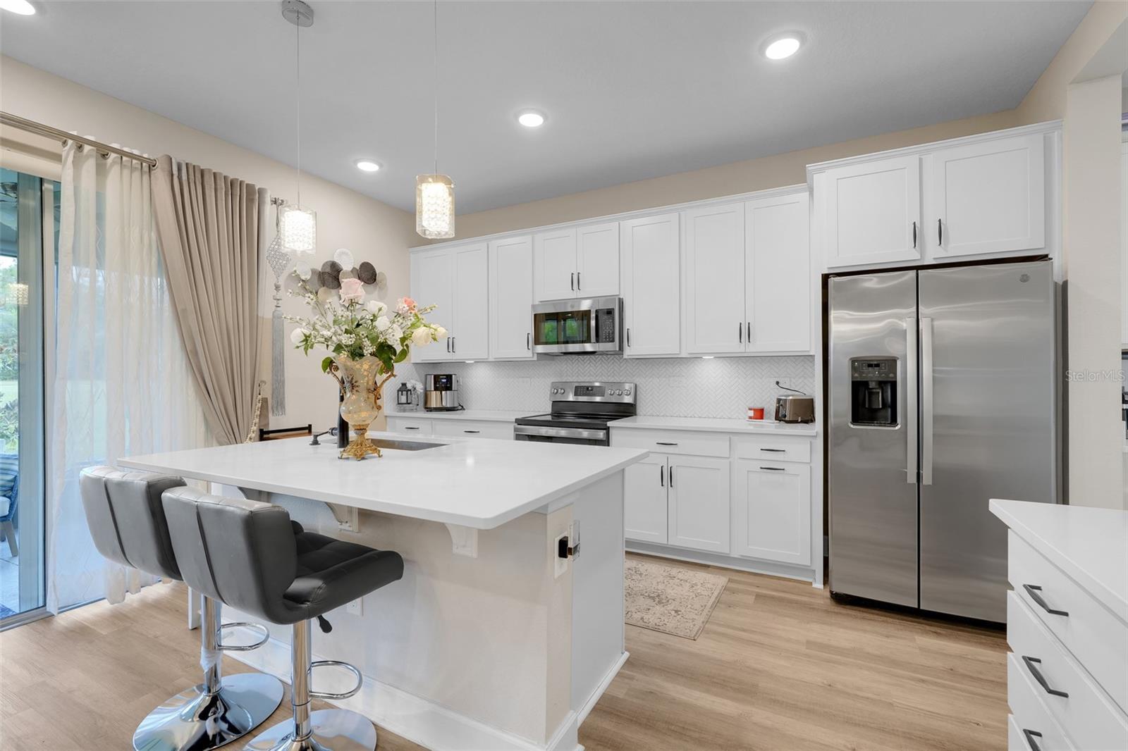 Welcome to this stunning 2023-built, 3,210 sq ft MULTI-GENERATIONAL home located in the highly sought-after Palisades community in Clermont. This thoughtfully designed home offers 4 BEDROOMS, 3.5 BATHROOMS, PLUS 2 BONUS ROOMS, and is perfectly positioned with front-facing POND and CONSERVATION views, a charming front porch, and a peaceful natural setting. Step inside to a bright, open floor plan filled with natural light and modern finishes throughout. The heart of the home is the GOURMET KITCHEN featuring quartz countertops, stainless steel appliances, 42" upper cabinets, a BUTLER’S PANTRY, and a large center island that opens seamlessly to the family and dining areas — ideal for everyday living and entertaining. The home includes a PRIVATE FIRST-FLOOR SUITE with a full bath, perfect for guests, extended family, or a home office. Upstairs, the spacious OWNER’S SUITE offers a spa-inspired bathroom and a large walk-in closet, along with two additional bedrooms (each with walk-in closets), a full bath, an OVERSIZED LOFT (ideal for a home office, gym, media room, flex space, or potential 5th bedroom), and a conveniently located laundry room. Enjoy outdoor living with a covered patio in the backyard — perfect for relaxing or entertaining — and take in serene pond and conservation views from the inviting front porch. Residents of Palisades enjoy RESORT-STYLE AMENITIES including a community pool, clubhouse, tennis, pickleball and basketball courts, lakefront playground, private boat ramp with access to Lake Minneola, golf cart trails, boating, fishing, and picnic areas. HOA dues include fiber-optic internet and basic cable. Conveniently located just minutes from Historic Downtown Clermont, AdventHealth, shopping, dining, and with easy access to the Florida Turnpike — and an easy drive to Orlando, theme parks, and Florida’s beautiful beaches. This home offers the perfect combination of space, flexibility, privacy, and lifestyle — truly a must-see!
