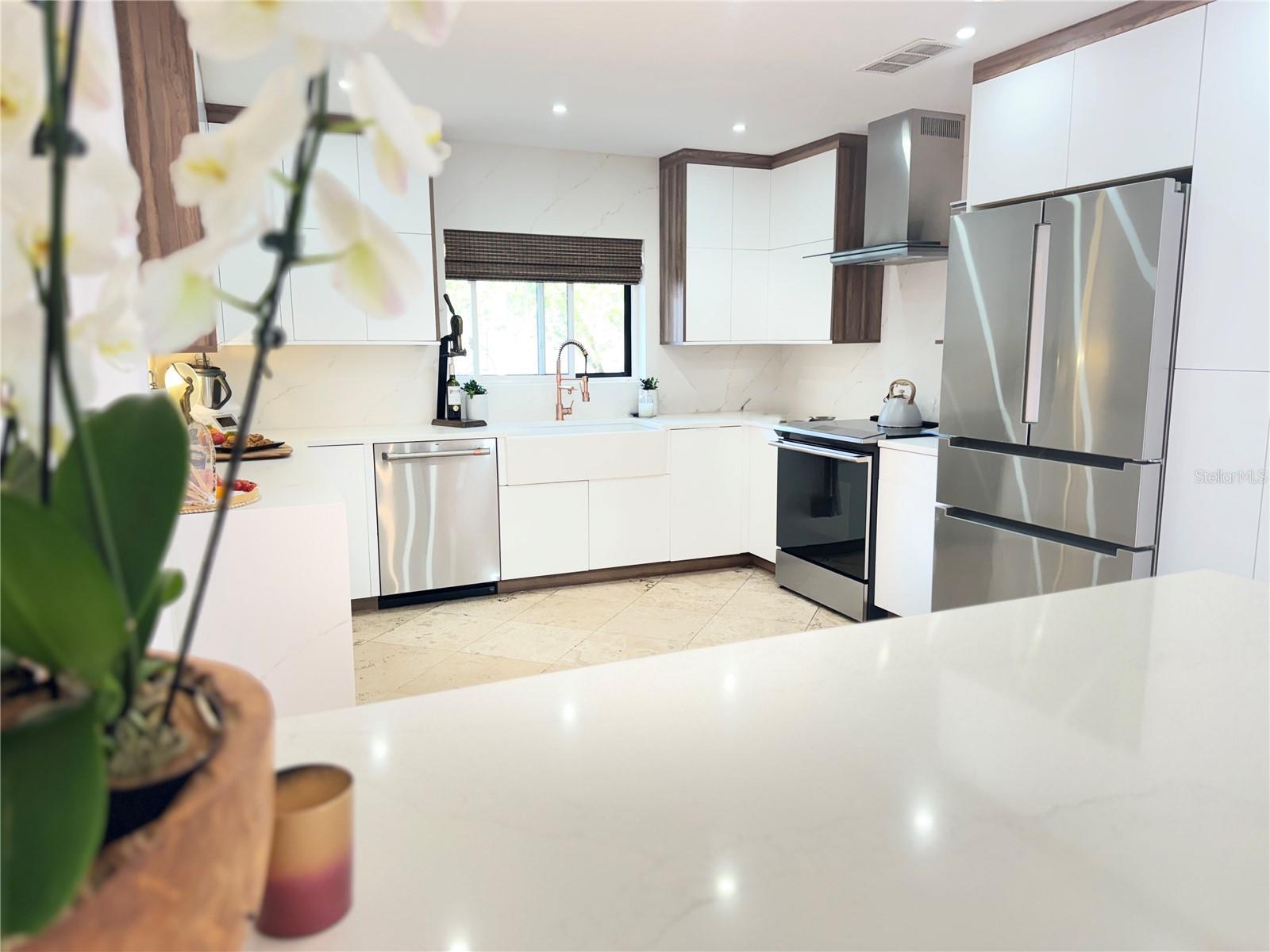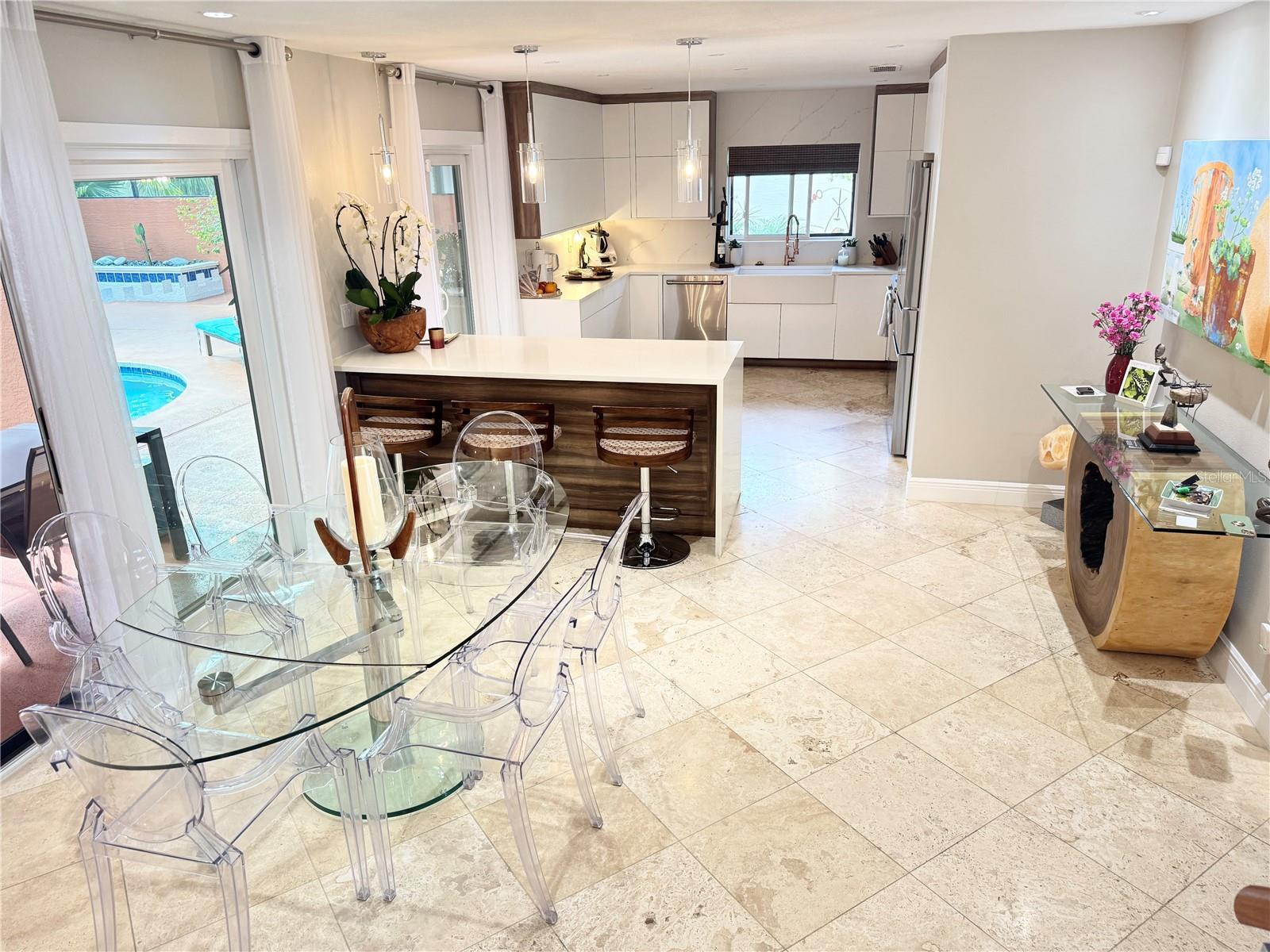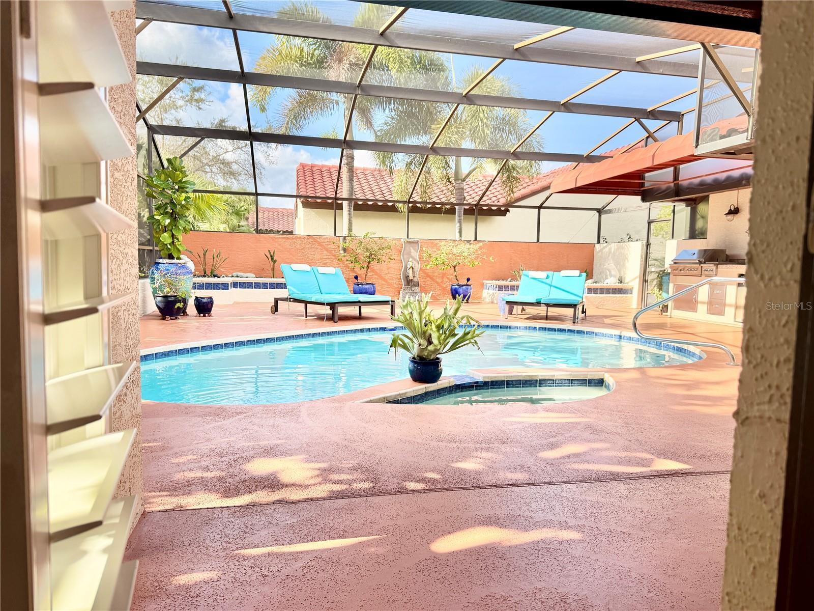 This is it — one of the most meticulously cared-for and thoughtfully upgraded homes in Granada Villas, Dr. Phillips, consistently ranked among the best neighborhoods to live in Orlando, Florida. Tucked beside the renowned Vizcaya community, Granada Villas remains a true best-kept secret: an exceptional location within a highly sought-after area, without the hefty HOA fees. This residence has been entirely reimagined to meet today’s most demanding lifestyles—simply step inside and feel immediately at ease. From the moment you arrive, the attention to detail is unmistakable. A beautifully paved driveway offers ample guest parking, complemented by a texture-finished garage floor, a solid wood front door, and manicured succulent planters that set the tone for what lies beyond. Inside, travertine floors welcome you into a bright, high-ceiling interior designed to host life’s most precious moments—whether gathered by the wood-burning fireplace under a delicate chandelier, entertaining in the newly redesigned kitchen with solid wood cabinetry and a quartz waterfall peninsula, or enjoying the flexibility of the upstairs double loft ideal for an office, library, guest retreat, or spa-inspired space. Notice the gorgeous detail railing banister adding elegance and contemporary feel to the interior. Regarding the outdoors, the backyard is truly ready to enjoy, offering distinct dining, lounging, sun-bathing, and pool areas, all surrounded by lush, privacy-focused tropical landscaping. Carefully curated plants and art pieces are highlighted by a refined lighting plan throughout the home, including adjustable gimbal recessed lighting specifically designed to showcase artwork without glare. Guest bedrooms share a convenient Jack-and-Jill full bath featuring a rain shower, generous closets, and large windows that allow soft natural light to filter in. A centrally located laundry station provides space for large-capacity washer and dryer units, with an adjacent linen closet for added convenience. The foyer is enhanced by a deep coat closet and an additional guest powder room, making daily comings and goings effortless. All closets throughout the home have been elevated with custom ELFA systems from The Container Store, reinforcing the home’s ergonomic, efficient, and elegant ease of living. The spacious primary suite easily accommodates a relaxing seating or reading area and opens directly onto the patio through sliding doors, seamlessly blending indoor and outdoor living. Beyond aesthetics, this home reflects thoughtful and responsible ownership: whole-house generator capability, Miami-Dade–rated hurricane doors and windows, a brand-new tile roof and kitchen (2024), updated HVAC, water heater, plumbing, and electrical systems, plus an active, transferable home warranty already in place. All that remains is to schedule your private tour, experience the quality firsthand, fall in love with your future lifestyle—and secure this rare gem before someone else does.