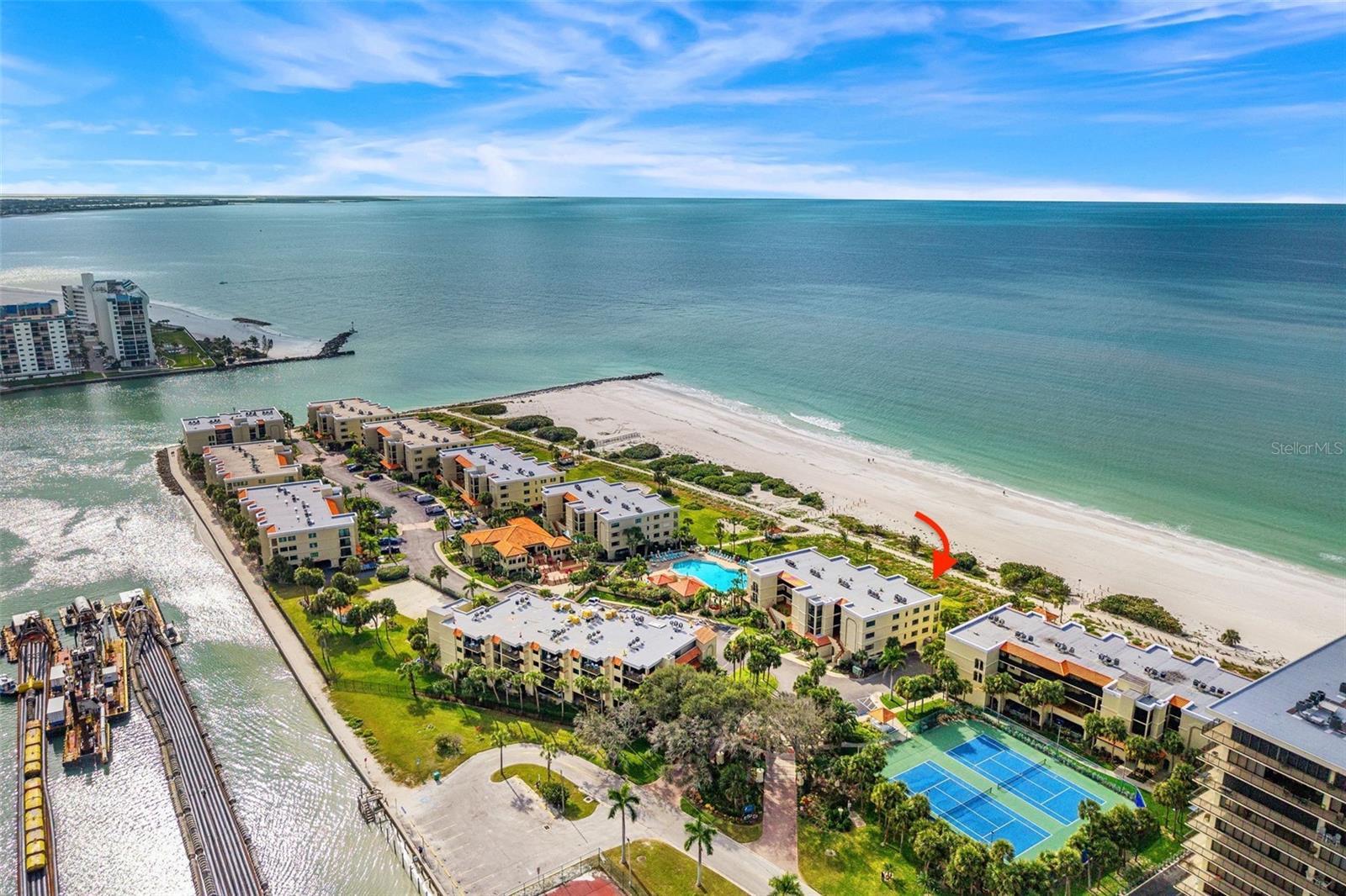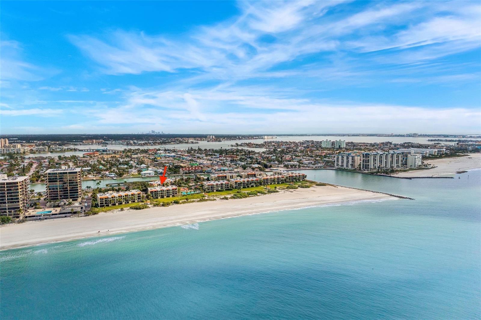 Under contract-accepting backup offers. This is Treasure Island’s most coveted gated waterfront community. Perfectly positioned at the tip of the beach, this beautifully remodeled 2-bedroom, 2-bath Gulf-front residence delivers sweeping, unobstructed water views catered to those who are truly seeking the Florida resort luxury-lifestyle. This residence has been thoughtfully redesigned to elevate everyday living and for maximizing rental appeal. You can choose to reside here year-round or leverage its potential as a lucrative short-term rental, which is currently averaging ~$70k in annual income, with easy growth potential. Every detail has been curated to blend coastal elegance with long-term durability. Inside, the open-concept layout is flooded with natural light and uninterrupted Gulf views from the main living, dining, and kitchen areas—ideal for entertaining or unwinding to the rhythm of the waves. Each finish and feature contributes to a lifestyle defined by ease, refinement, and quiet sophistication. Part of that ease and comfort, you will find an in-unit washer & dryer, direct access to the beachfront balcony through the living room and primary suite and offered fully furnished, with a thoughtfully selected style to match the resort's ambiance, all you have to do is walk into paradise. Enjoy panoramic Gulf views and nightly sunsets from the balcony, with dolphins often seen just offshore. Community amenities include a large heated beachfront pool, spa, clubhouse, illuminated tennis and pickleball courts, sand volleyball, shuffleboard, a scenic beachfront boardwalk, and 24/7 guarded gate security. Located within the gated Land’s End community on Sunset Beach, this Gulf-front residence offers true resort-style living on 14 waterfront acres surrounded by water on three sides. Land’s End is a low-density community with only 10 buildings and a total of 177 coastal waterfront residences, providing privacy, tranquility, and a premier exclusive beachfront setting. The community is pet friendly and designed for both full-time residents and short-term rental use. Ideally located minutes from Johns Pass, downtown Treasure Island, and downtown St. Petersburg, offering easy access to boating, fishing, dining, arts, museums, live entertainment, and professional sports. A rare opportunity to own in one of Treasure Island’s most sought-after gated beachfront communities where you live in peace and luxury.